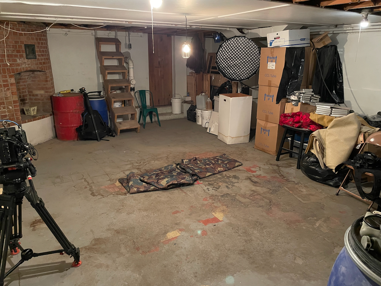 Large 2 floor building that includes multiple residential location, private courtyard, basement with faux morgue. Basecamp space near by.