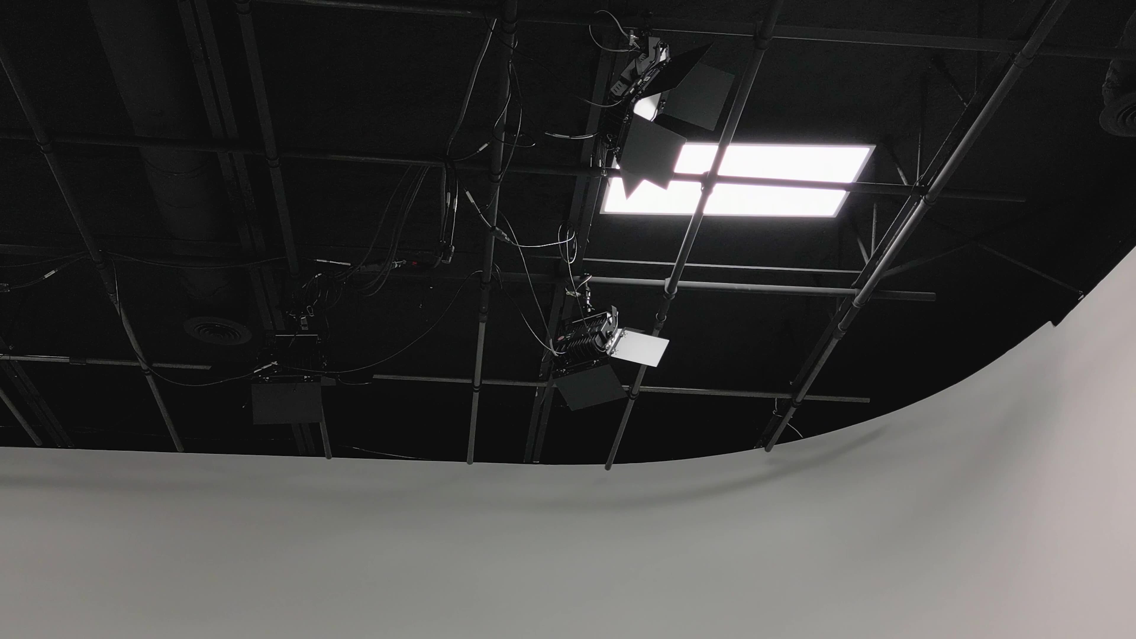 Lucie Studios has an L-shaped 20 x 30 cyclorama wall for photography and video production with a lighting grid at 14 ft. We include 4 full RGB cyc lights and a Chamsys Q30 lighting console that can turn the wall any color including chroma green.