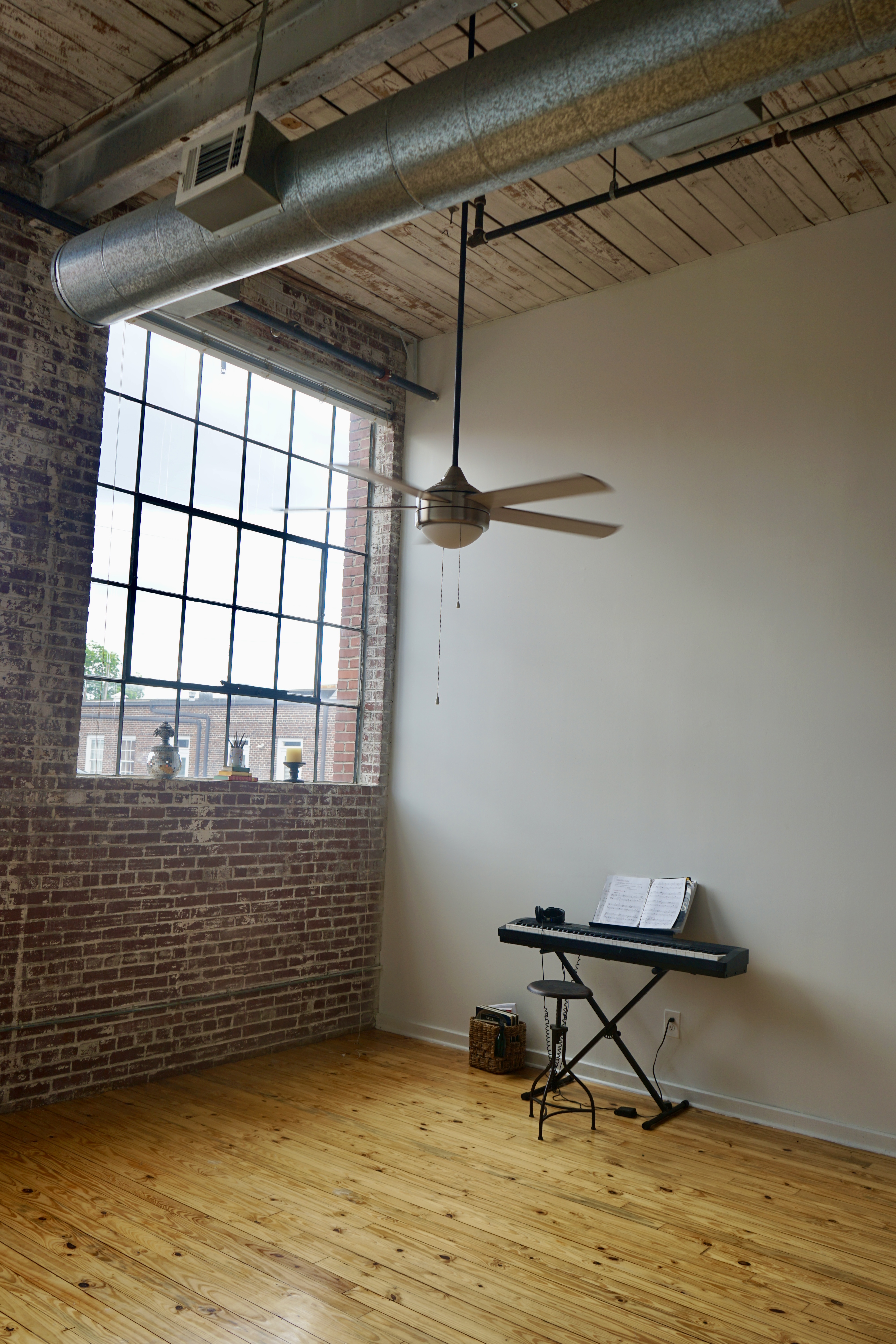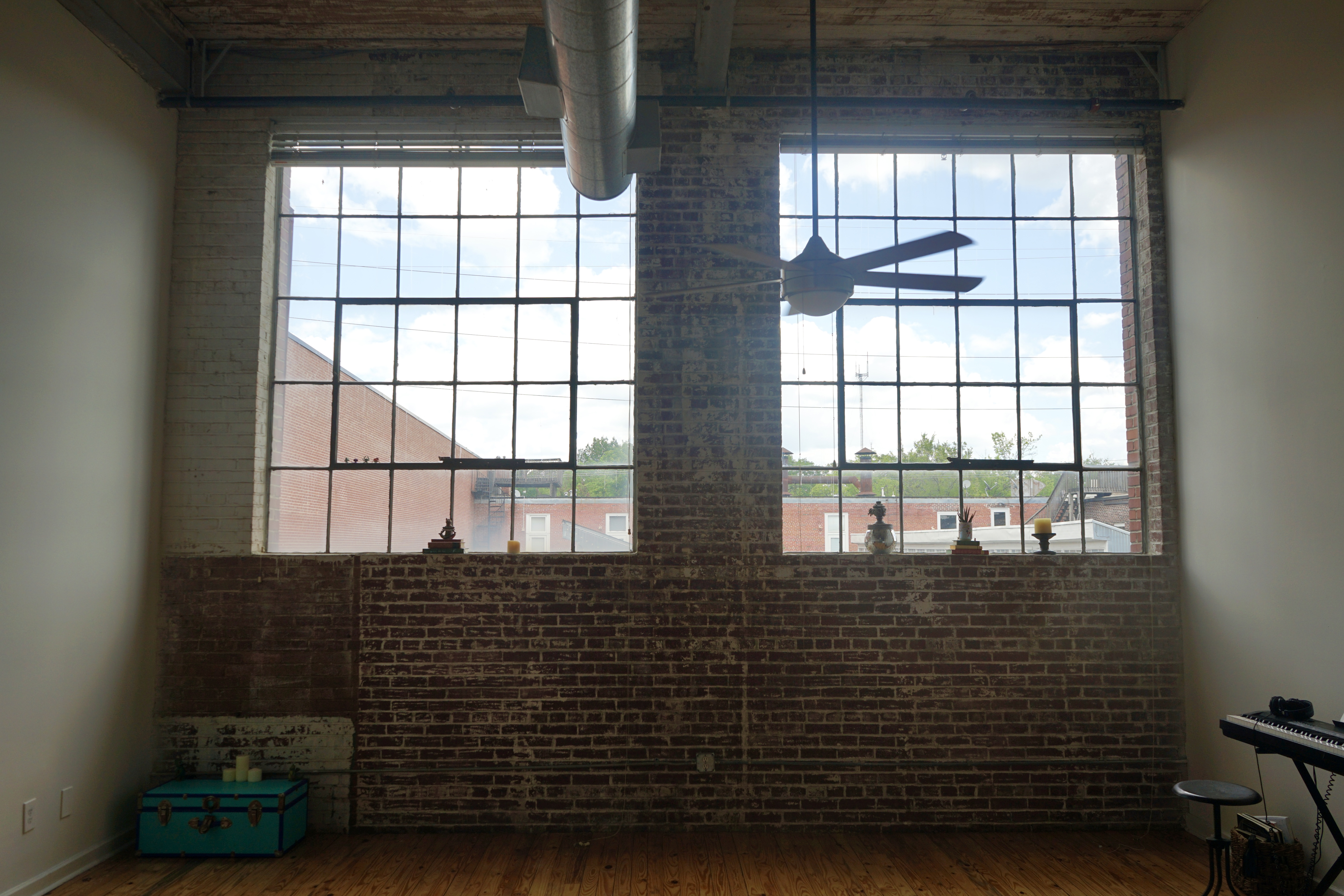 The space features two 10ft windows that add lots of natural light to the space depending on time of day