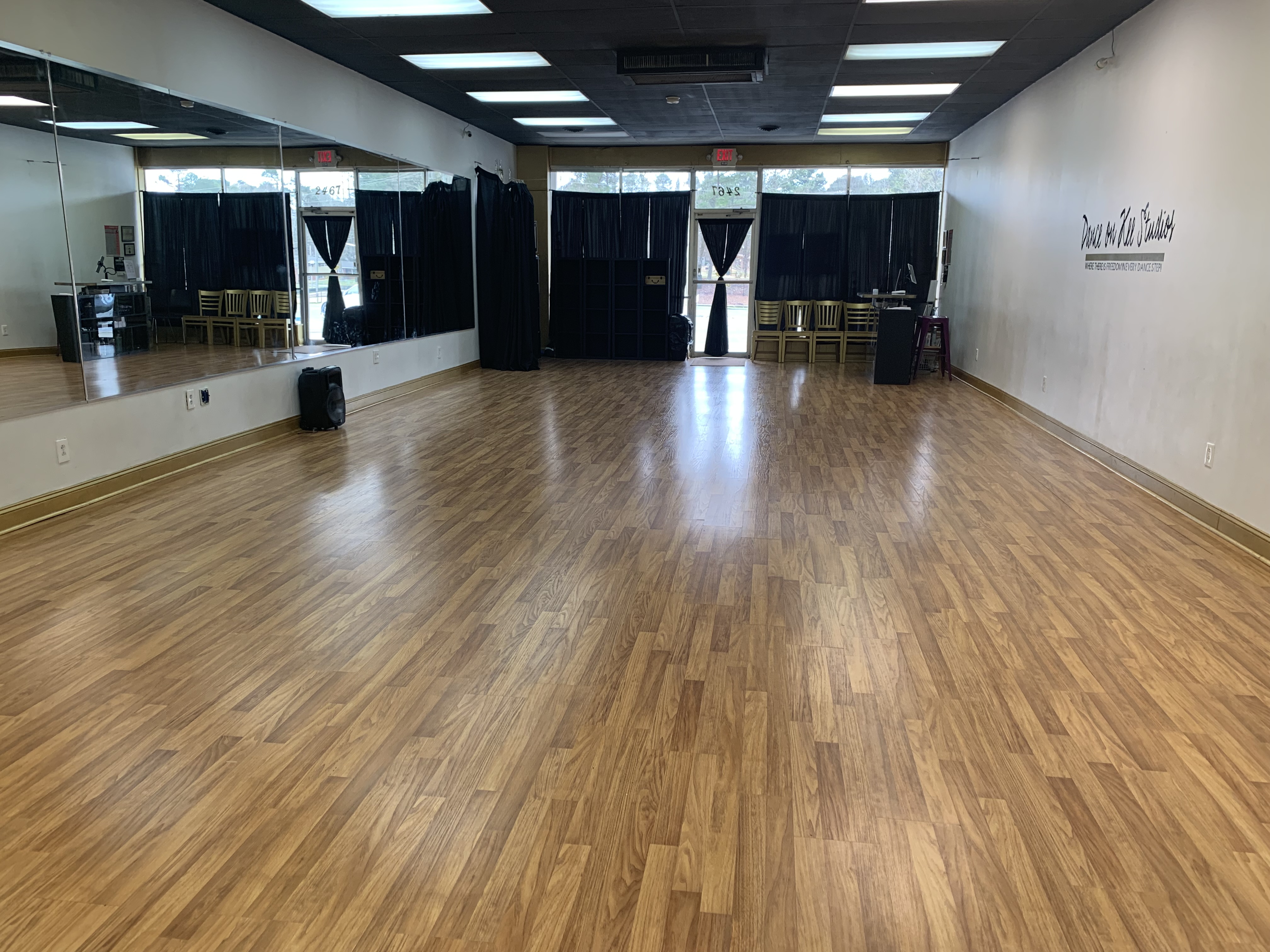 Welcome to our dance studio, featuring two spacious dance floors. Our main room fits up to 25 adults, while the smaller room accommodates 5. We maintain a clean environment with two bathrooms and offer tables and chairs upon request. Open daily by appointment (closed Saturdays), we require all guests to sign a liability waiver, stay off the mirrors, and leave areas as found. Outside food is not allowed. Our dedicated staff creates a positive atmosphere for all dancers.