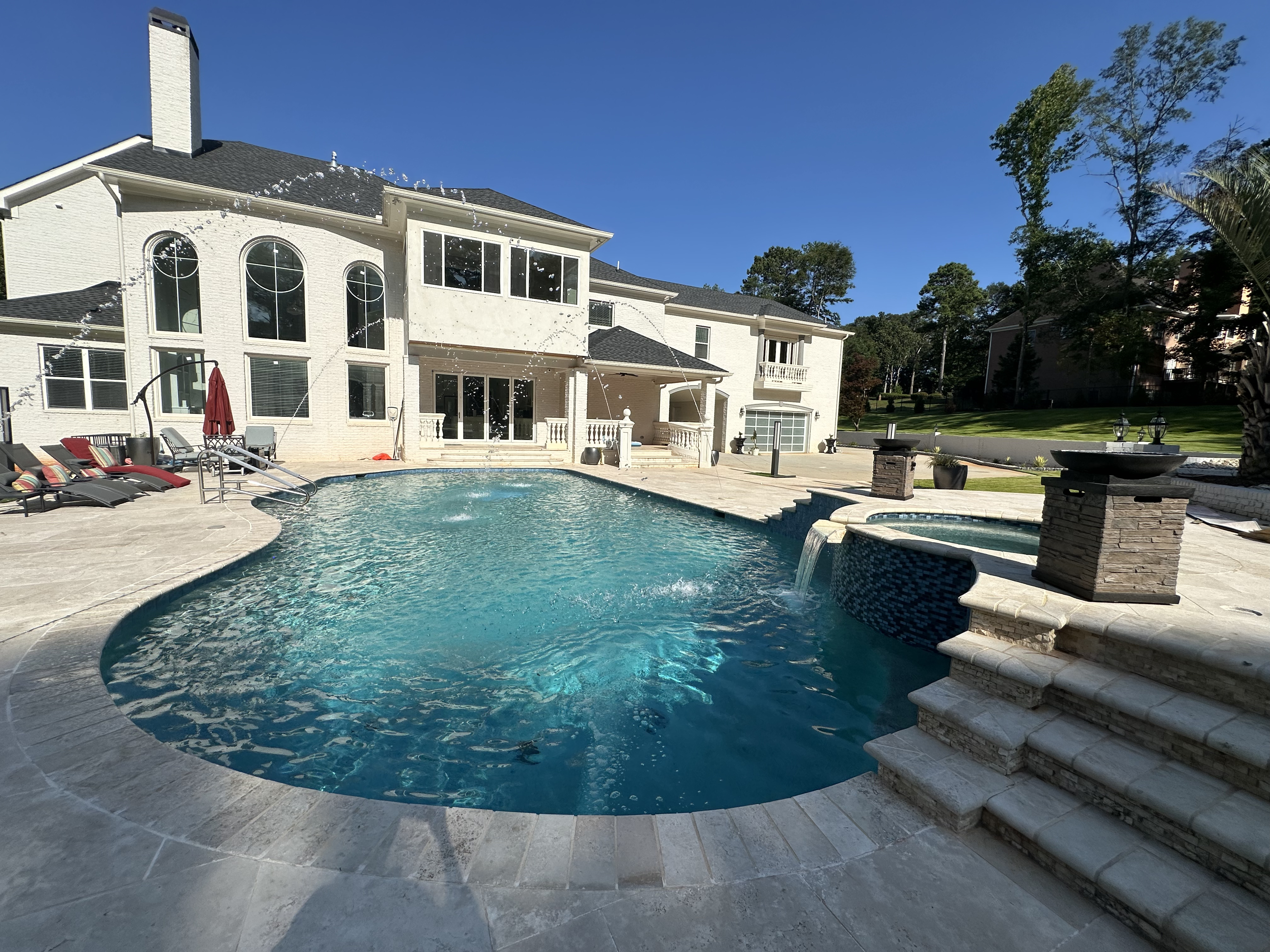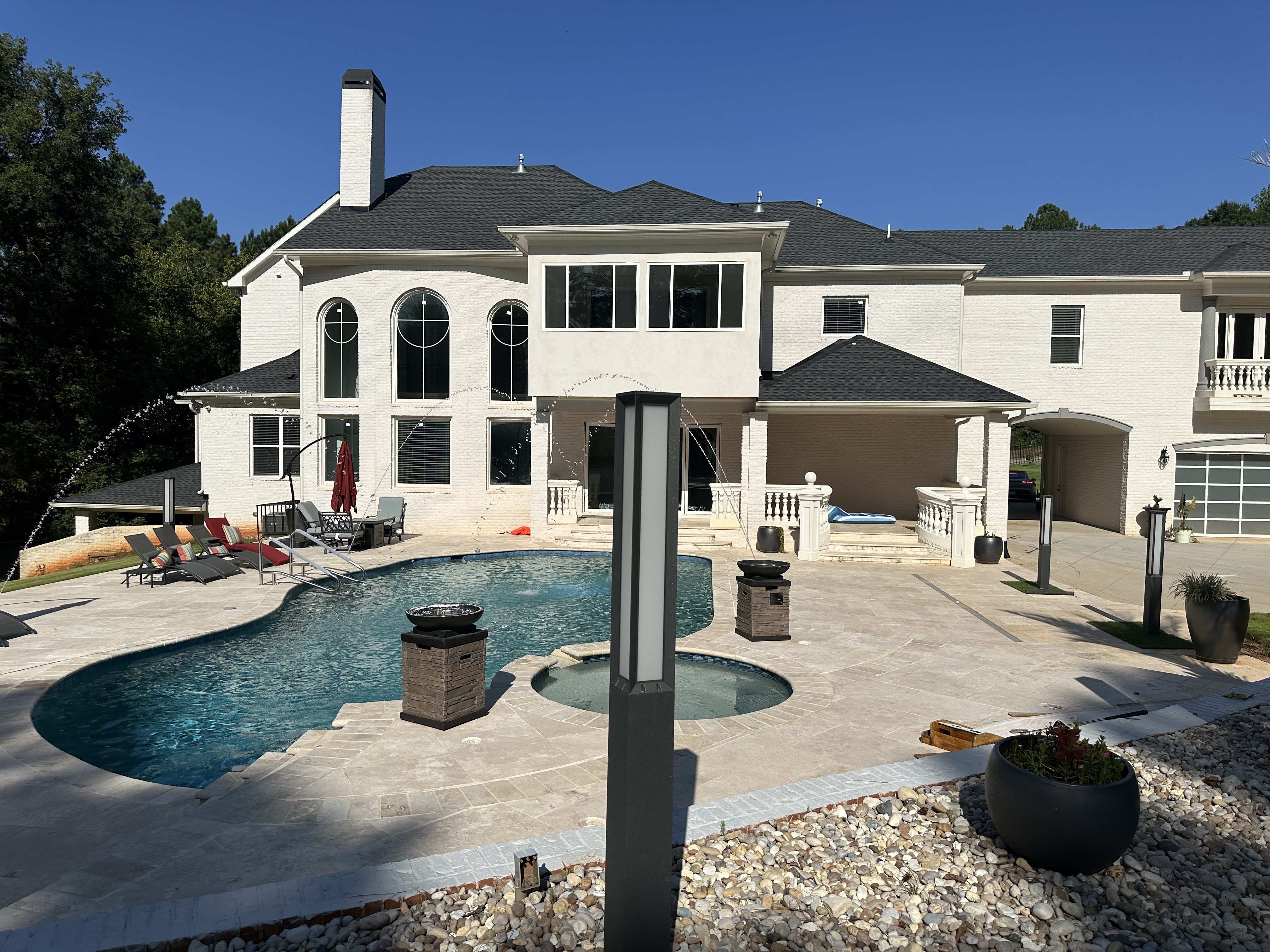This stunning 12,000 sqft mansion also has a sprawling backyard with a swimming pool and outdoor basketball court. It sits on a fully fenced 2.5 acres, making it a great location for larger productions!