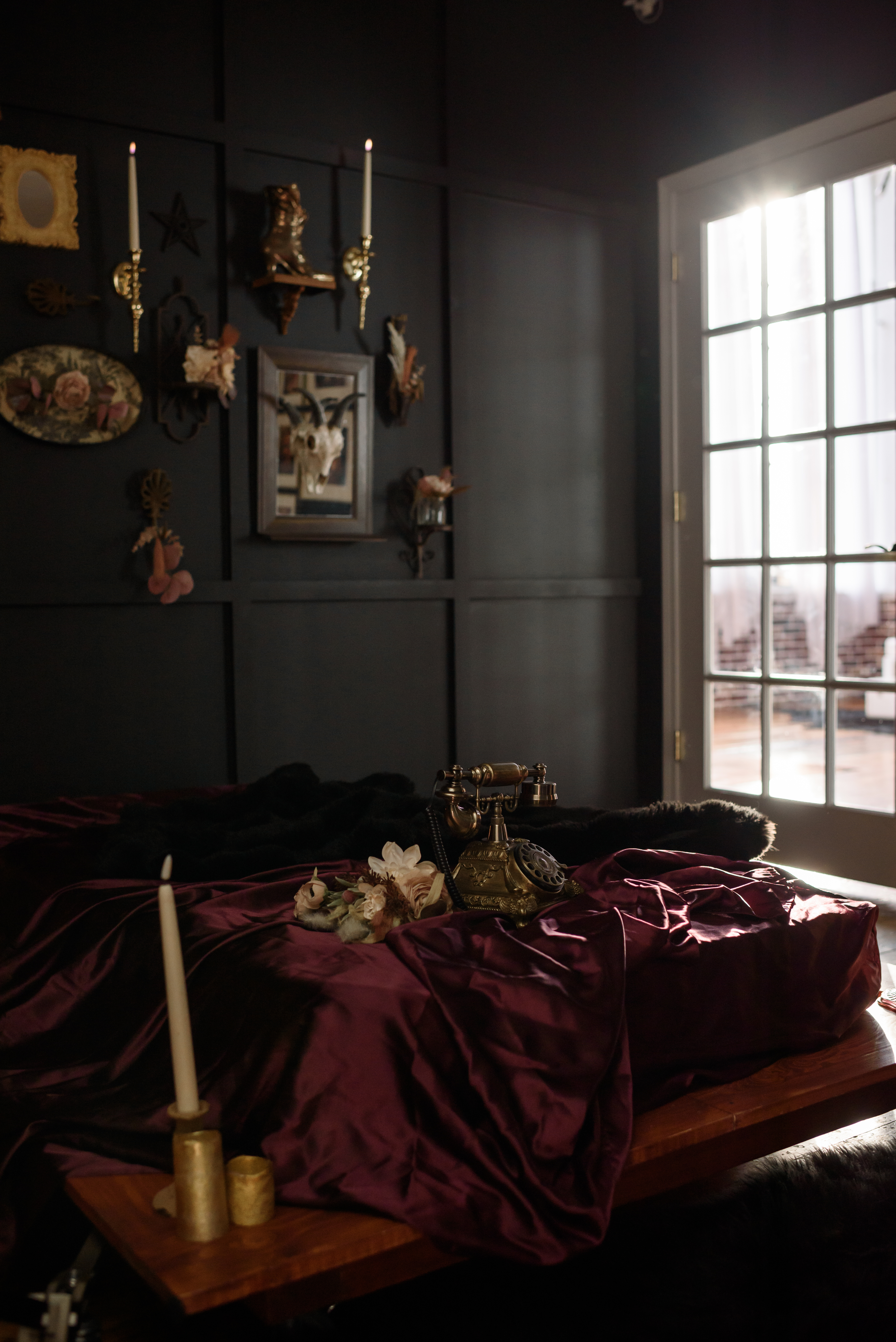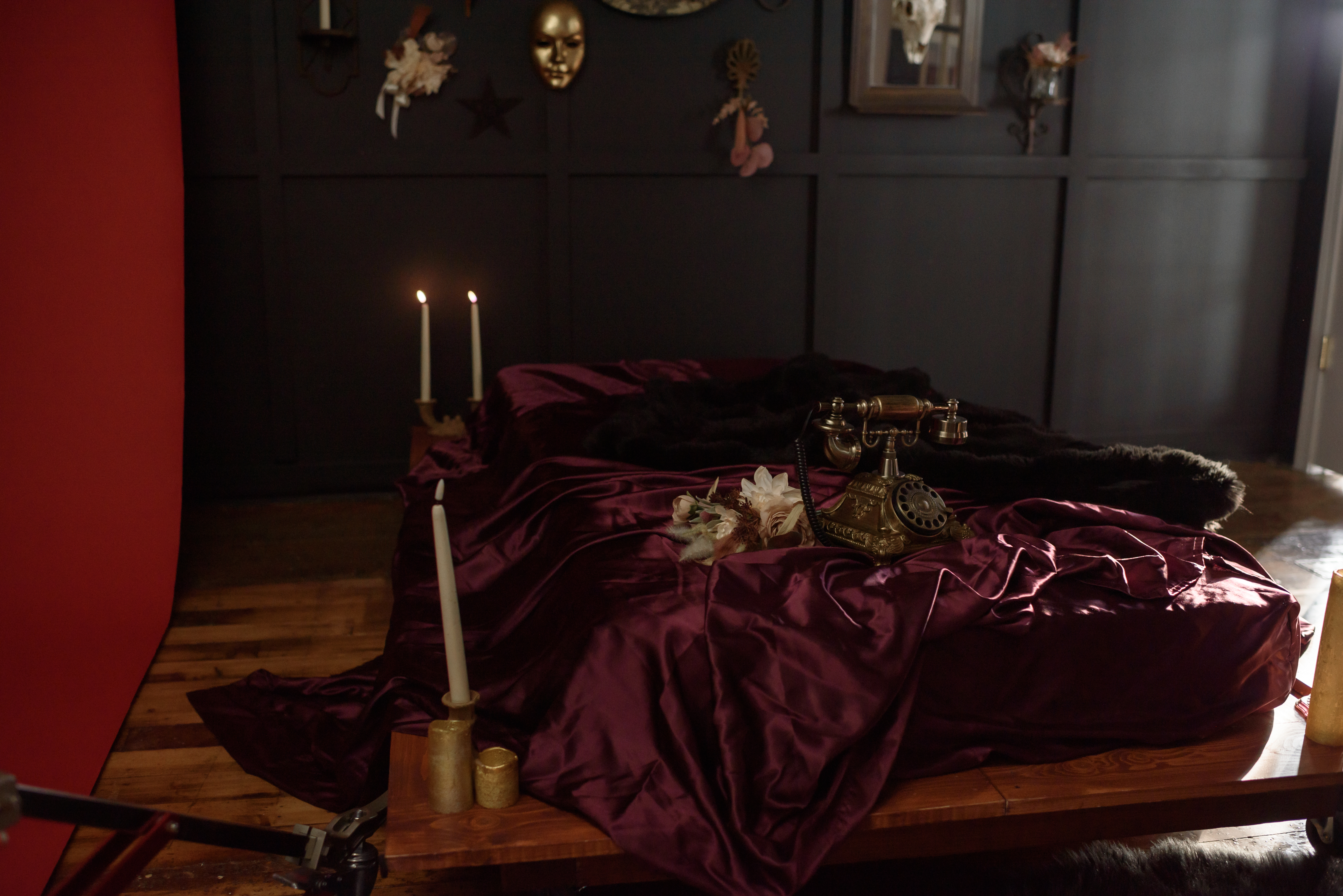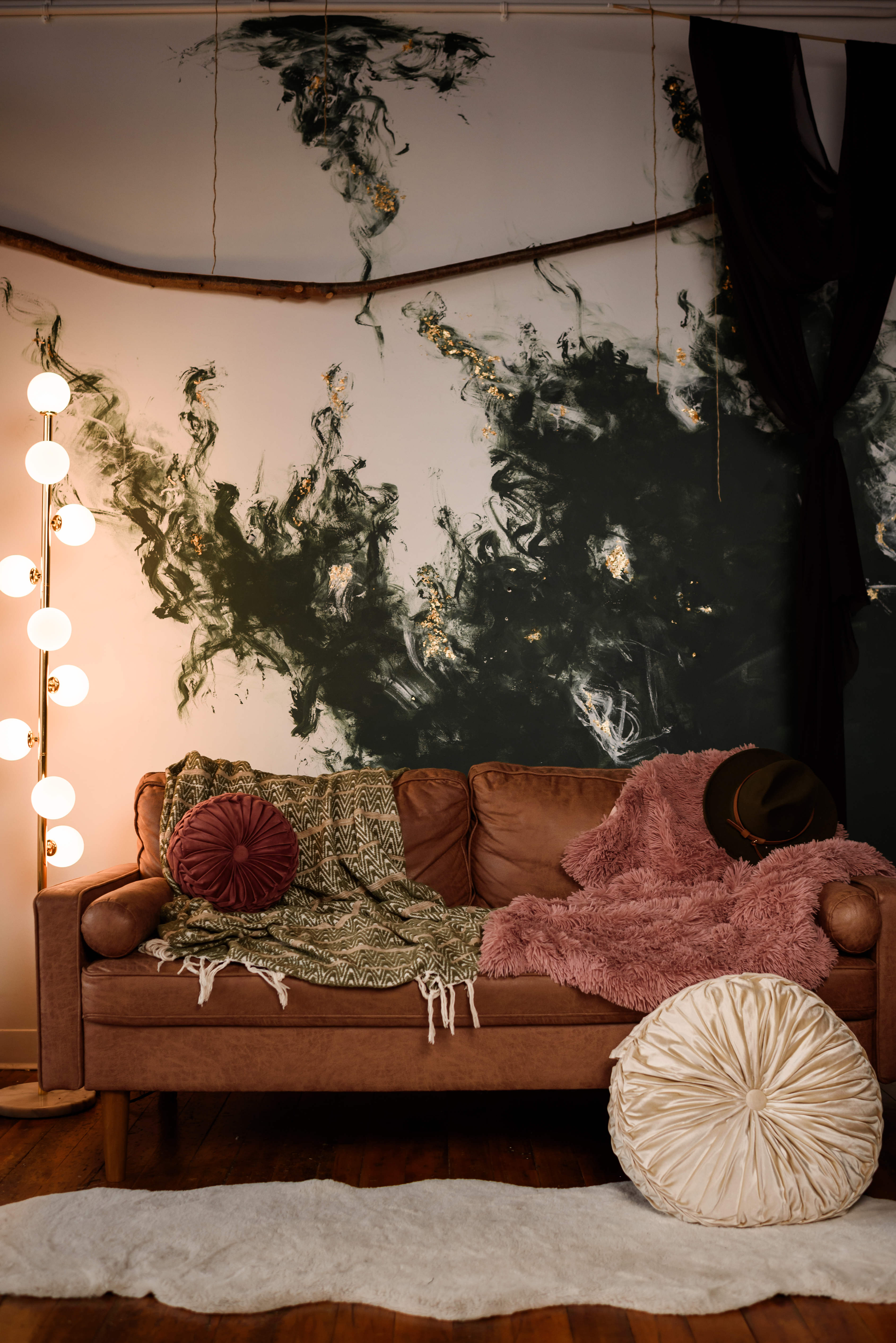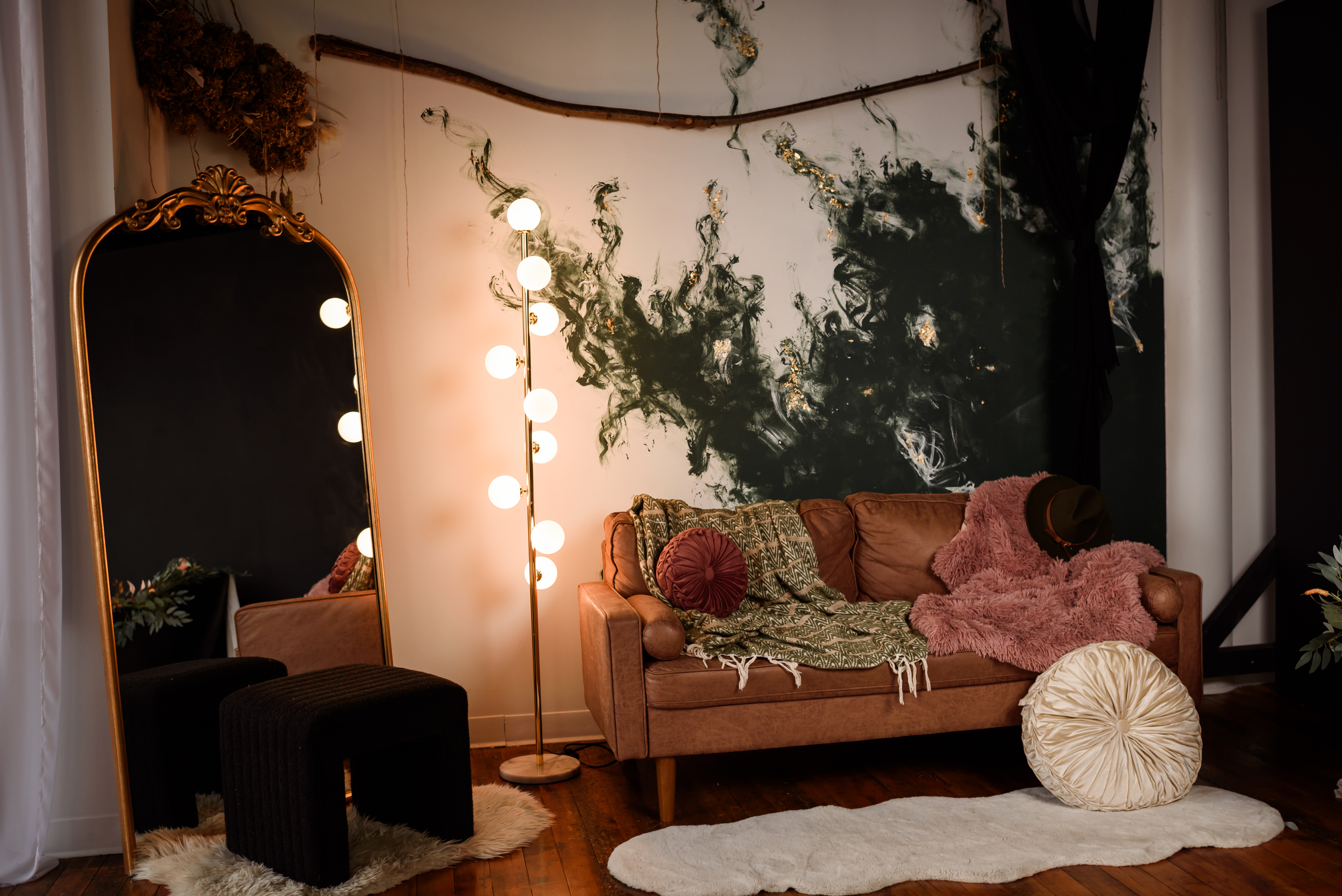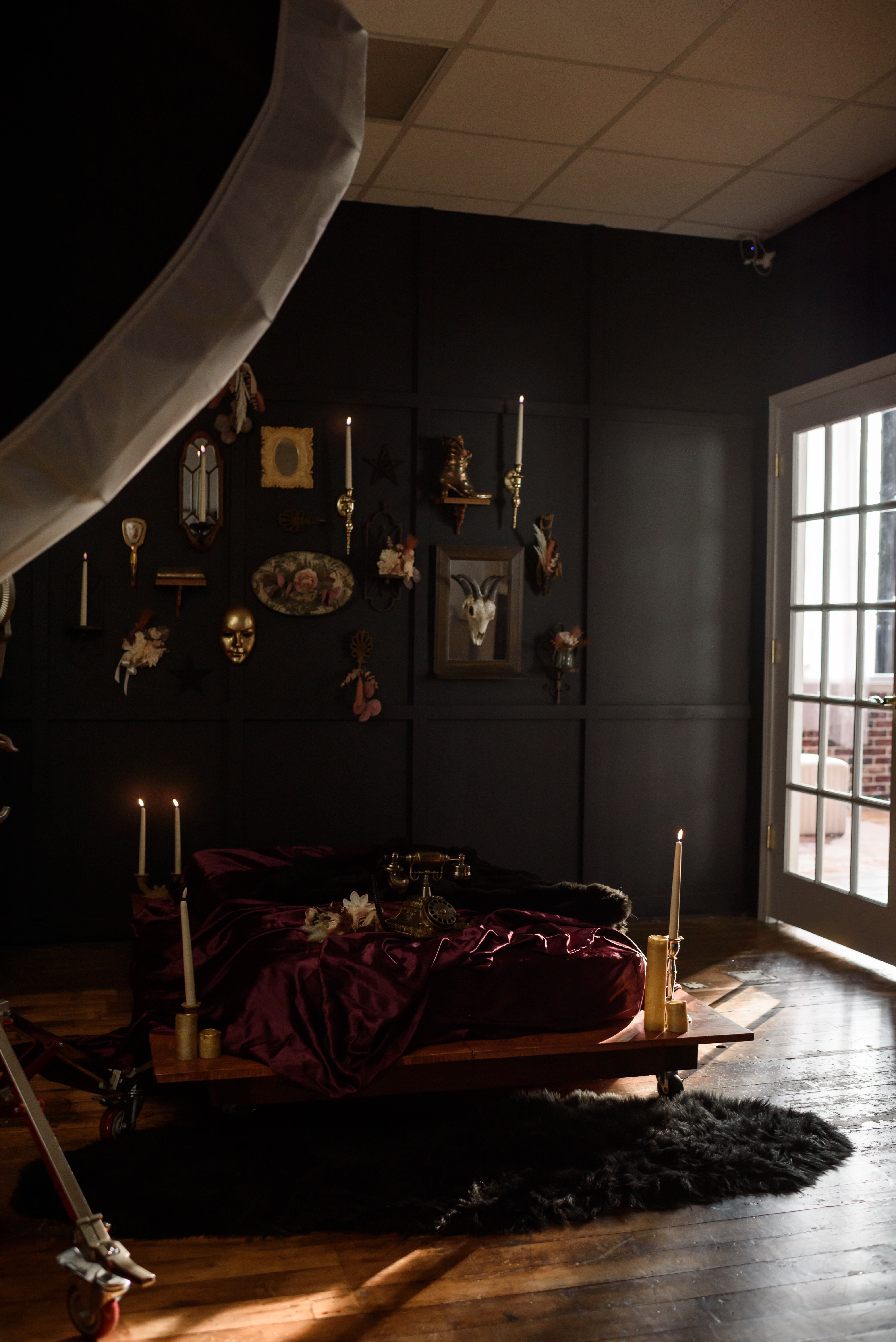 Amenities include: 20f high natural light industrial windows, custom art instillations and murals, vaulted ceilings, baby grand piano, custom low profile attic bed, black bathtub set, a real swing suspended from the ceiling, couch set, various seamless and sweeps, faux natural light wall, constant studio light, several light modifiers, wifi, prop room, kitchen with coffee + snacks, optional client wardrobe access (fee), two private office spaces available upon request.