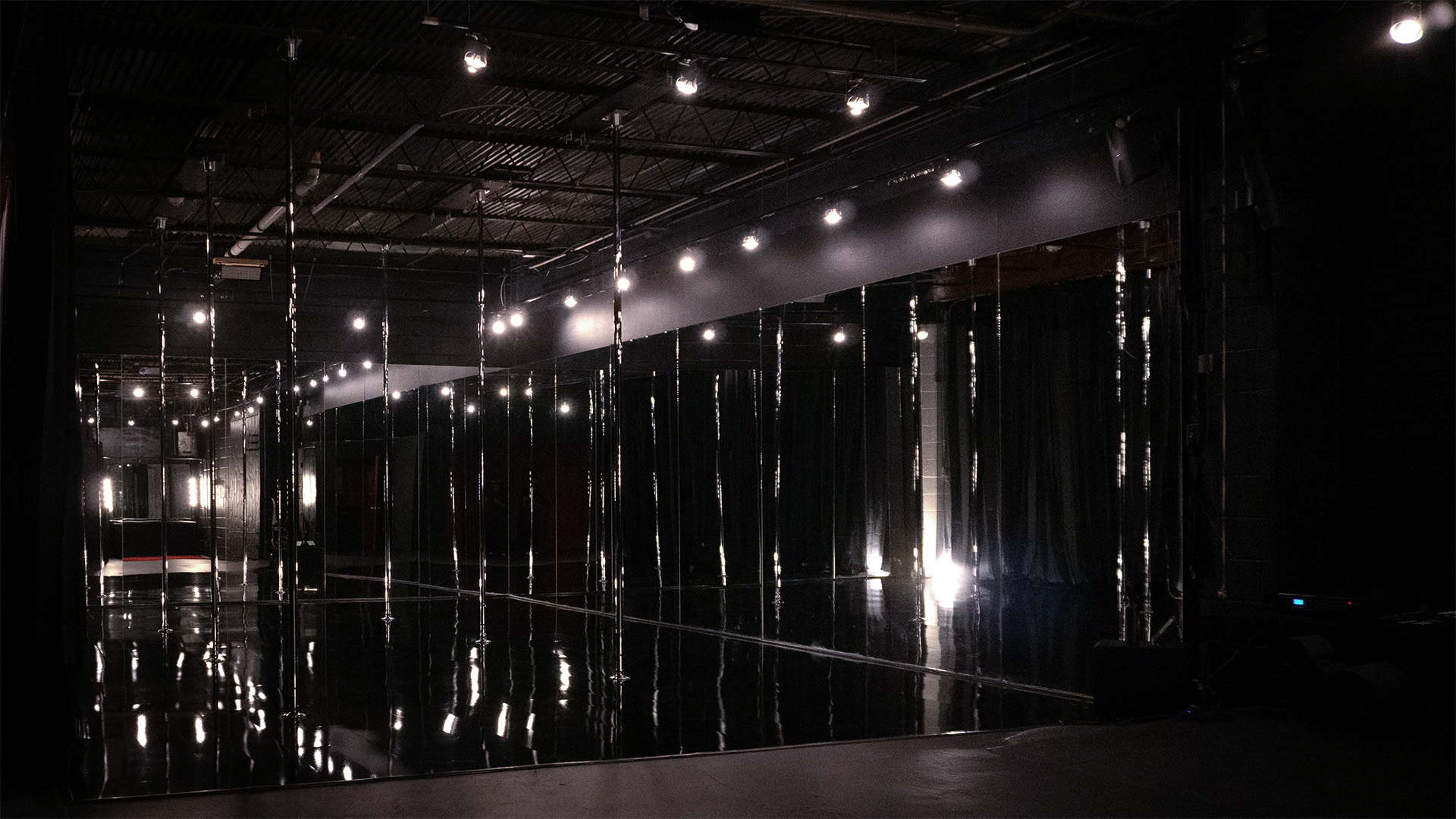 This immersive mirrored environment is built for high-impact visual storytelling, offering a controlled space where lighting and reflections can be fully manipulated for dramatic effect. The darkened interior allows productions to craft everything from abstract visuals to high-energy performance scenes with precision.
