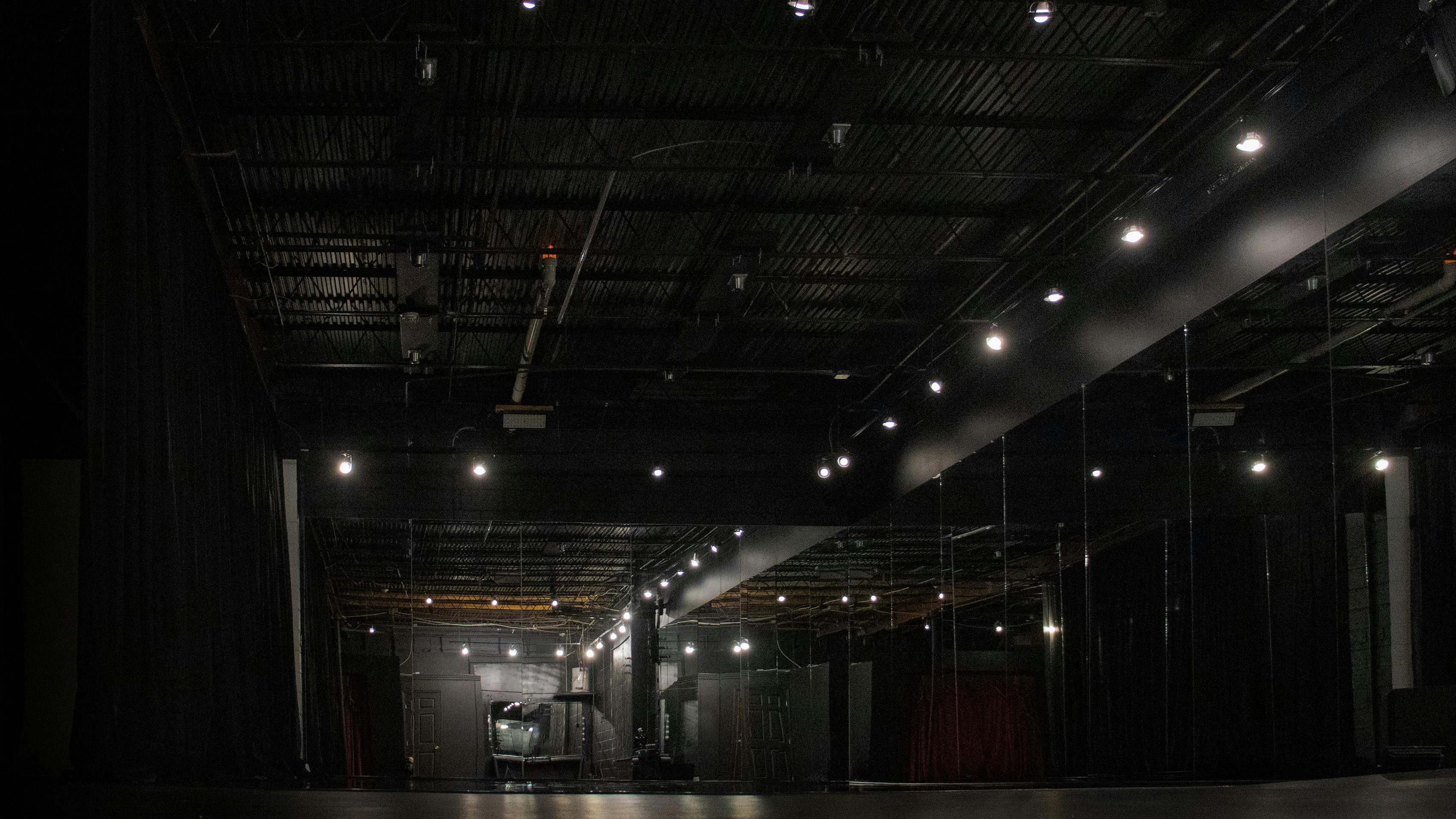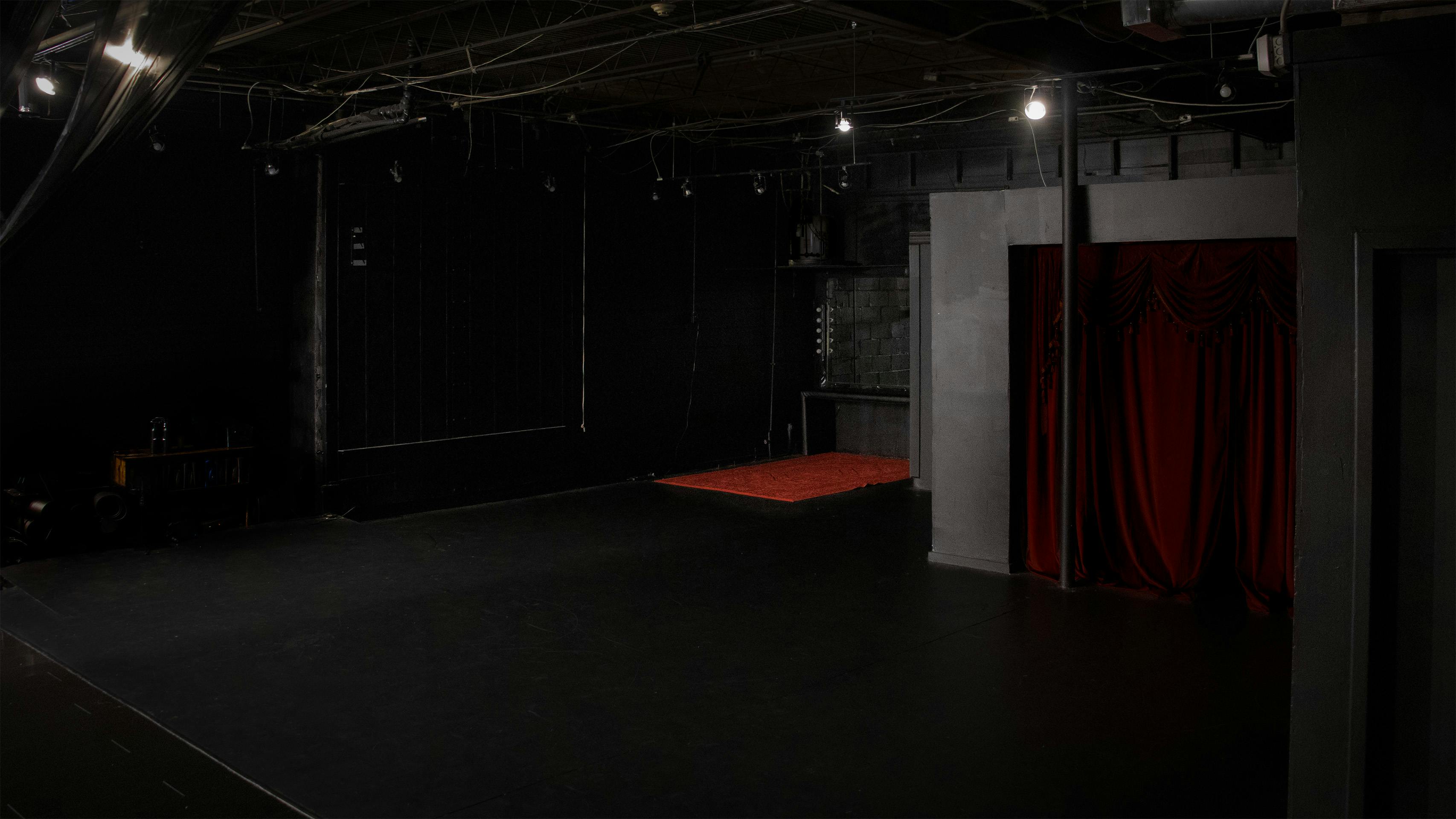 A modern industrial space and open black boxed set with the ability to mutate for the specific needs of world building at will. This area supports innovative electrical lighting set ups, prismatic angles and truss/apparatus rigs for aerial work (add on dance poles)