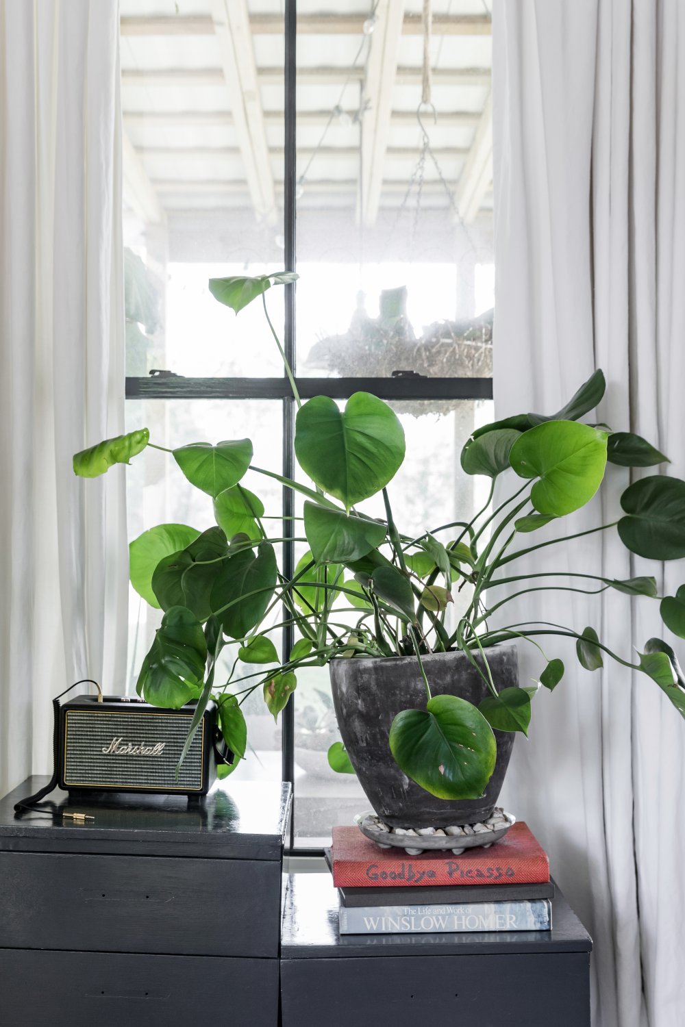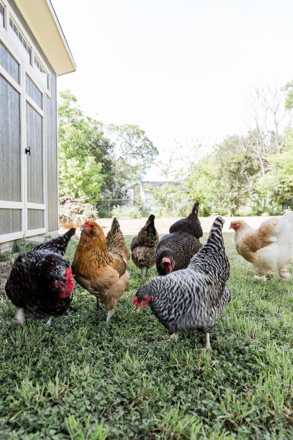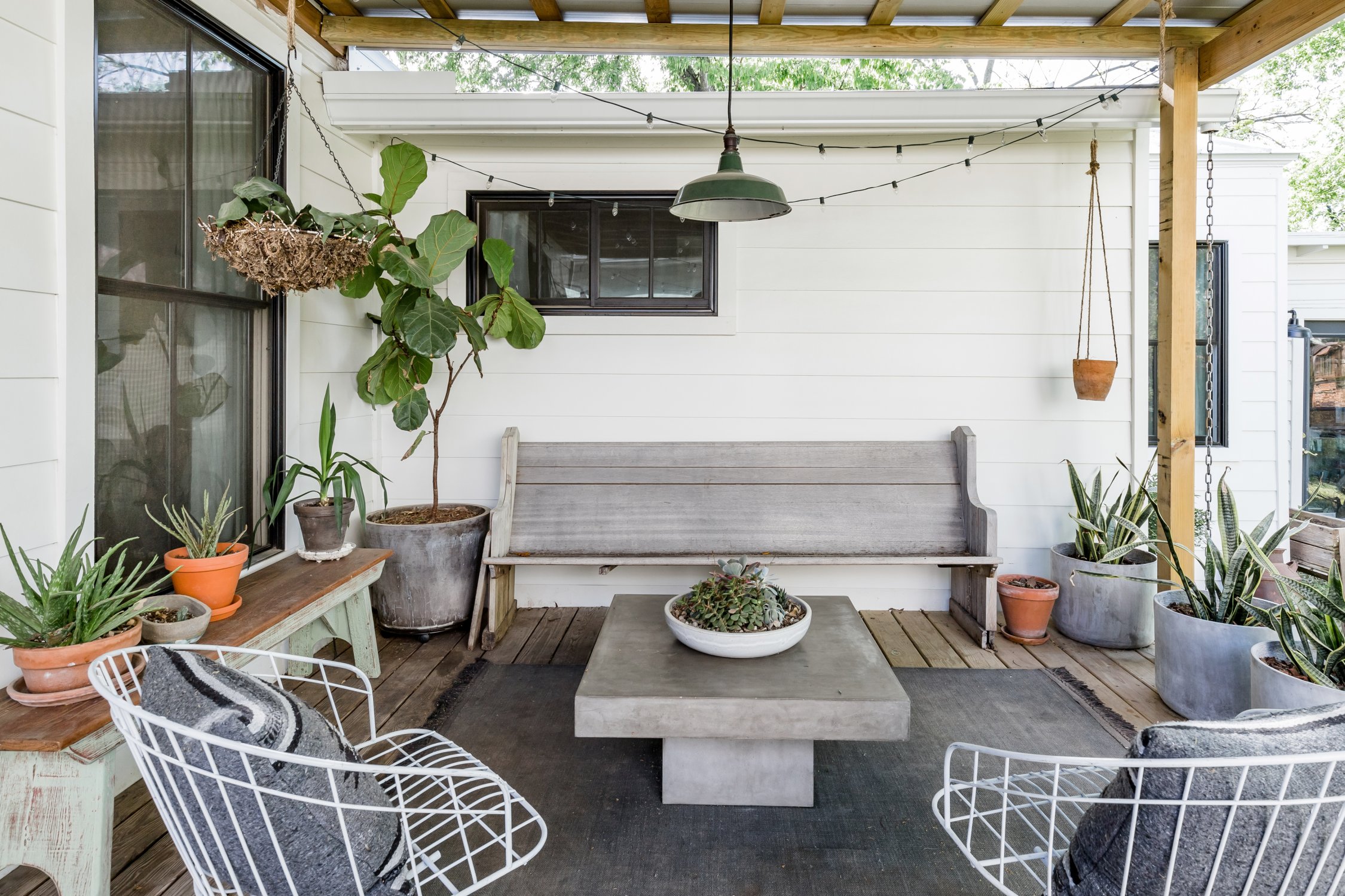 The Brentwood Farm is a small renovated 1946 home with an open floor plan and seasonal garden. Our chickens (no roosters) lay fresh eggs and the renovated patio provides shade and outdoor seating. The interior is a modern take on vintage styles with a hanging chair and wood fixtures accented by pops of color and stylish patterns.