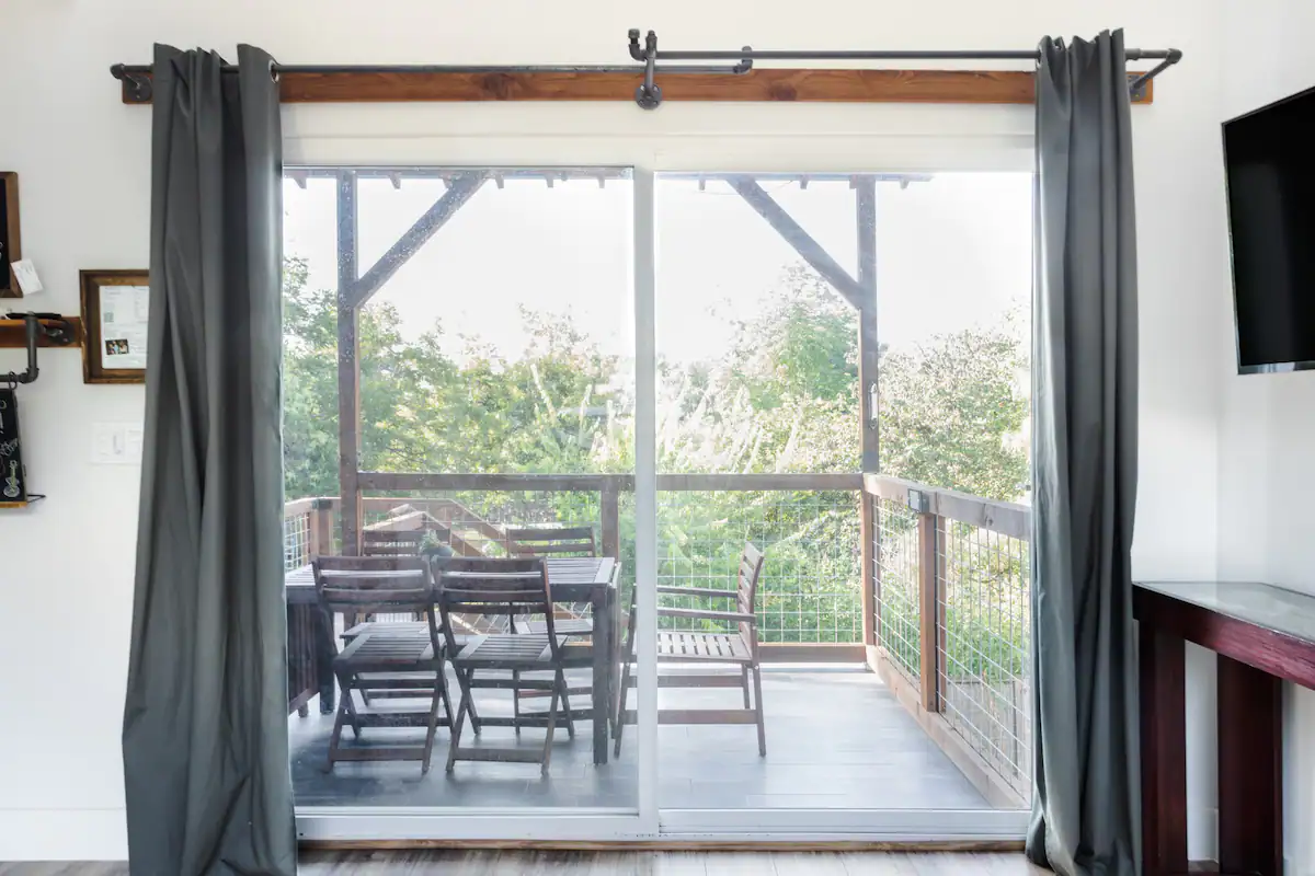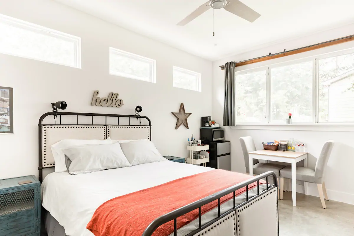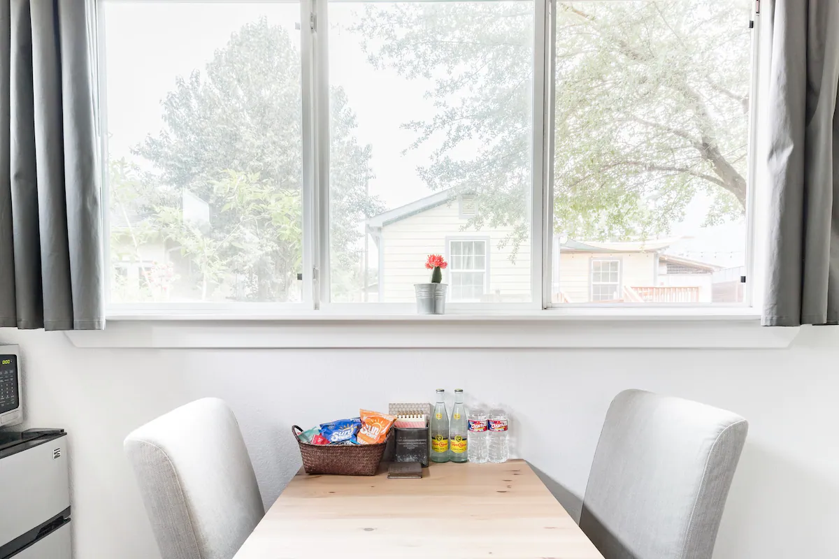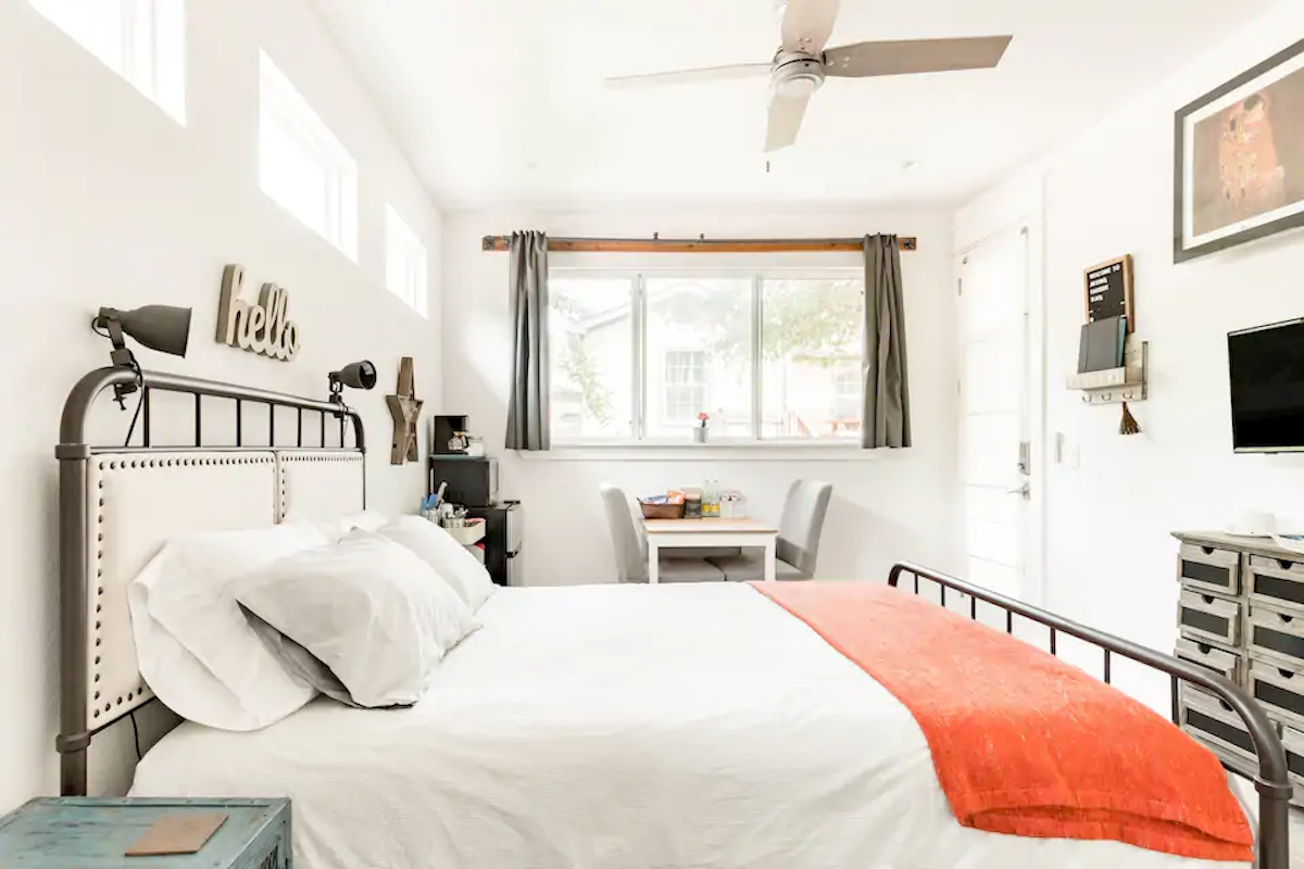 Located on the east side, this 2-story guesthouse is separated into 2 separate spaces, the Upper & Lower Flat, each with its own private entrance. Perfect for using one area as a green room, PO or staging. Rental includes Upper & Lower Flats as well as yard space