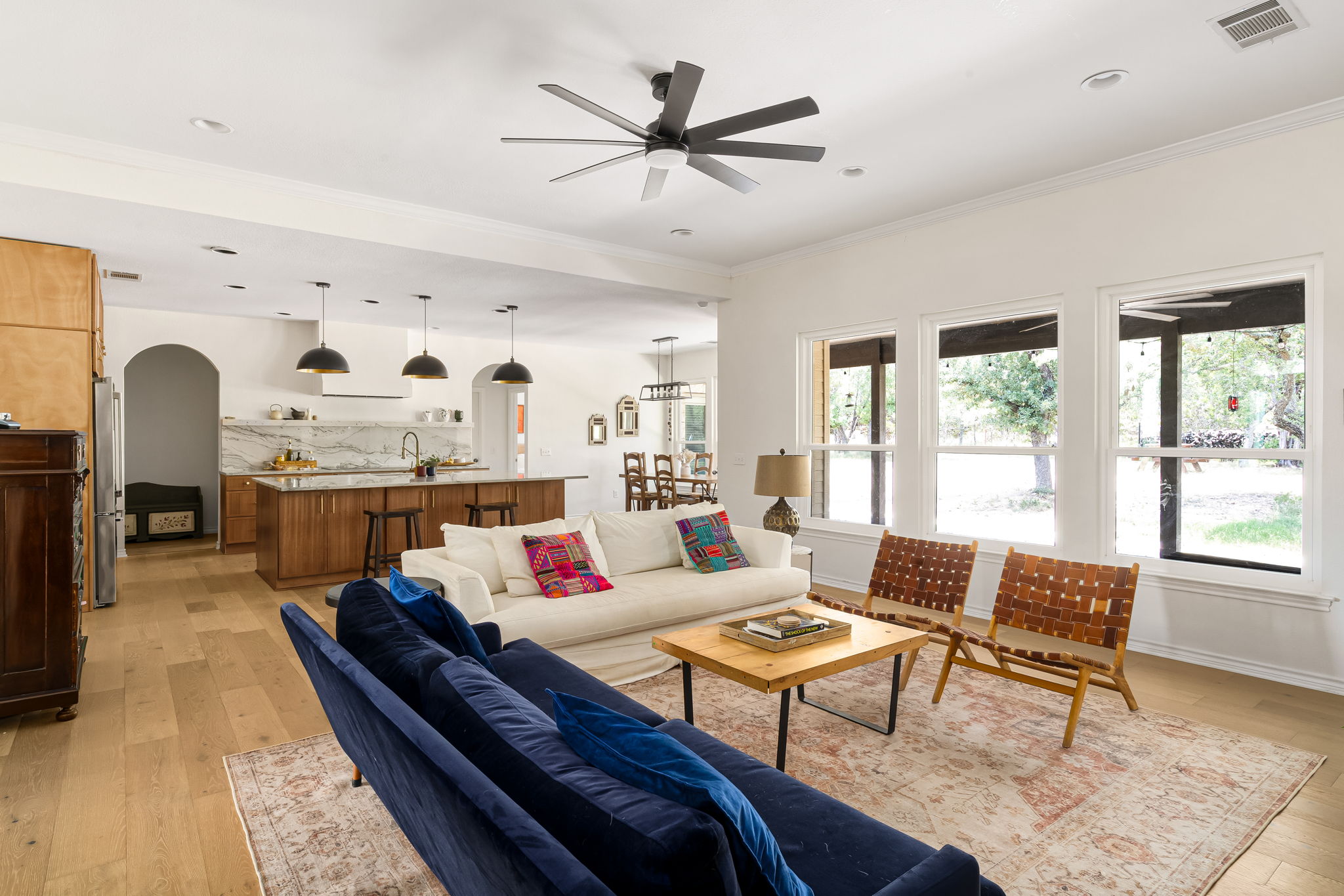 A perfect blend of hill country home on the outside and modern / classic ranch family home on the inside. With newly renovated kitchen, open plan with a sophisticated aesthetic and keeping of the older ranch home charm.