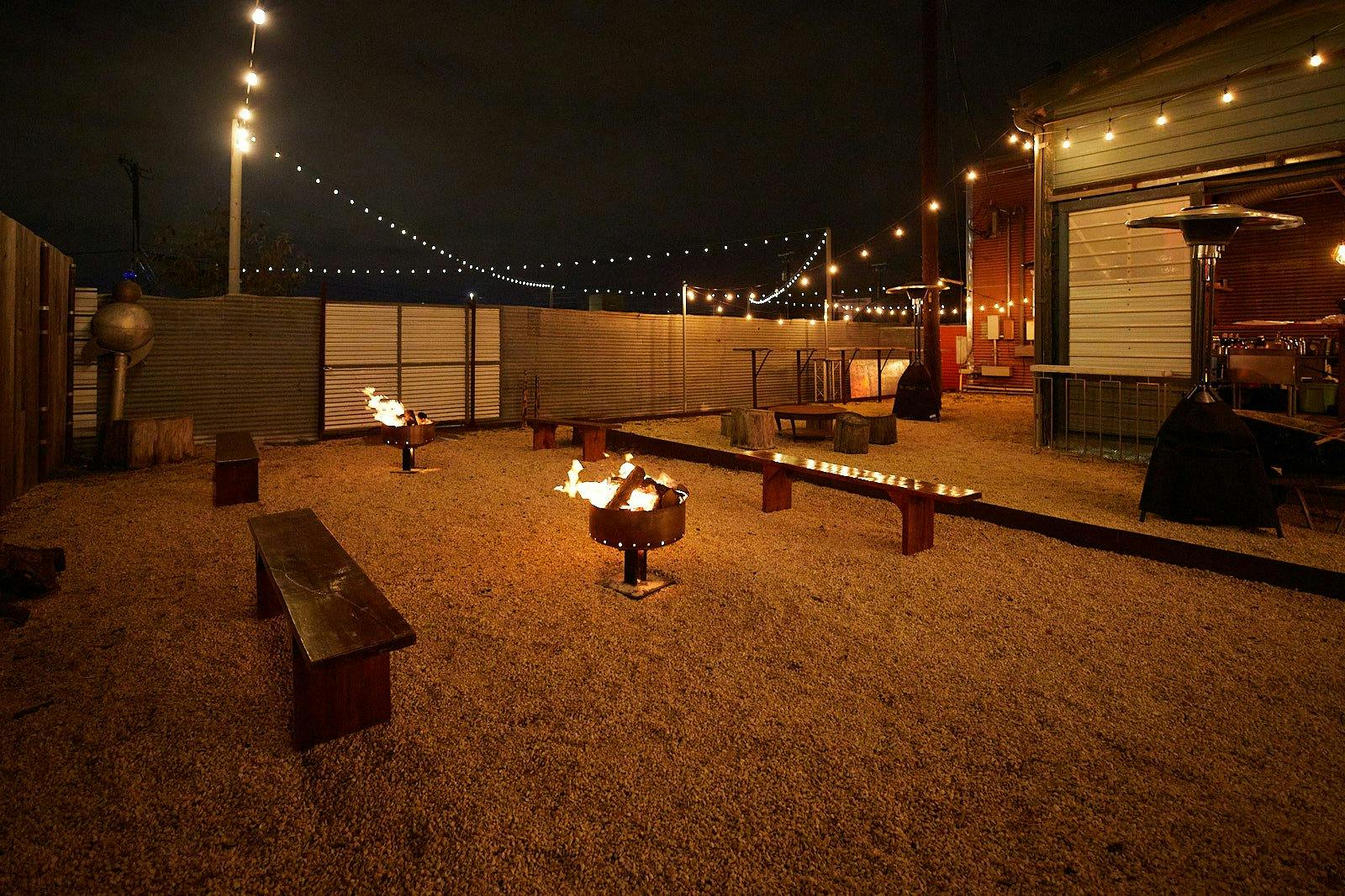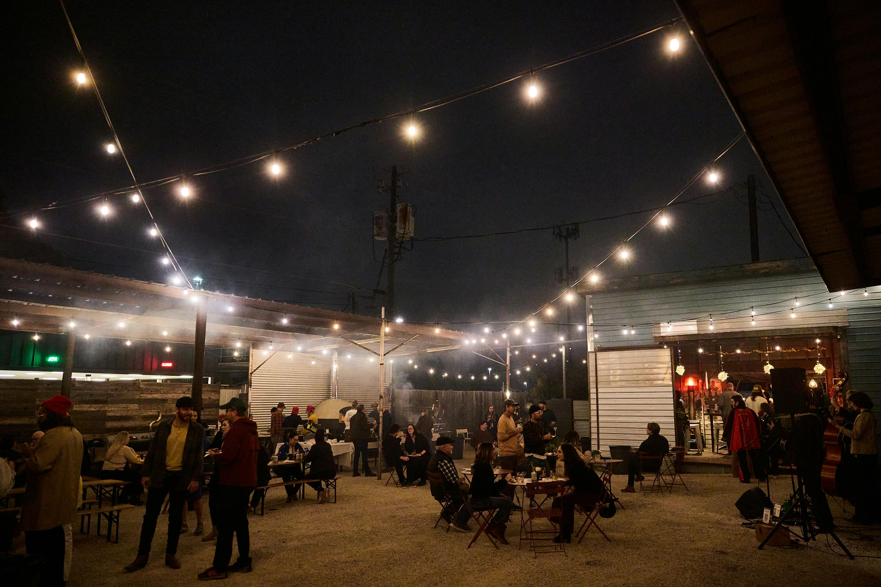 Featuring salvaged wood walls, exposed steel beams, concrete floors, and high ceilings, the Studios comprise a series of connected indoor and outdoor spaces. A main great hall connects two unique bar areas, a loft/stage, and two production studios. Large wooden sliding doors connect to a central courtyard, covered porches and patios — offering a variety of settings and configurations for your production or event.