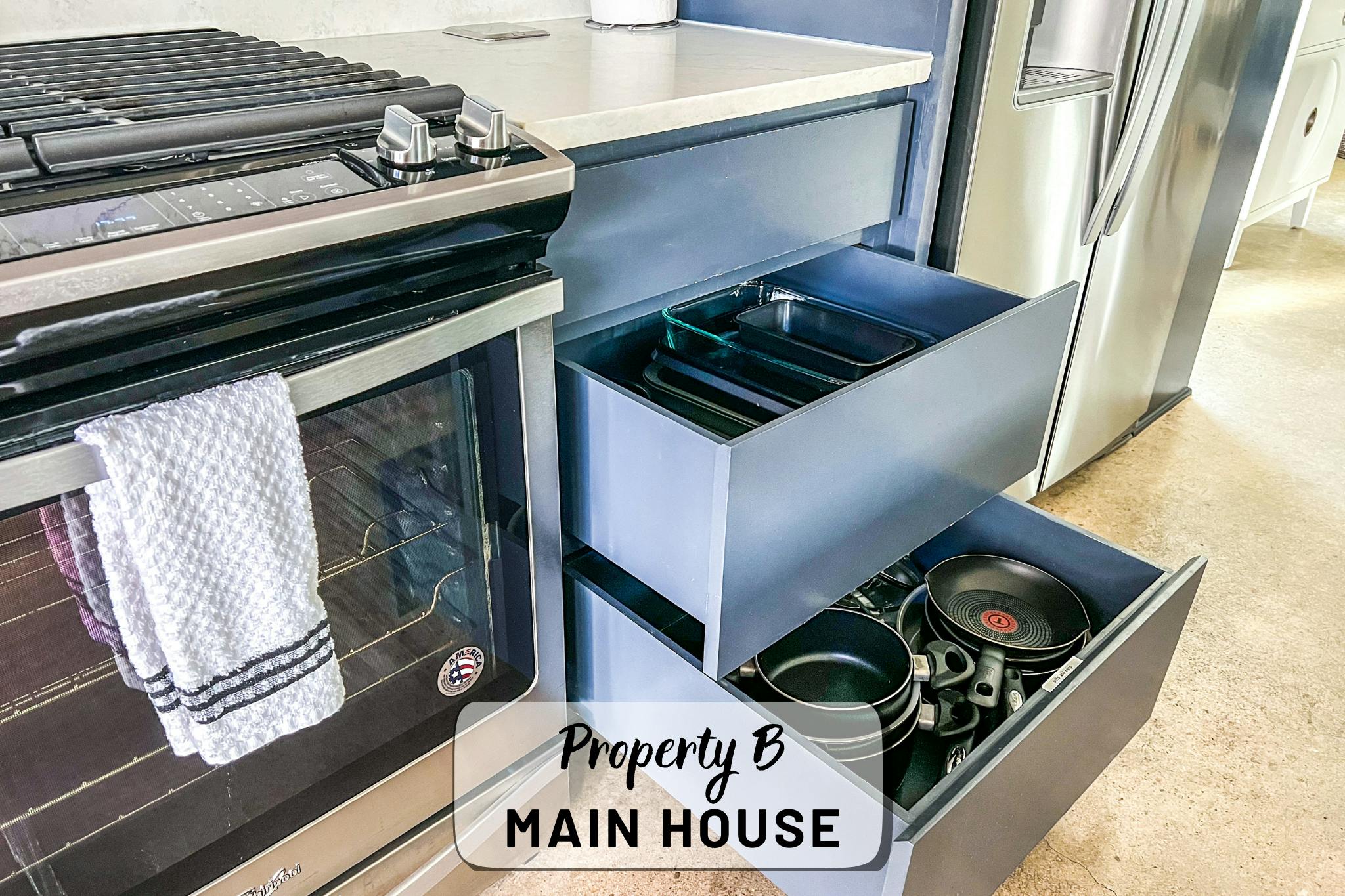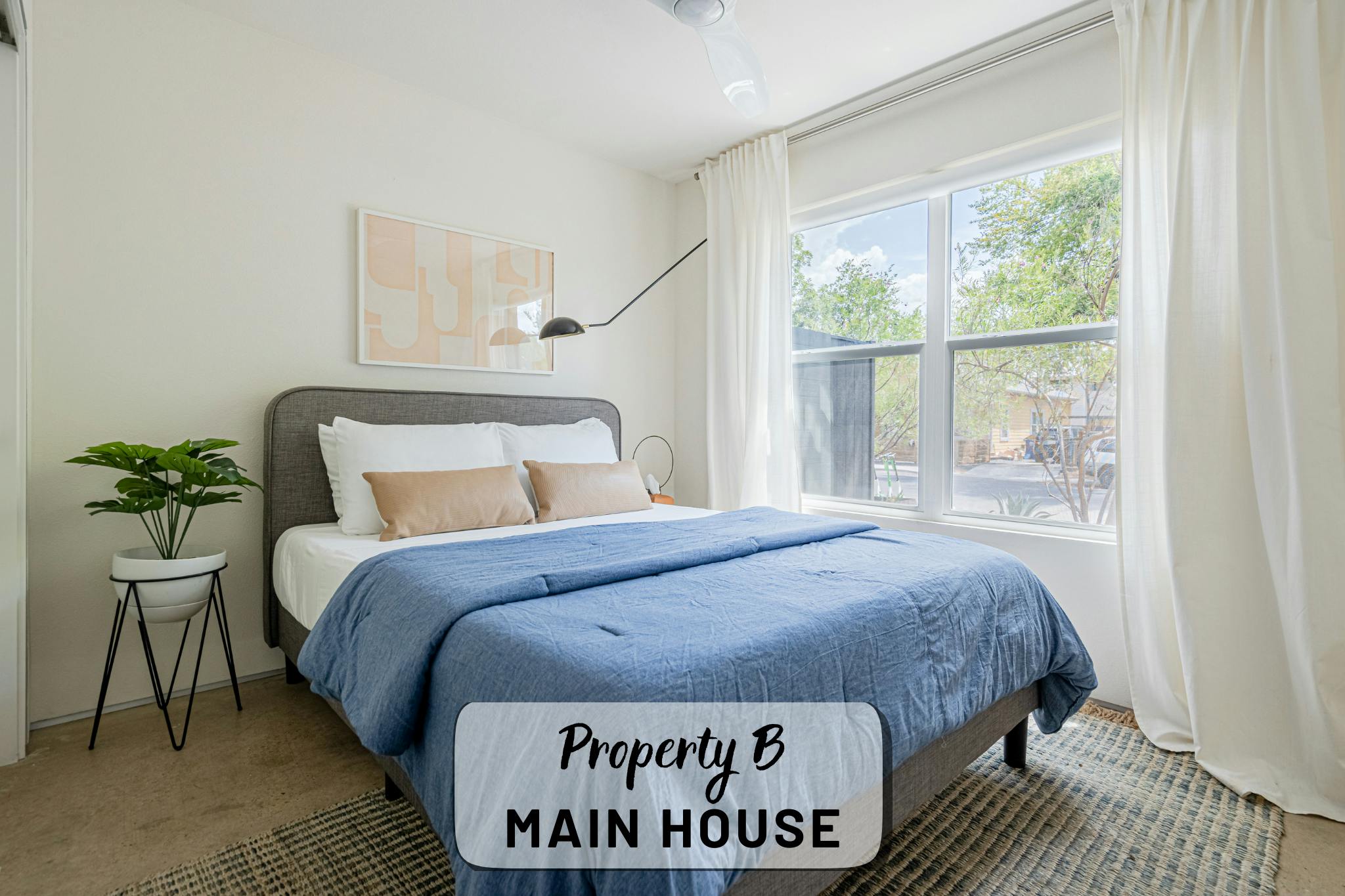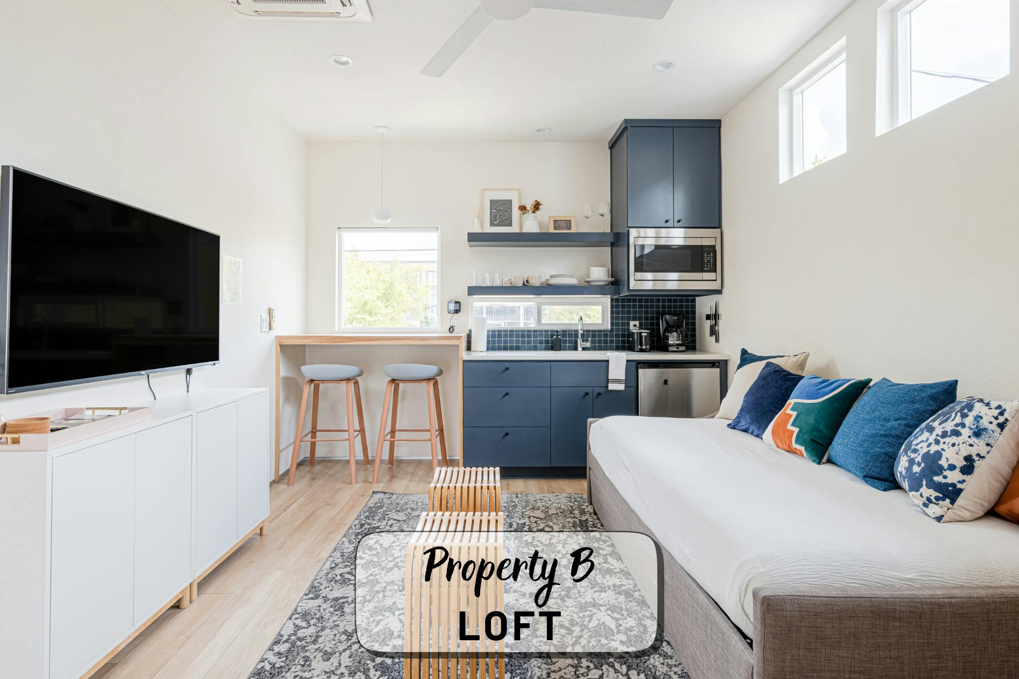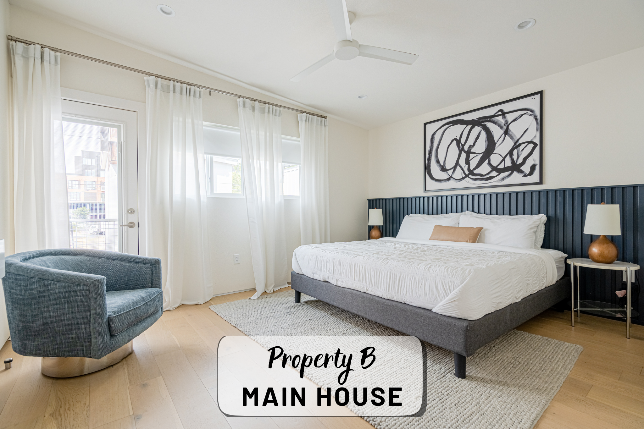 Our property contains two separate units within a fenced in lot. The main house offers an open, production-friendly layout with abundant natural light, comfortable modern furnishings, and a glass garage door that opens to the patio for easy indoor–outdoor flow. The separate garage loft adds a highly versatile second space. The property includes a kitchen, kitchenette, five bedrooms and four full bathrooms, making it well-suited for talent holding, wardrobe, breakout space, or overnight stays.