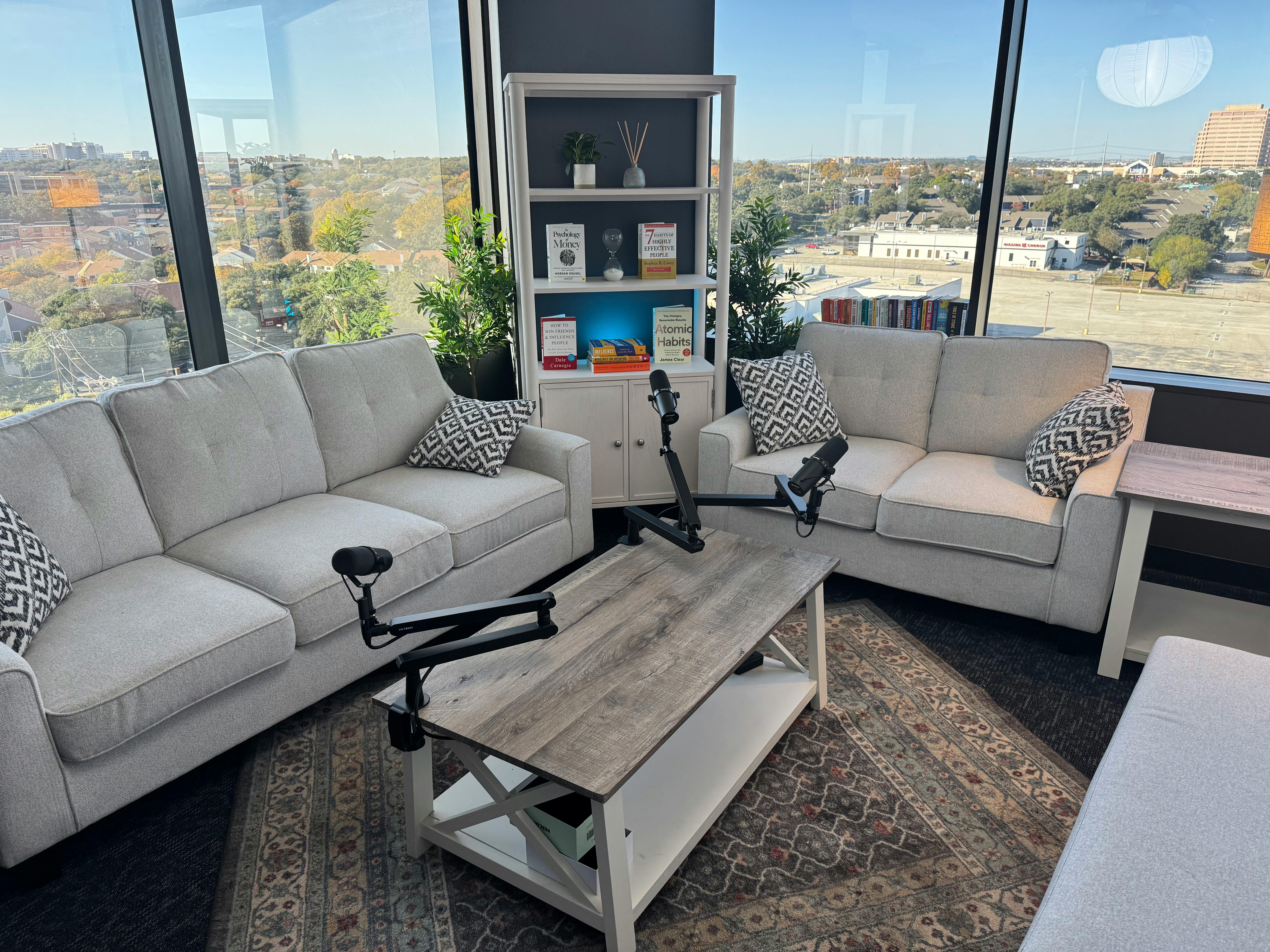 Professional podcast and video studio in San Antonio for creators, brands, and small businesses. Ideal for podcast recording, video interviews, YouTube content, talking-head videos, and branded media. This San Antonio podcast studio is built for podcasts with video, clear audio, and a polished camera-ready look. Great for solo episodes, guest interviews, roundtables, and content marketing production in San Antonio.