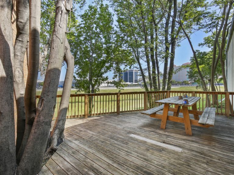 The kitchen of Soar Creative is great for a variety of things beyond cooking. With wooden cabinetry, granite countertops, stainless steel appliances, and modern concrete floors, this part of the venue proves itself to be great for photos or a meet up. There’s room for seating, dancing, meeting, and hosting! With an outdoor deck overlooking the Trinity River, this finished artistic space seems to be ideal for the next big thing on Food Network.