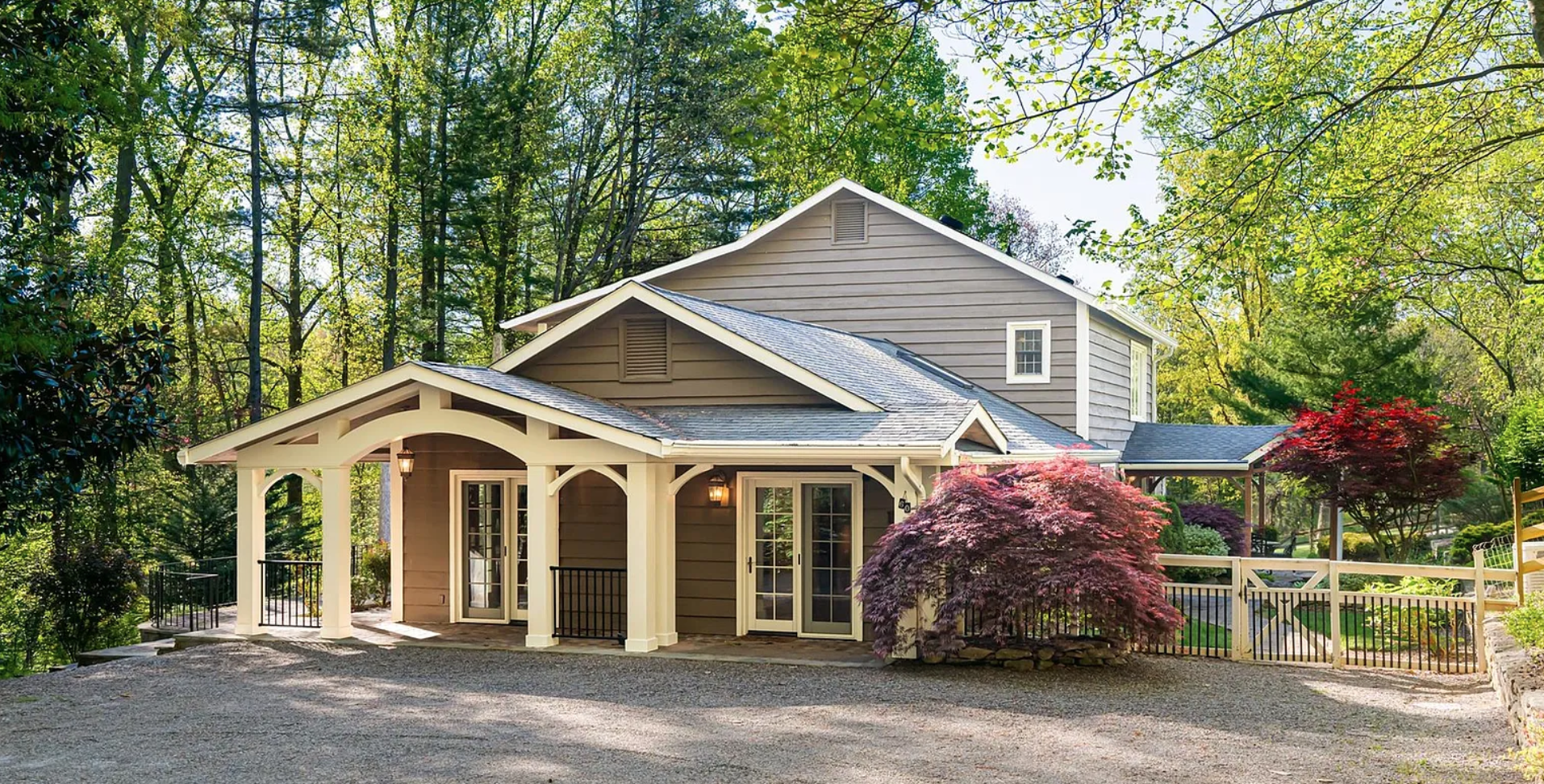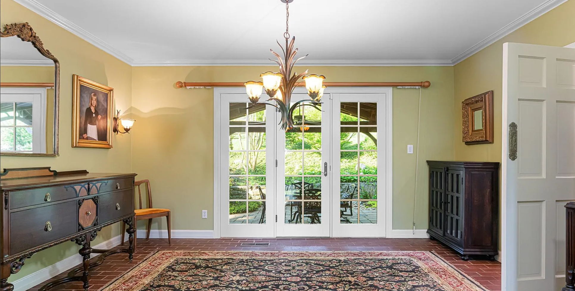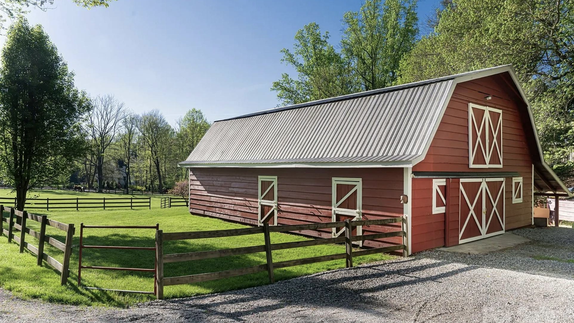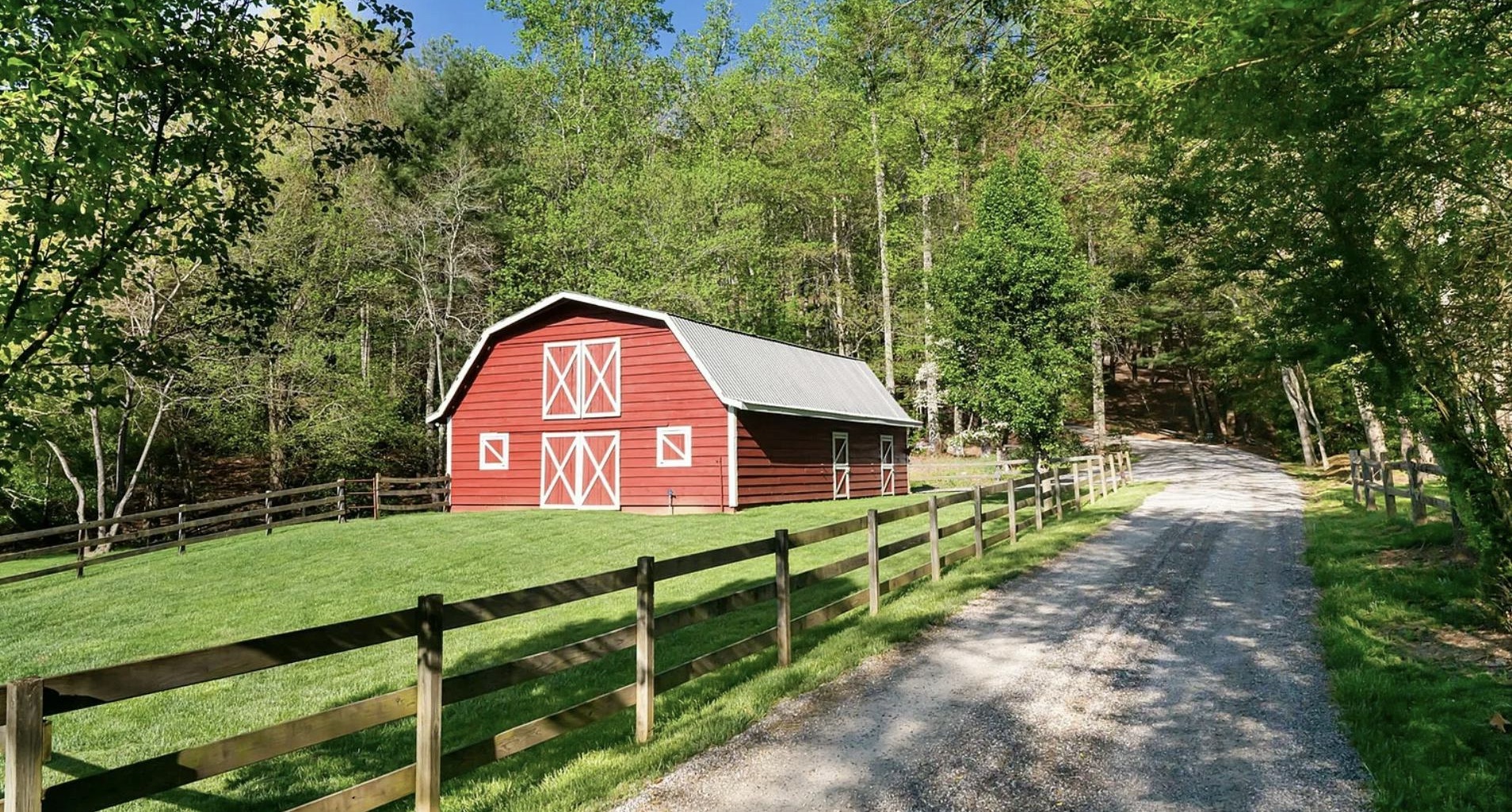 This charming home on four scenic acres is a hidden gem with traditional interiors, large versatile rooms, a cozy red barn and more making it perfect for commercials and film productions!