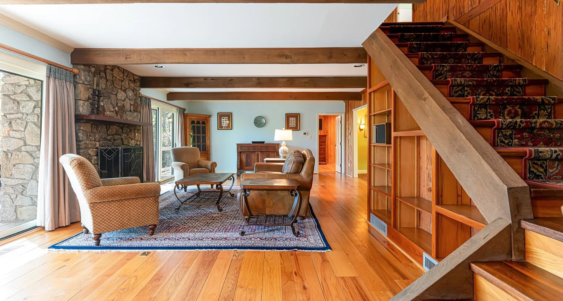 Nestled on 4 acres in the scenic hills of Asheville, NC, property offers a stunning backdrop for film and TV. Surrounded by panoramic mountain views, the property features a mix of rustic charm, including stonework, exposed beams, and large windows framing nature.