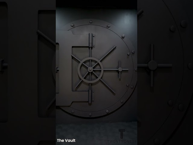 Massive bank vault door set with dark textured walls built for tension and drama. Underground club energy meets high-contrast cinematic lighting. Includes Lux Lobby for talent holding, 5-color backdrop bay (Black, White, Grey, Red, Blue), restroom, changing area, light kitchen. 12'W x 10'H x 7'D.