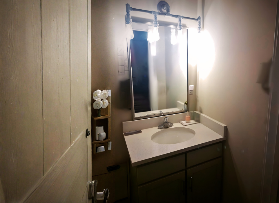Half bath, sink and toilet.