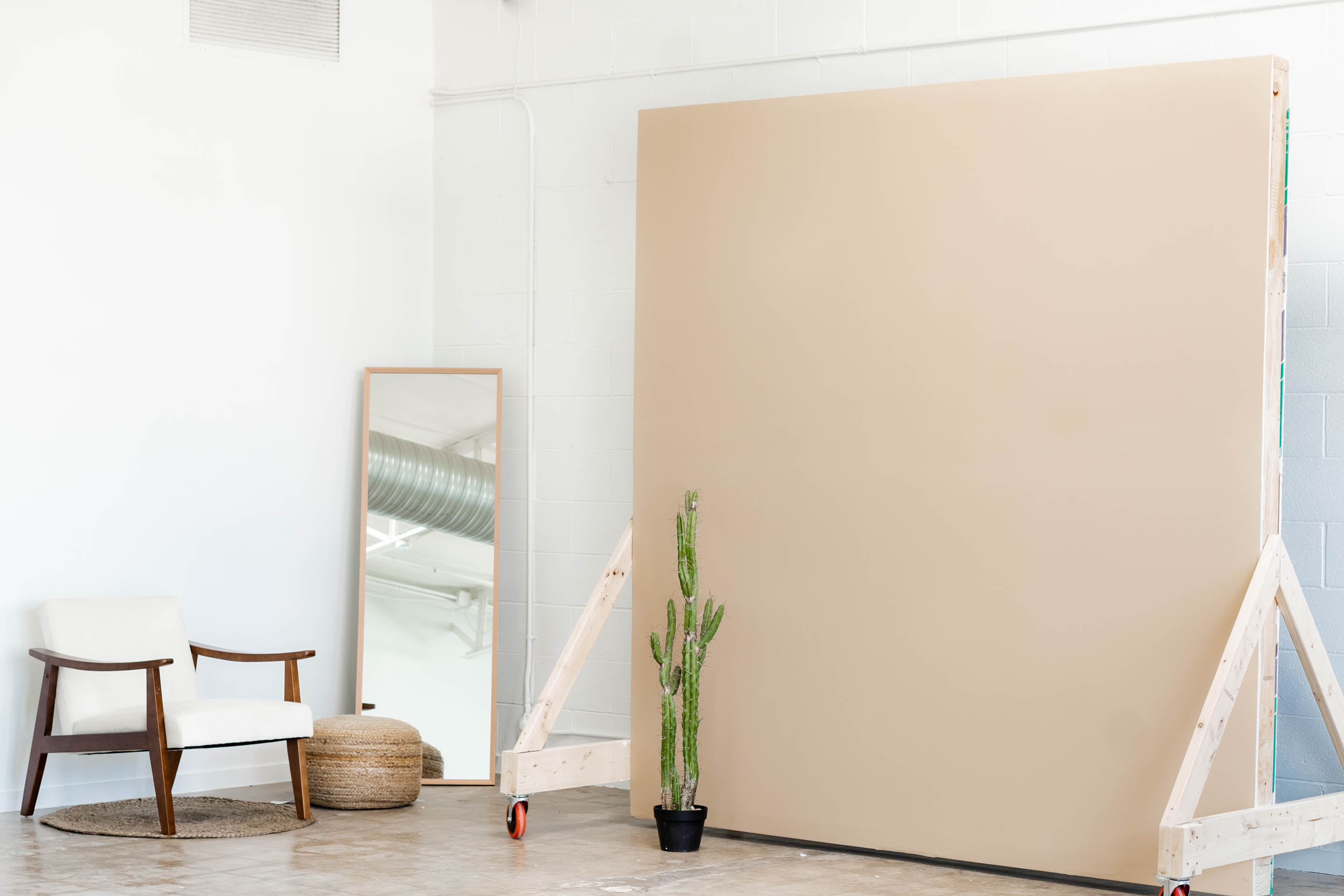 This bright, clean studio with a variety of backdrops and decor is spacious, versatile, and ready for any video or photo shoot!