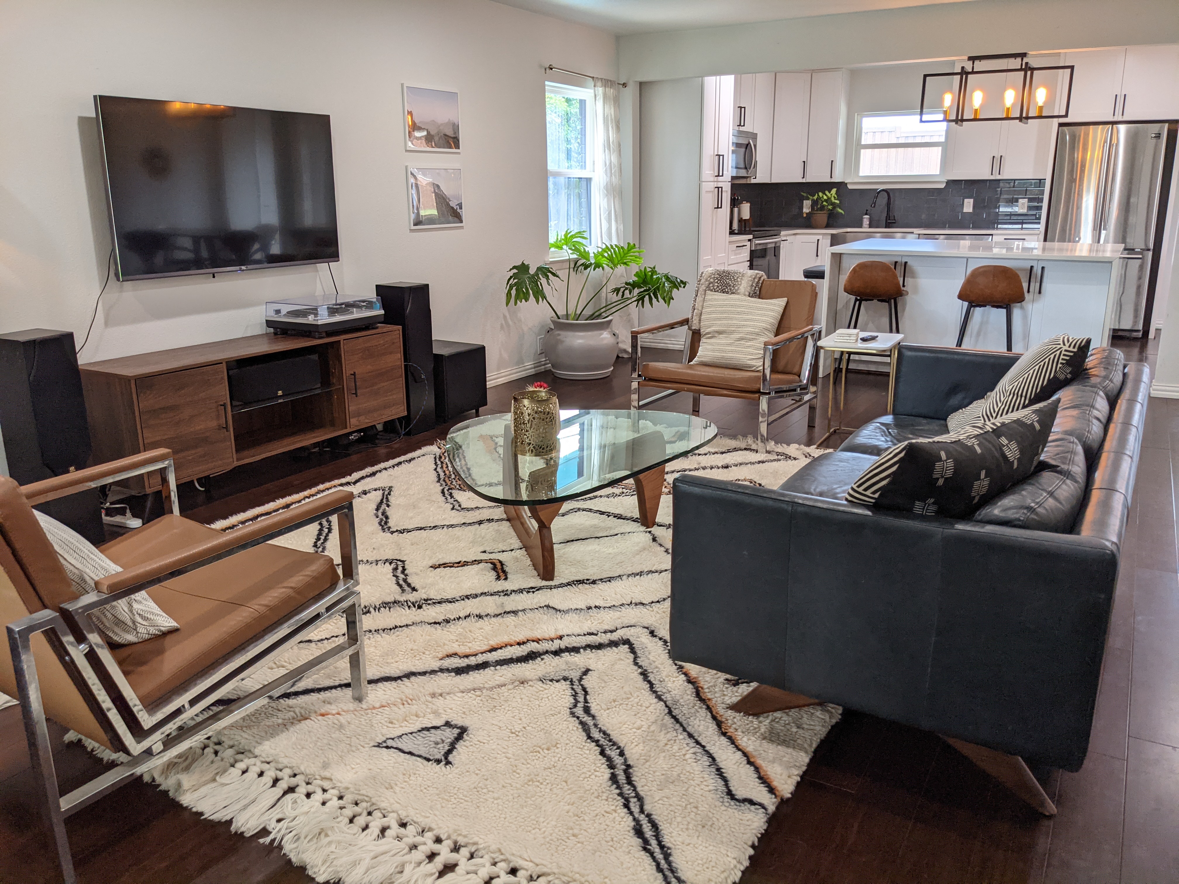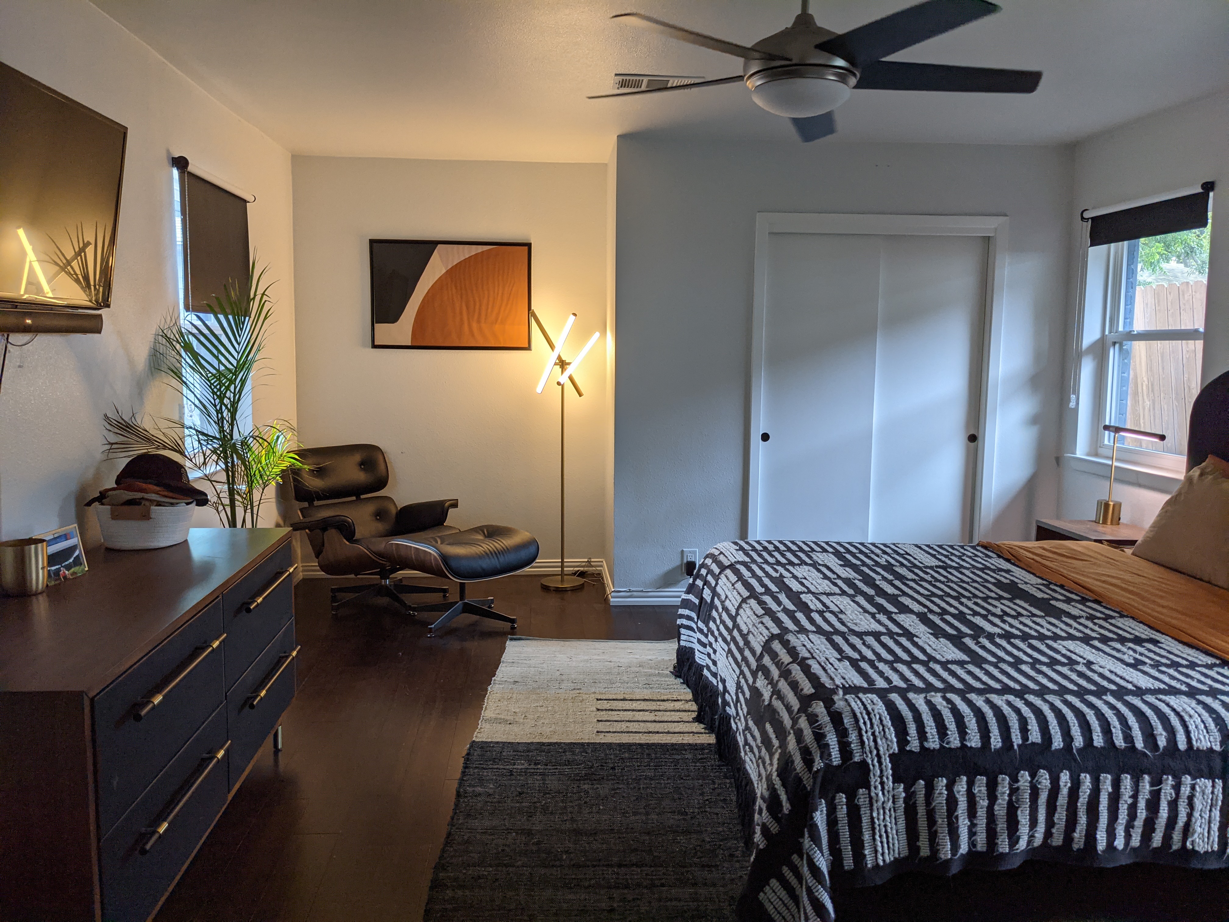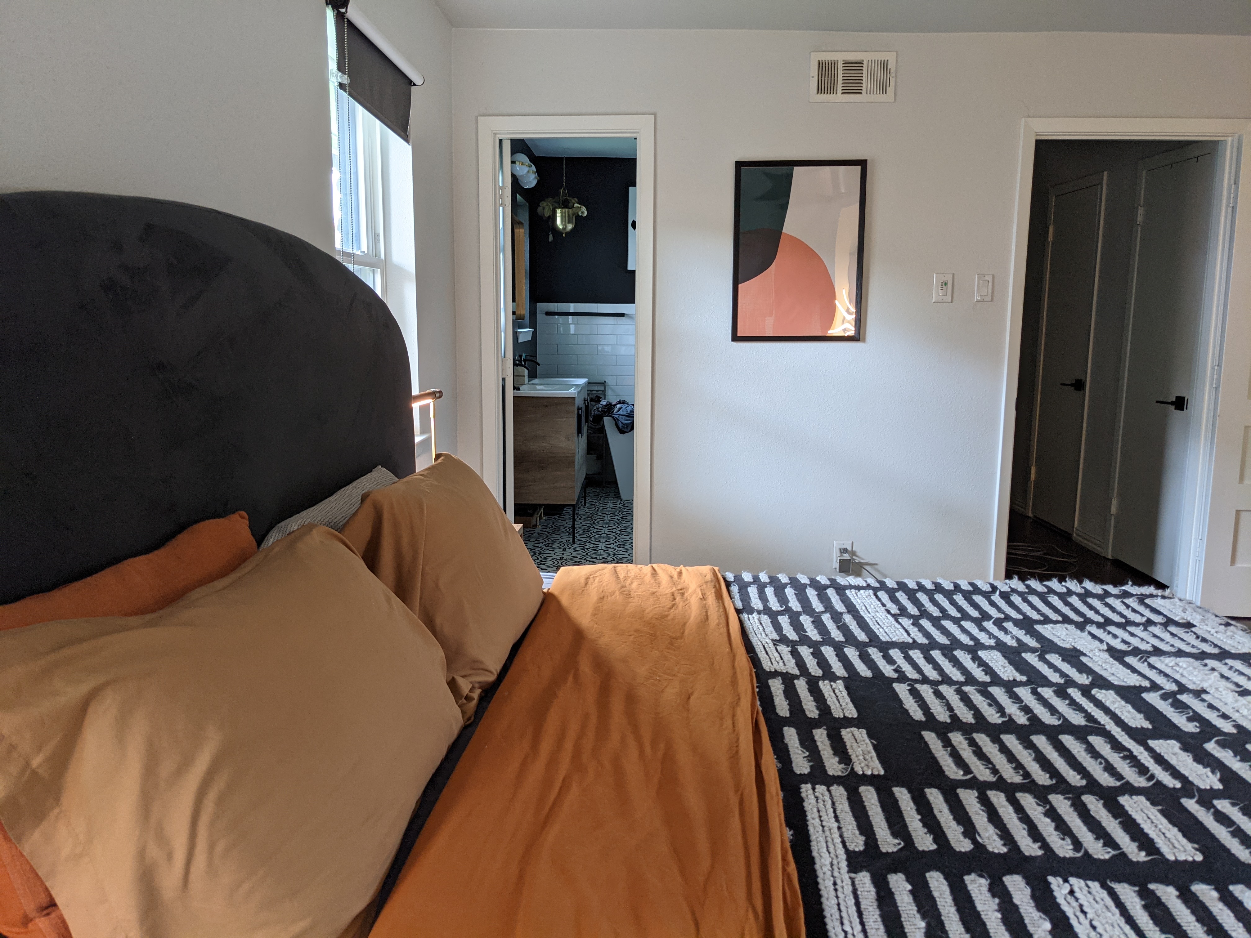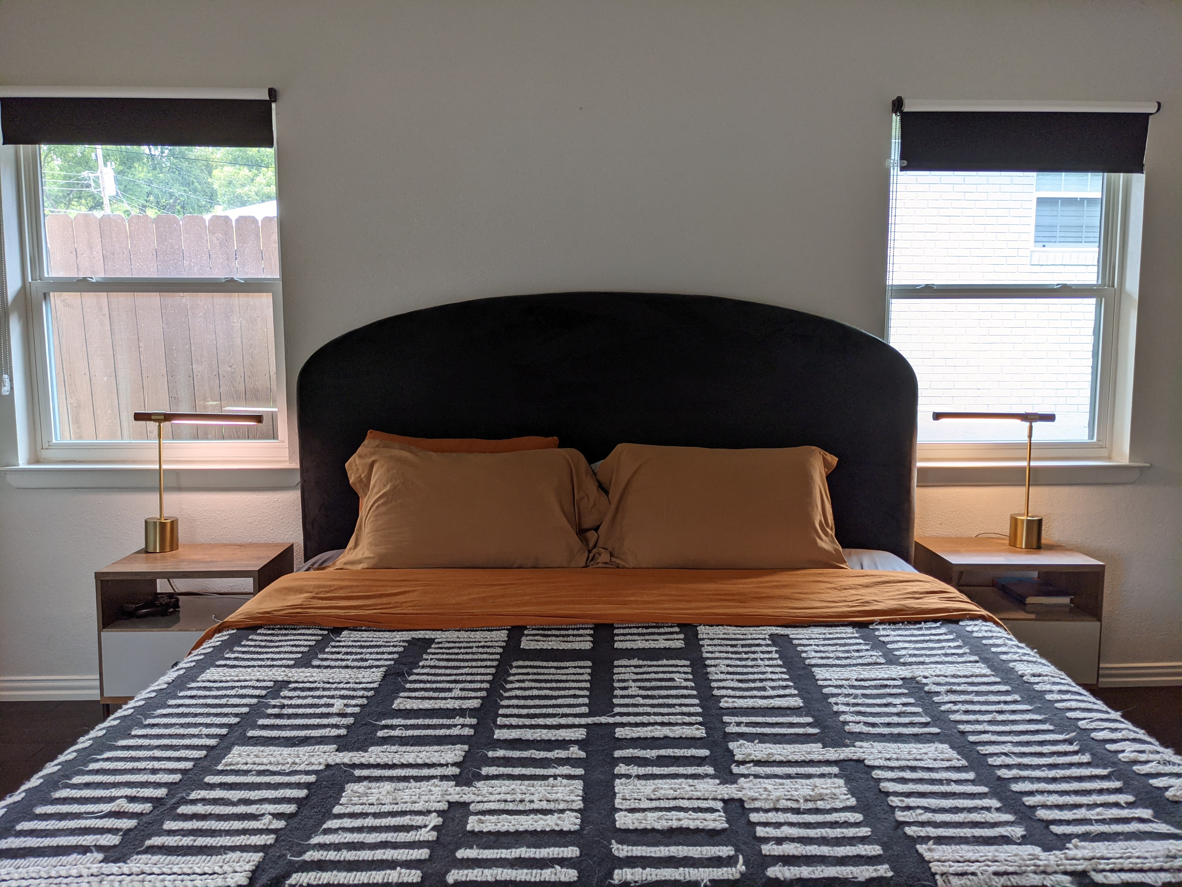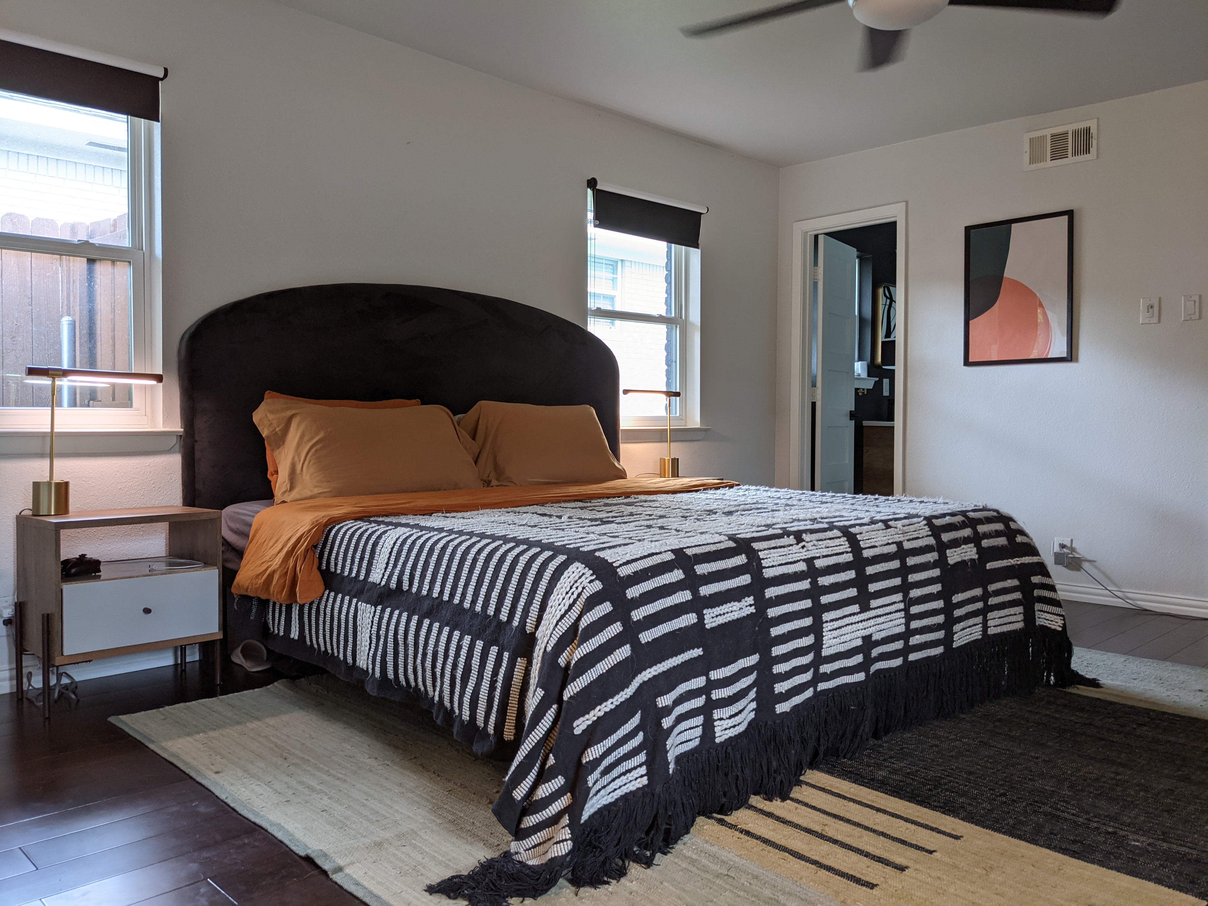 Welcome to our East Dallas 1960s Mid Century Modern home. There are 2 usable bedrooms and bathrooms decorated with modern furniture, as well as an open floor plan kitchen / living room space. The backyard and pool are usable as well, although anything involving swimming will require a waiver to be signed. Both areas of the backyard have string lights with edison bulbs. We're located in East Dallas, just about 5 minutes away from White Rock Lake.