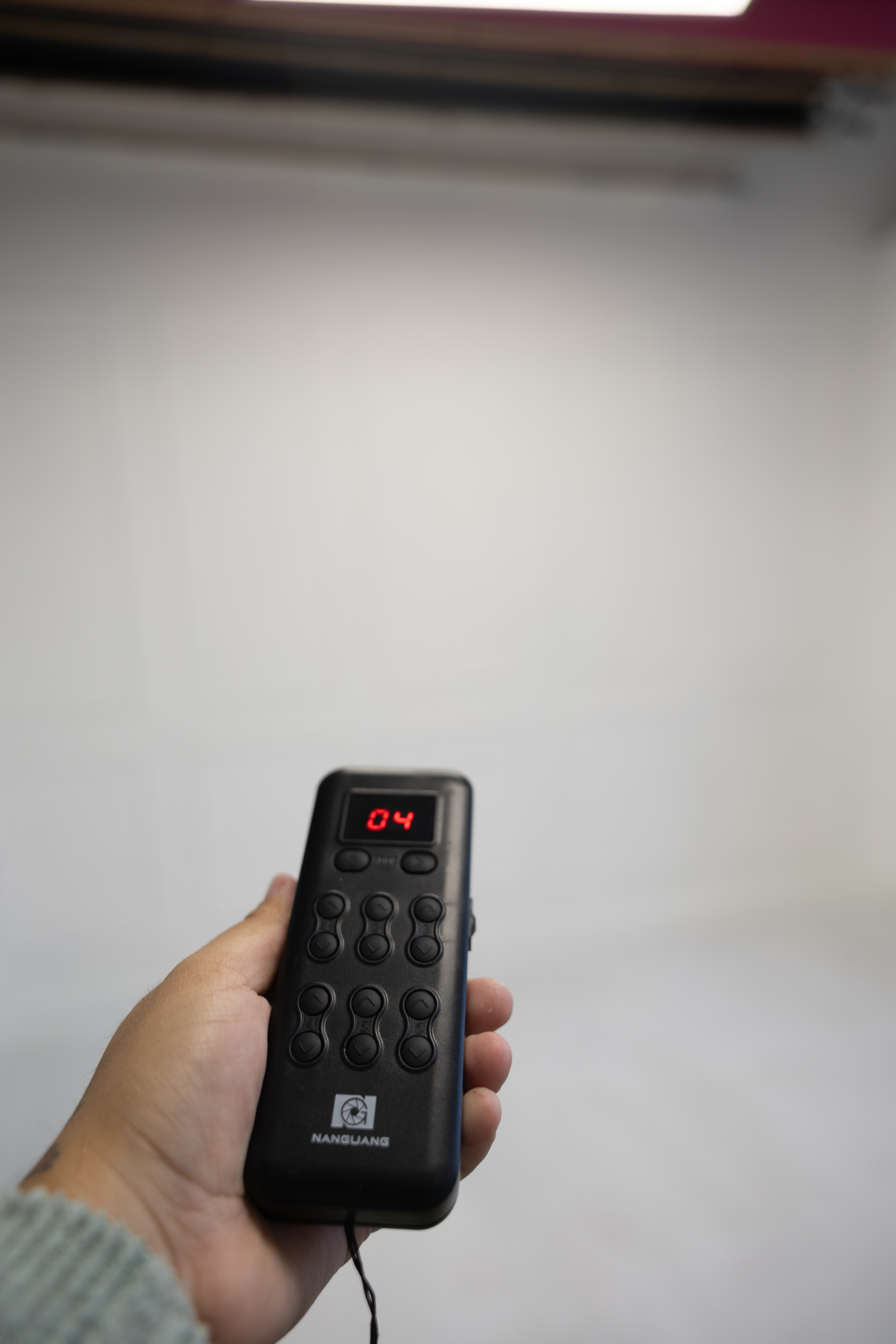 Motorized backdrop system consisting of 6 colors: white, black, navy, tan, pink and olive