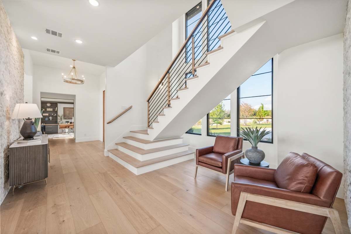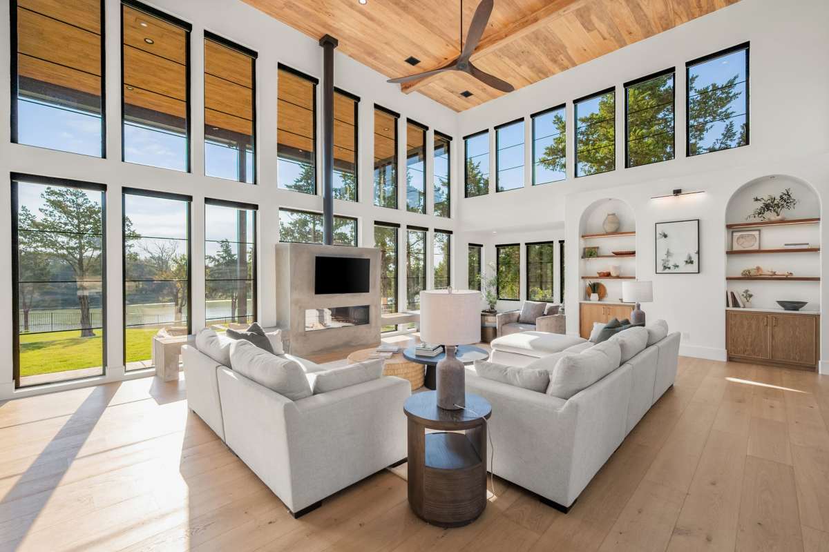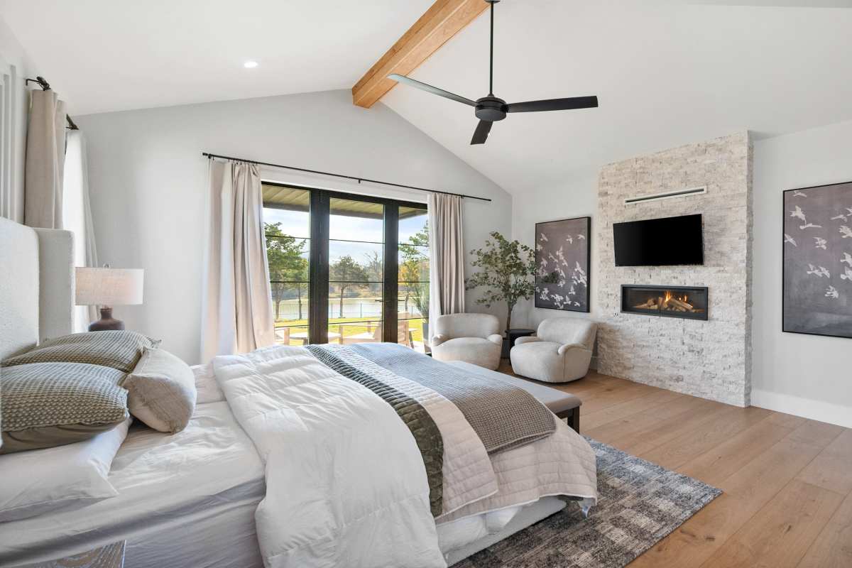 This beautiful new build features expansive east and west-facing windows with tons of natural light from morning through evening. Every window overlooks the yard and lake, creating stunning, ready-made backdrops. The thoughtful design choices feature light hardwood floors, designer light fixtures that double as functional lighting and visual statement pieces, and high-end, neutral furnishings that adapt to any creative style without distraction.