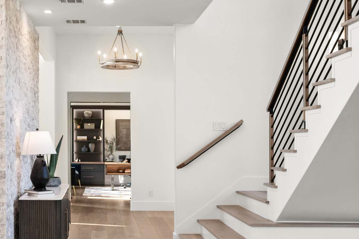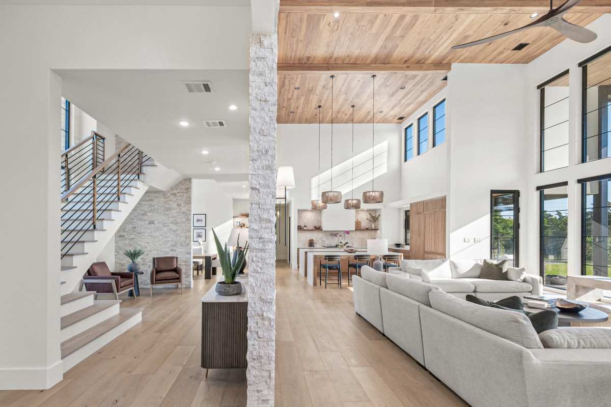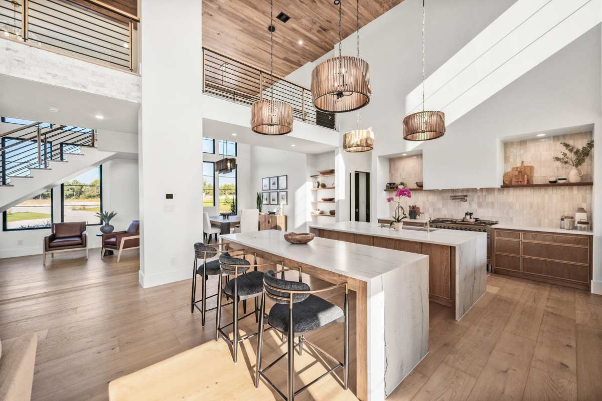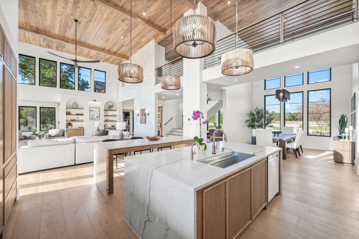 This beautiful new build features expansive east and west-facing windows with tons of natural light from morning through evening. Every window overlooks the yard and lake, creating stunning, ready-made backdrops. The thoughtful design choices feature light hardwood floors, designer light fixtures that double as functional lighting and visual statement pieces, and high-end, neutral furnishings that adapt to any creative style without distraction.