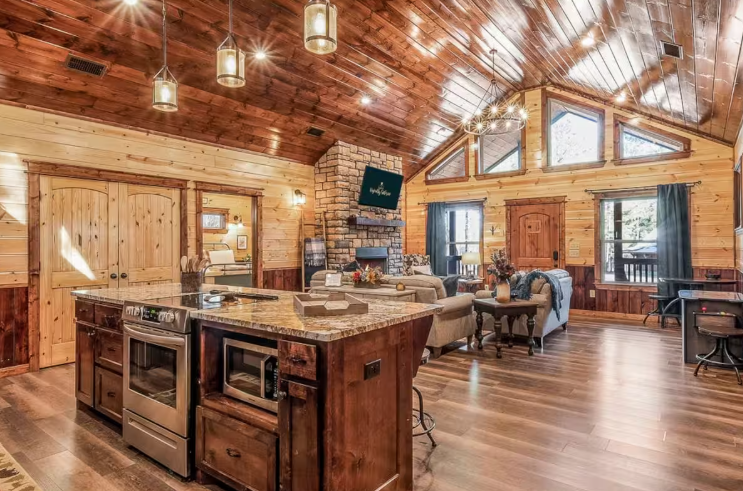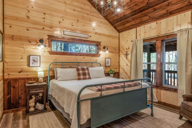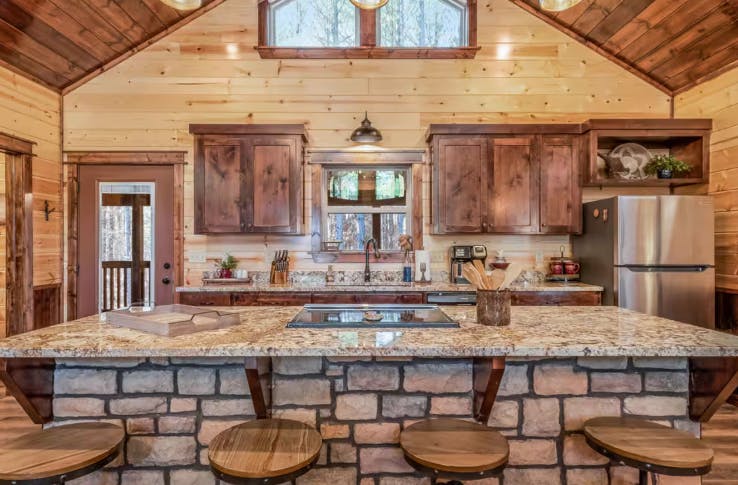 This private Fort Worth apartment offers a rustic cabin aesthetic with great natural light and texture. The space features wood paneling and vaulted wood ceilings, along with a stone fireplace inside and on the back porch. With its cozy furnishings and lodge feel, this location is perfect for small scale shoots!