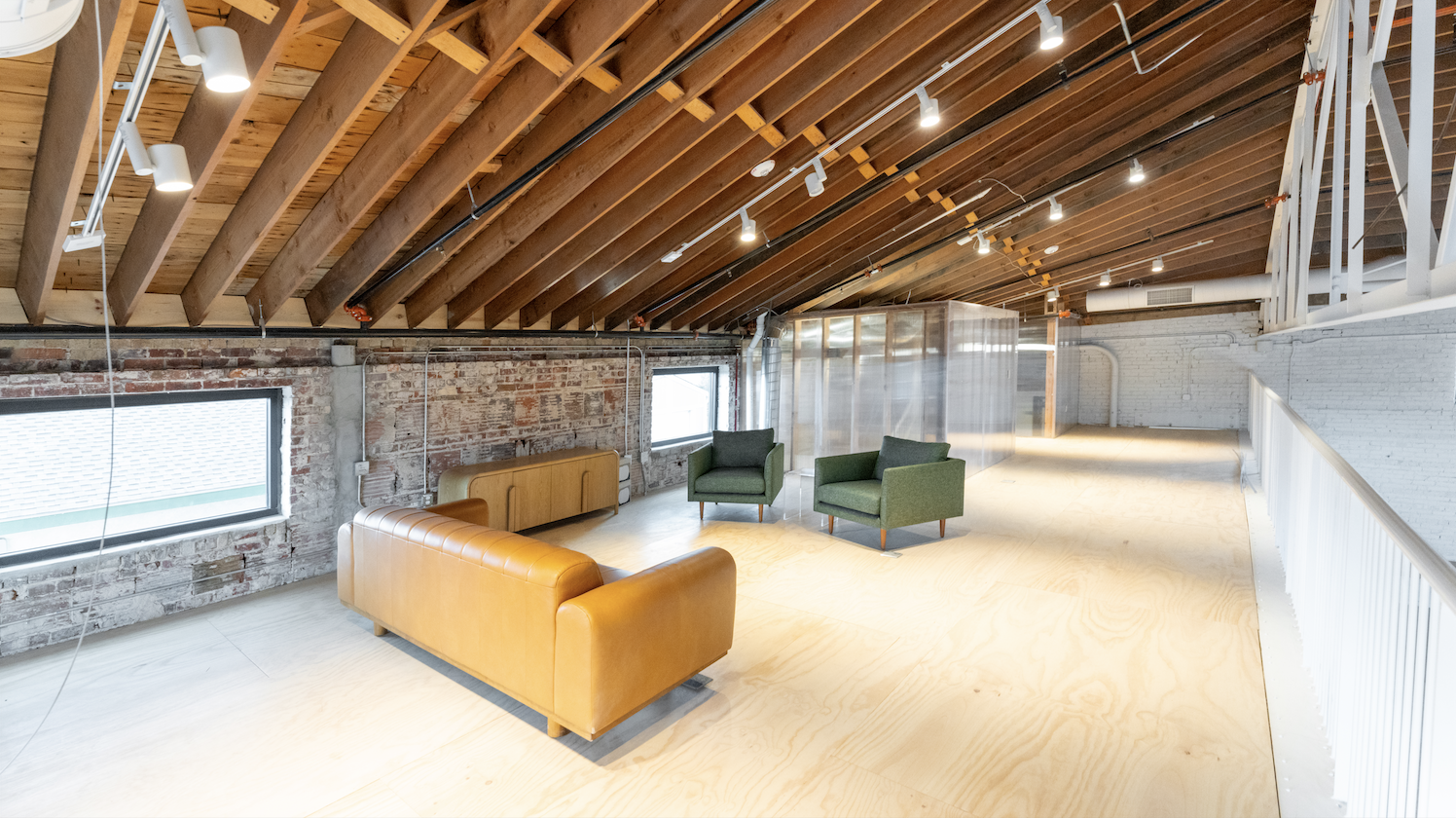 This event venue has a polished-industrial vibe, with vaulted ceilings and exposed brick walls. The wide open space offers depth and texture, making it a great option for interview shoots as well!