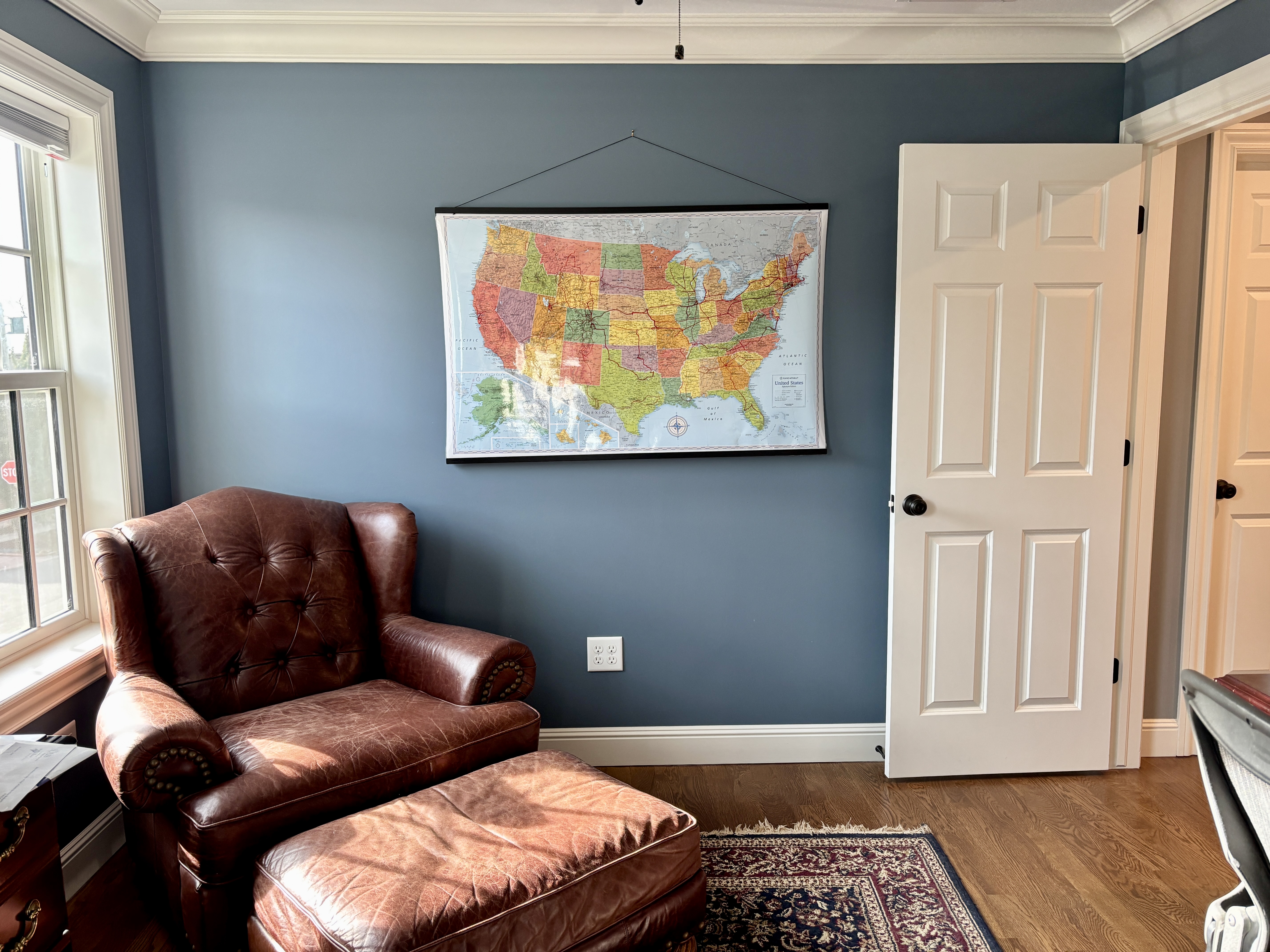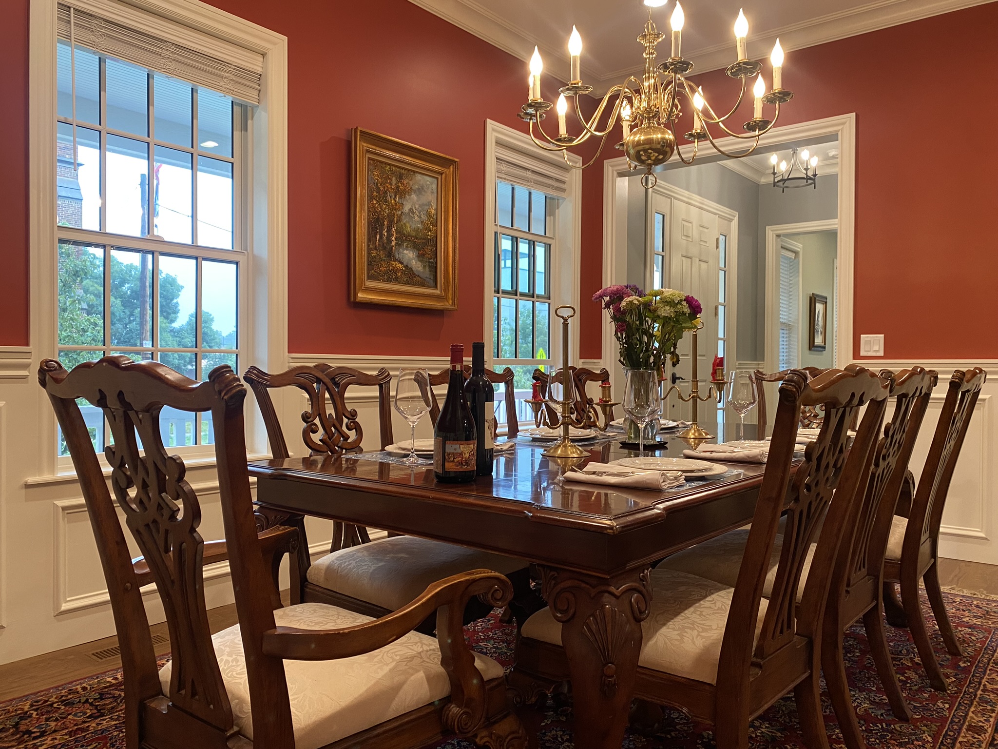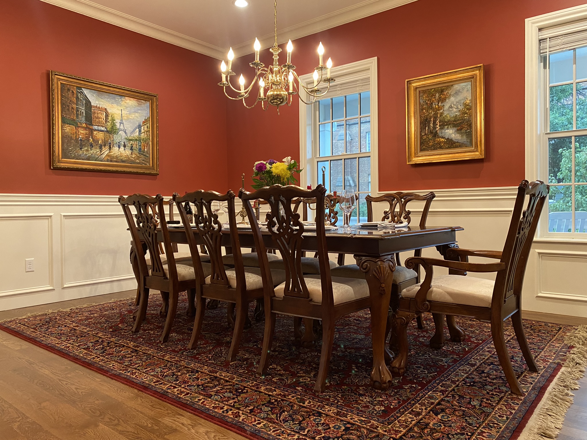 This meticulously maintained two-story Colonial blends timeless charm with modern sophistication, making it a standout choice for productions seeking a versatile and visually compelling location. The house features a show-stopping chef's kitchen, a living room with natural light and a traditional fireplace, an elegant and dramatic dining room with warm red walls and white wainscoting. There are classic double-hung windows, crown moulding, boasting an upscale yet approachable aesthetic.