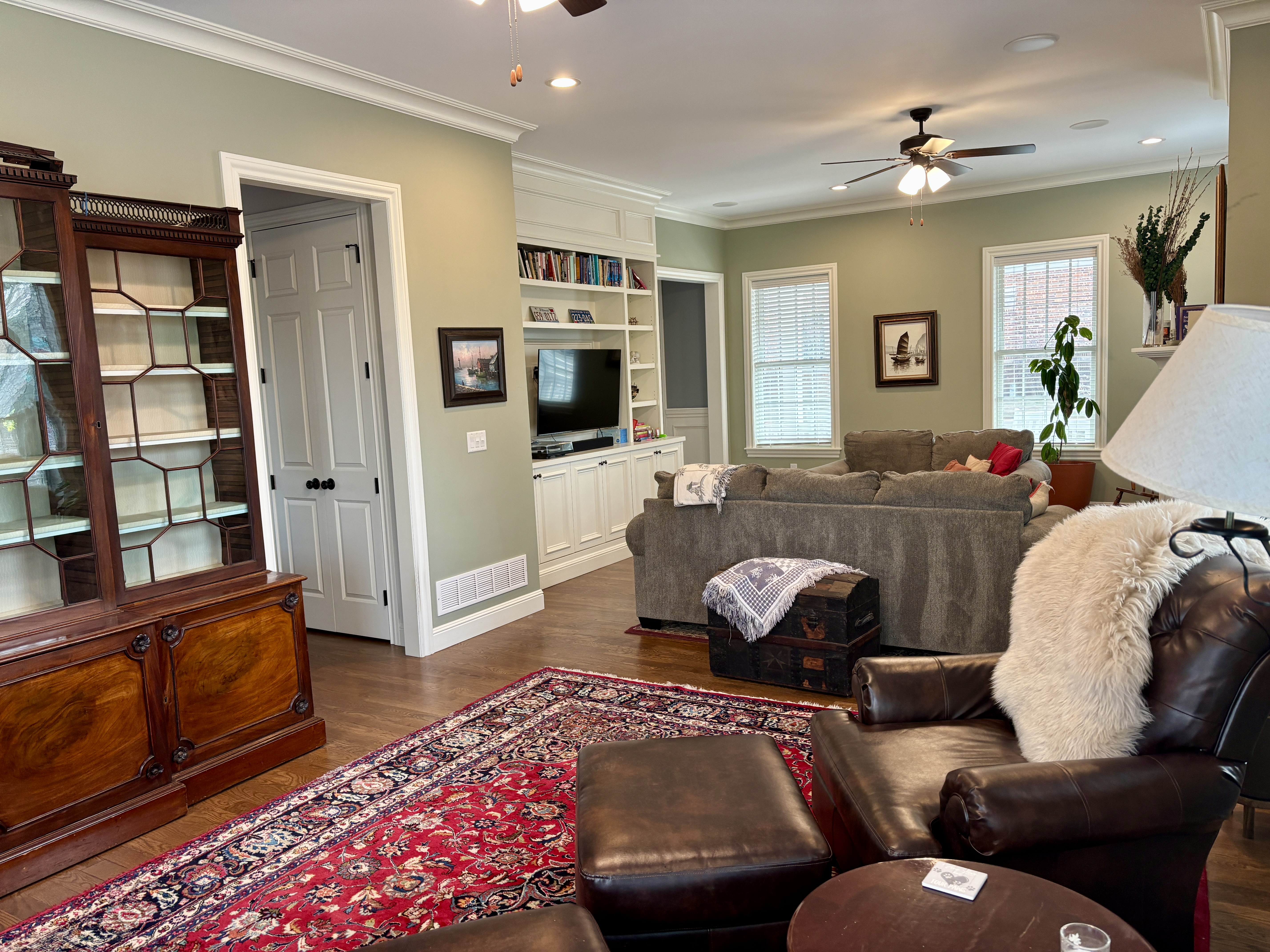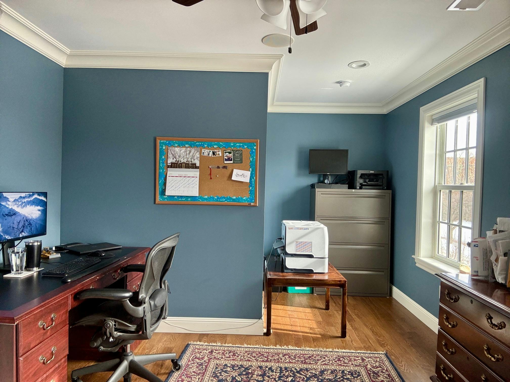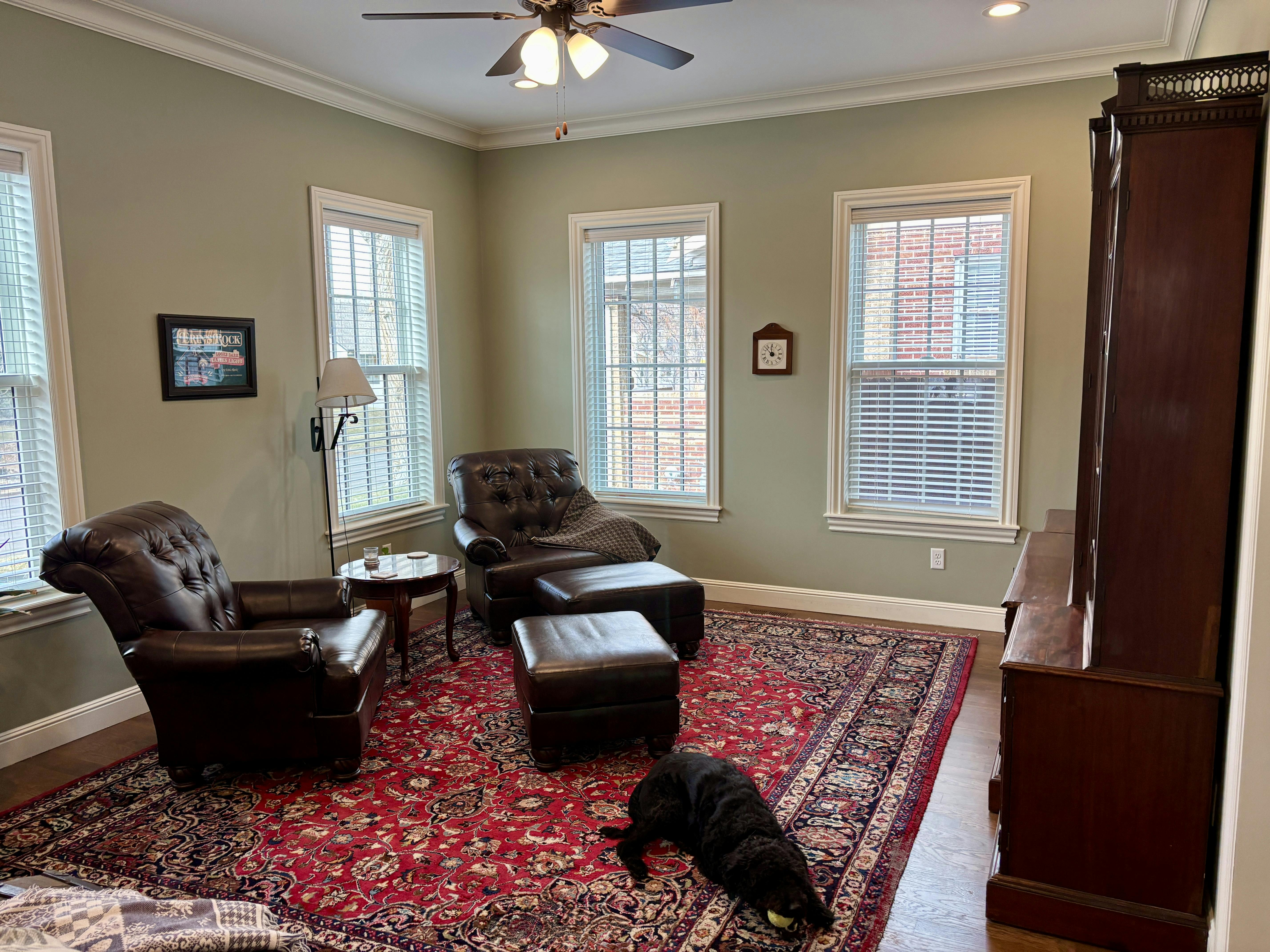 This meticulously maintained two-story Colonial blends timeless charm with modern sophistication, making it a standout choice for productions seeking a versatile and visually compelling location. The house features a show-stopping chef's kitchen, a living room with natural light and a traditional fireplace, an elegant and dramatic dining room with warm red walls and white wainscoting. There are classic double-hung windows, crown moulding, boasting an upscale yet approachable aesthetic.
