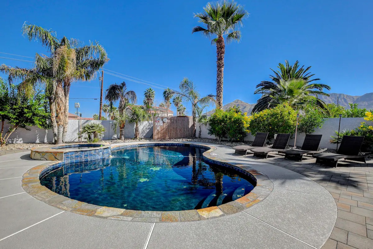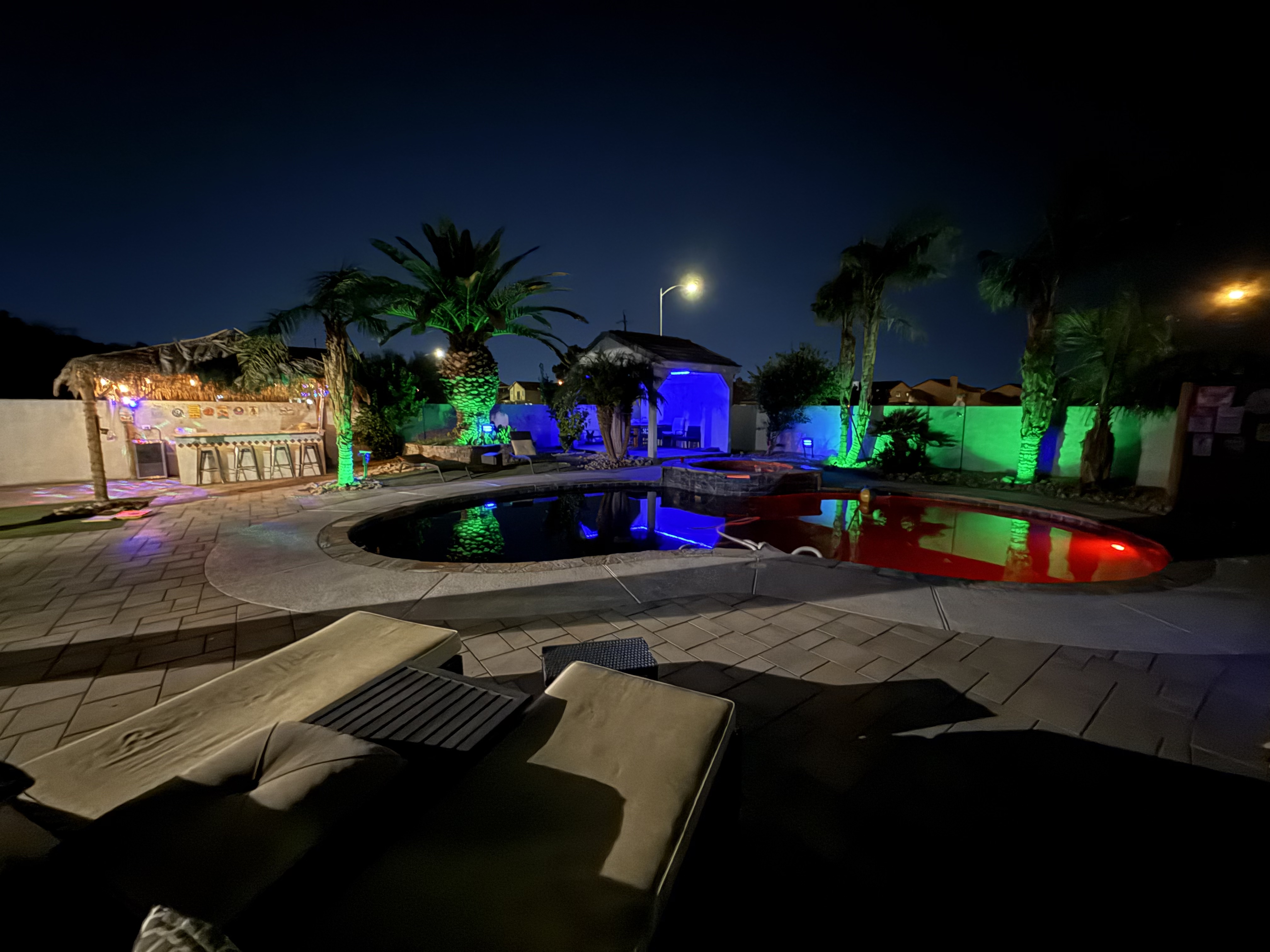 A little slice of paradise in Las Vegas. This 4-bd,3-ba, two-story home is built for photo shoots, film productions & content creation. Private backyard features a resort-style pool, oversized hot tub, and a custom tiki bar, creating an unforgettable tropical setting just minutes from the Strip & LV Motor Speedway