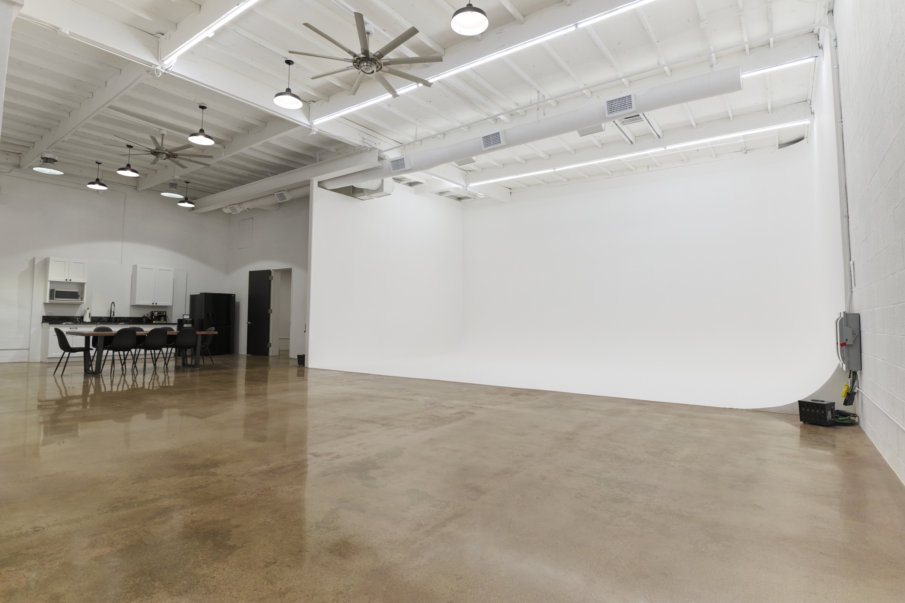 -Warm polished concrete floors with multiple white wall shooting options