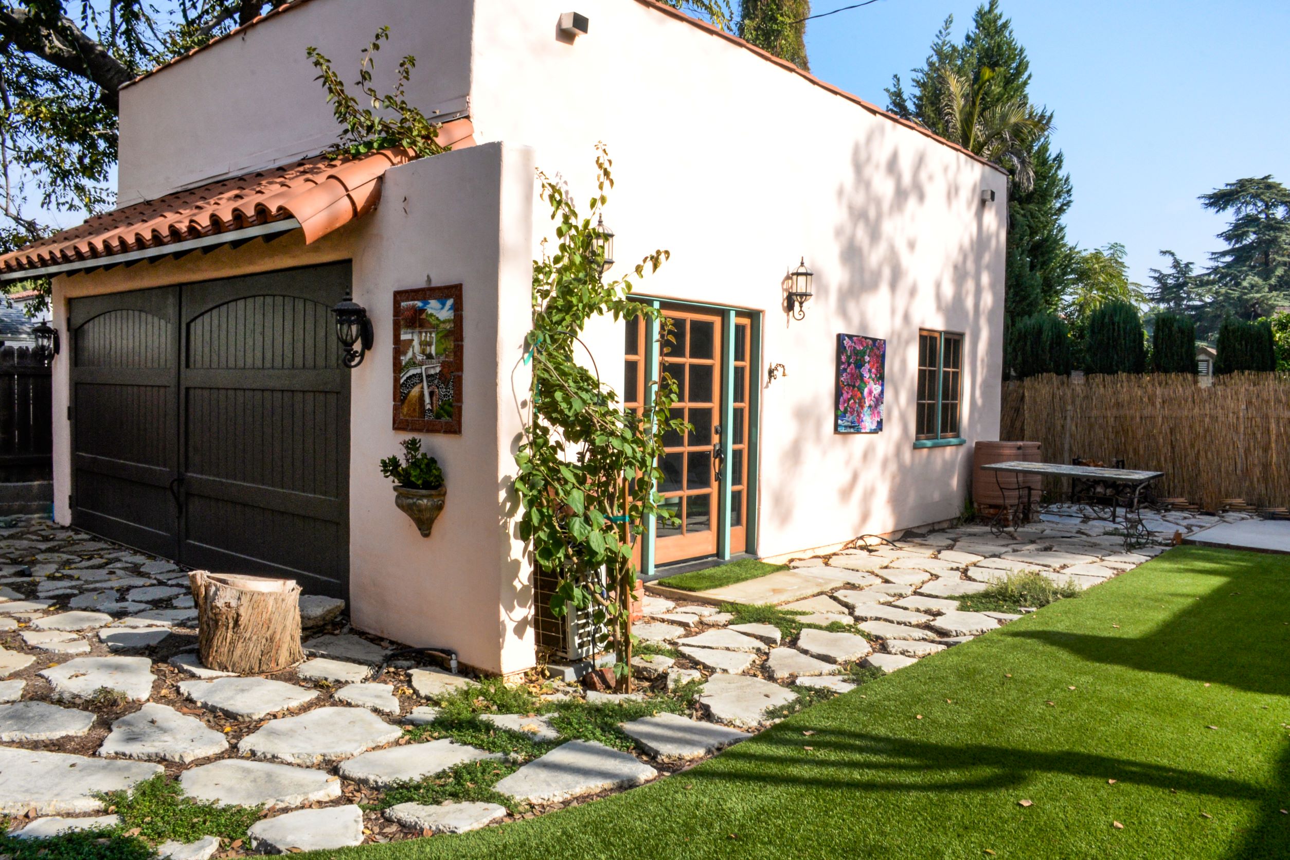 Aloha! Be transported anywhere in the world when you enter our gardens :) The sacred gardens is comprised of 2 botanical areas: a lush, serene jungle in the front & a typical backyard complete with green lawn, and hot tub. Imagine walking into a tropical oasis.