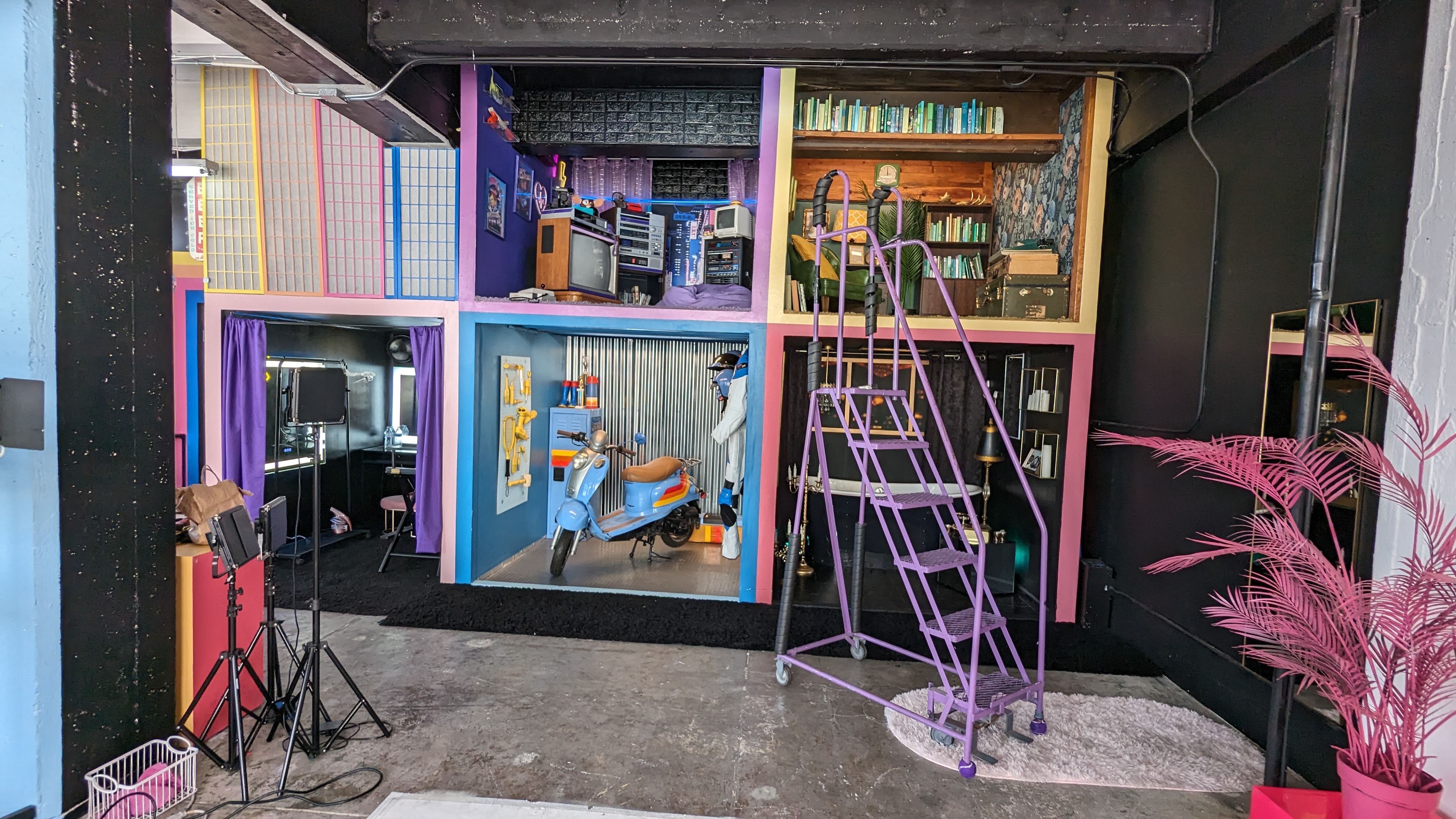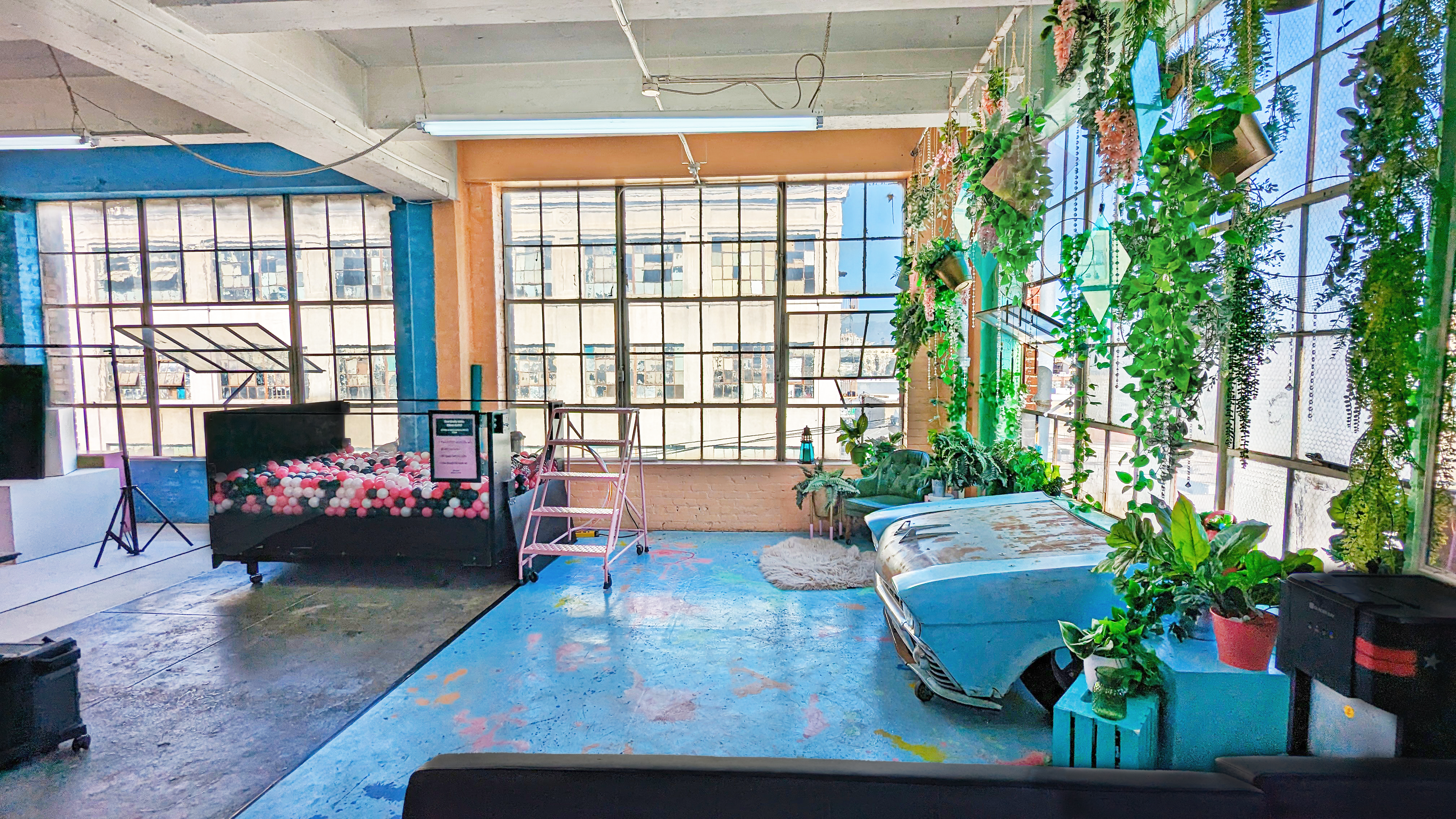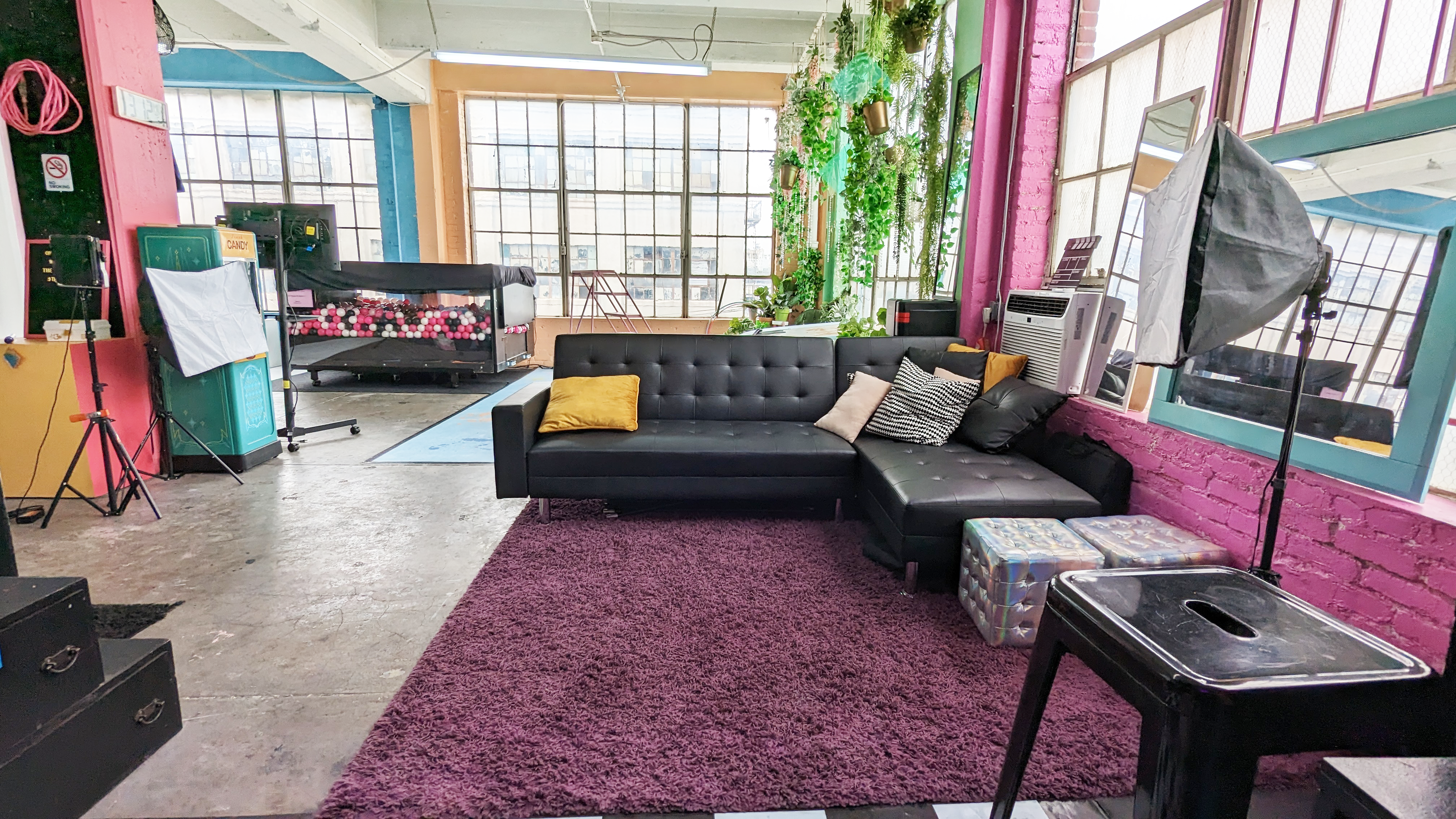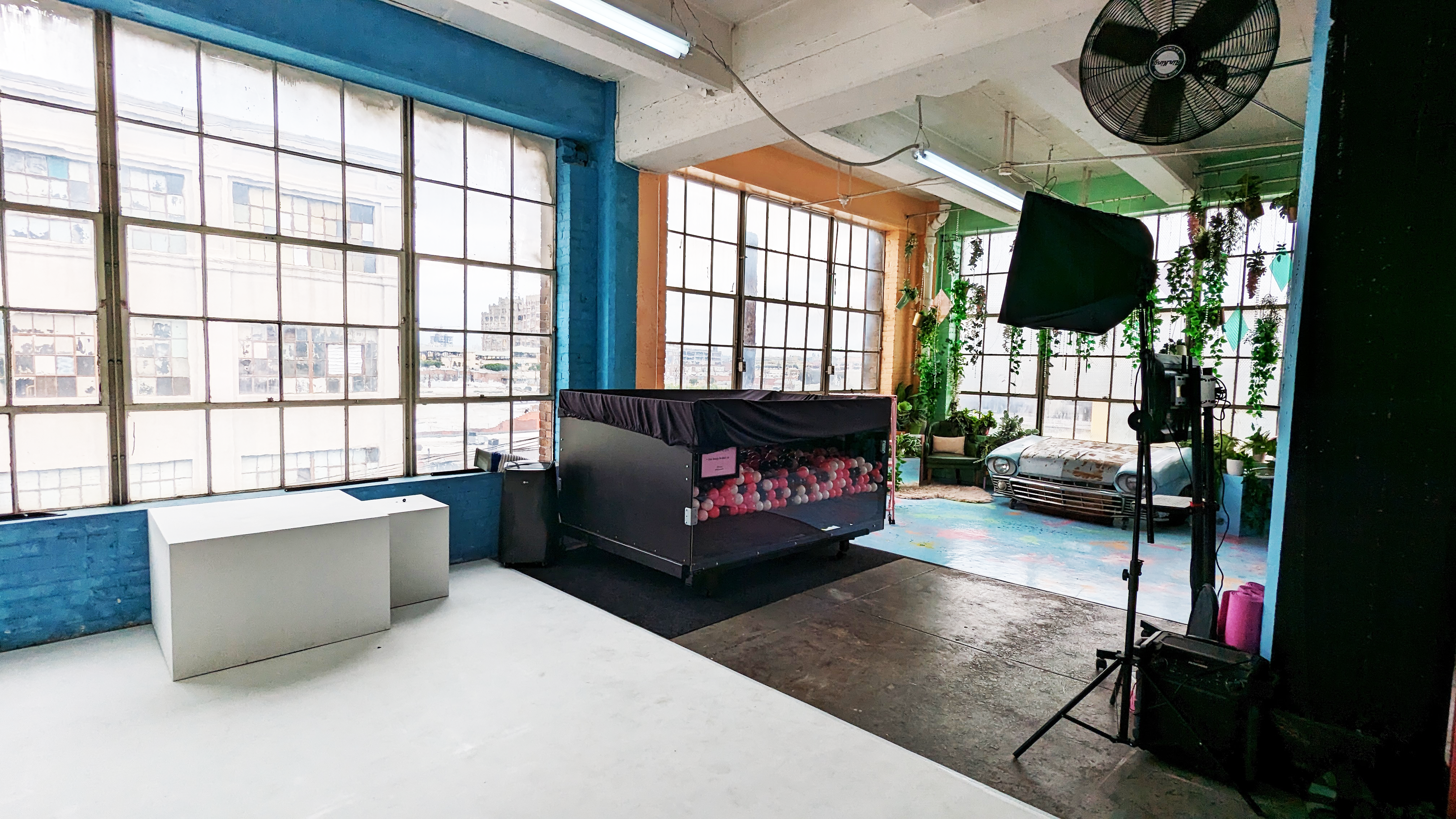 Welcome to The Boxie Studio! This multi-set, mix-and-match studio features a life sized Doll House, ball pit, seamless with 15+ color options, as well as an abundance of props to use with our white wall– a 10ft x 14ft blank space to make your own custom backdrop for photos, videos, or live productions. Lighting equipment, video monitor, plus beautiful natural light from our floor to ceiling loft windows are all i
