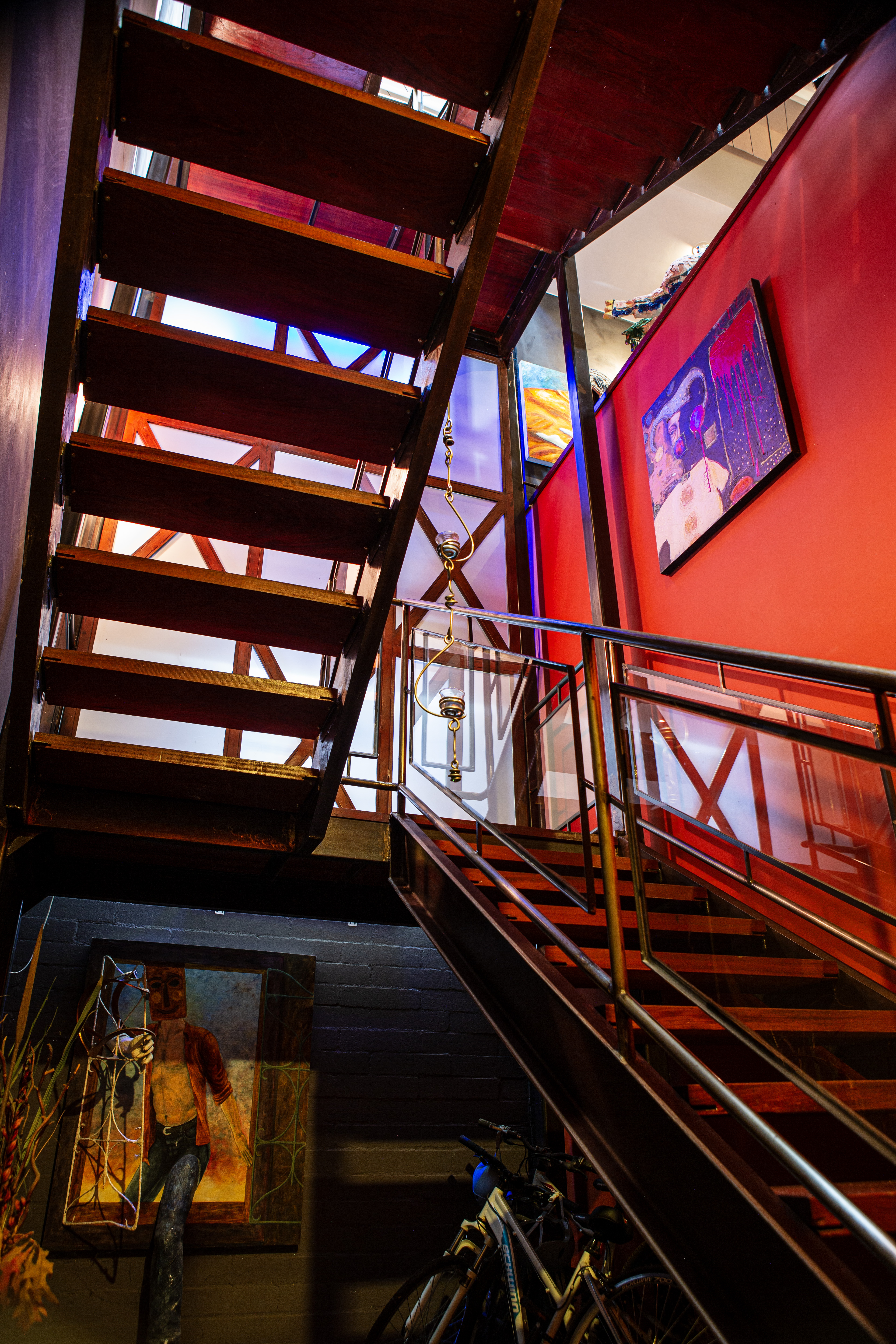 the open workspace area is the artist's office and creative area. This has not been staged. Hundreds of paintings and vintage antiques adorn the area, as it is his daily workspace.
