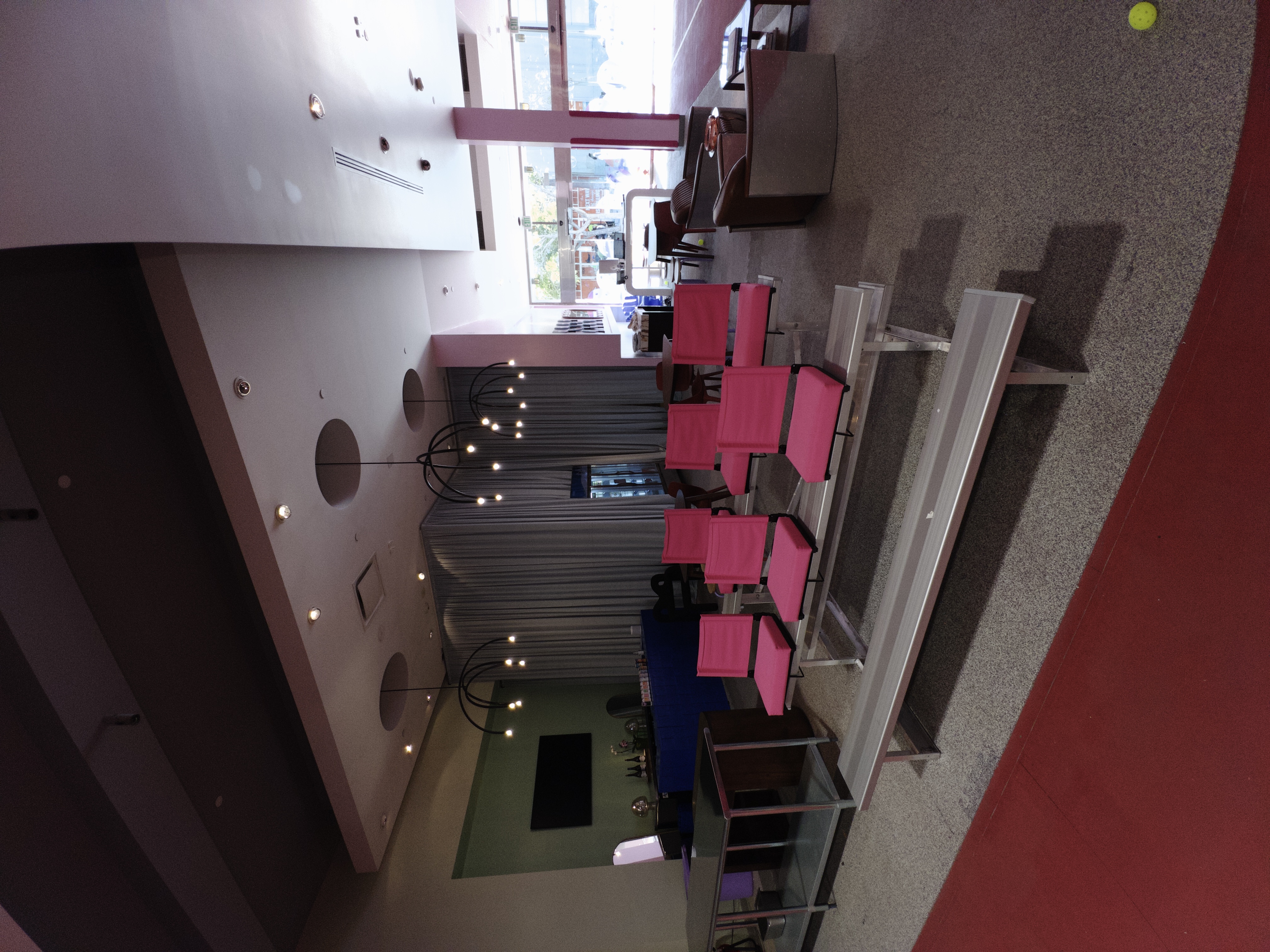 This unique indoor pickleball facility with multiple courts, a lounge and vibrant colors throughout is perfect for film productions, photo shoots or social media content!