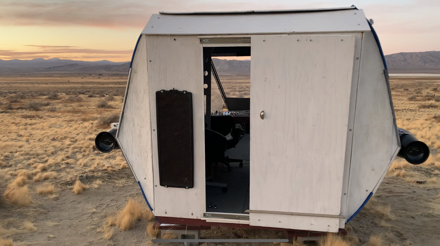 This homemade spaceship is the latest addition to the RRR Ranch, and it's right at home in the sprawling desert landscape. Located on 20 acres of open land in the Mojave, it's a great perfect location to bring your fan fiction or creative vision to life!