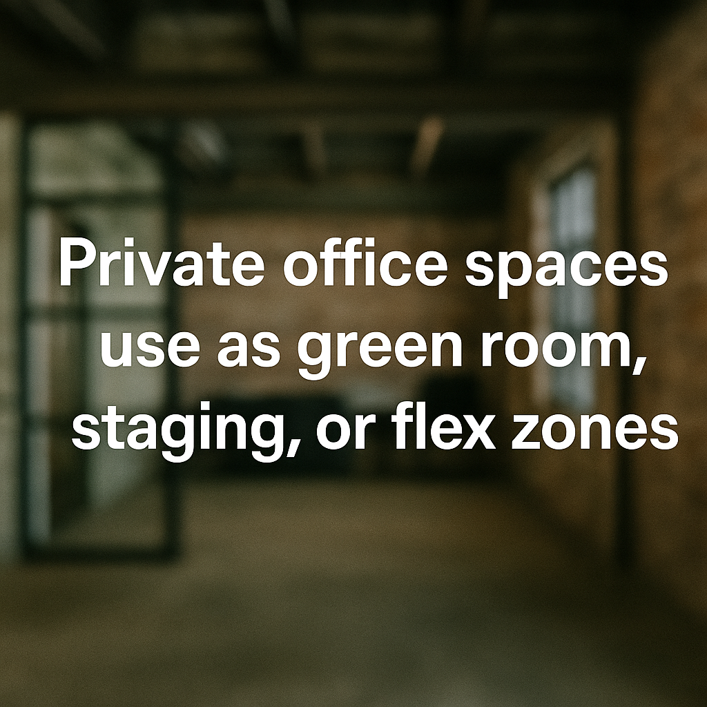 AMPLE PARKING! Looking for a clean, production-ready space for your next shoot or creative project? This 9,000 sq ft private industrial property offers wide-open workshop space, multiple offices, makeup room, 4 bathrooms, gym, music room, open film shooting area, art space, & on site parking!