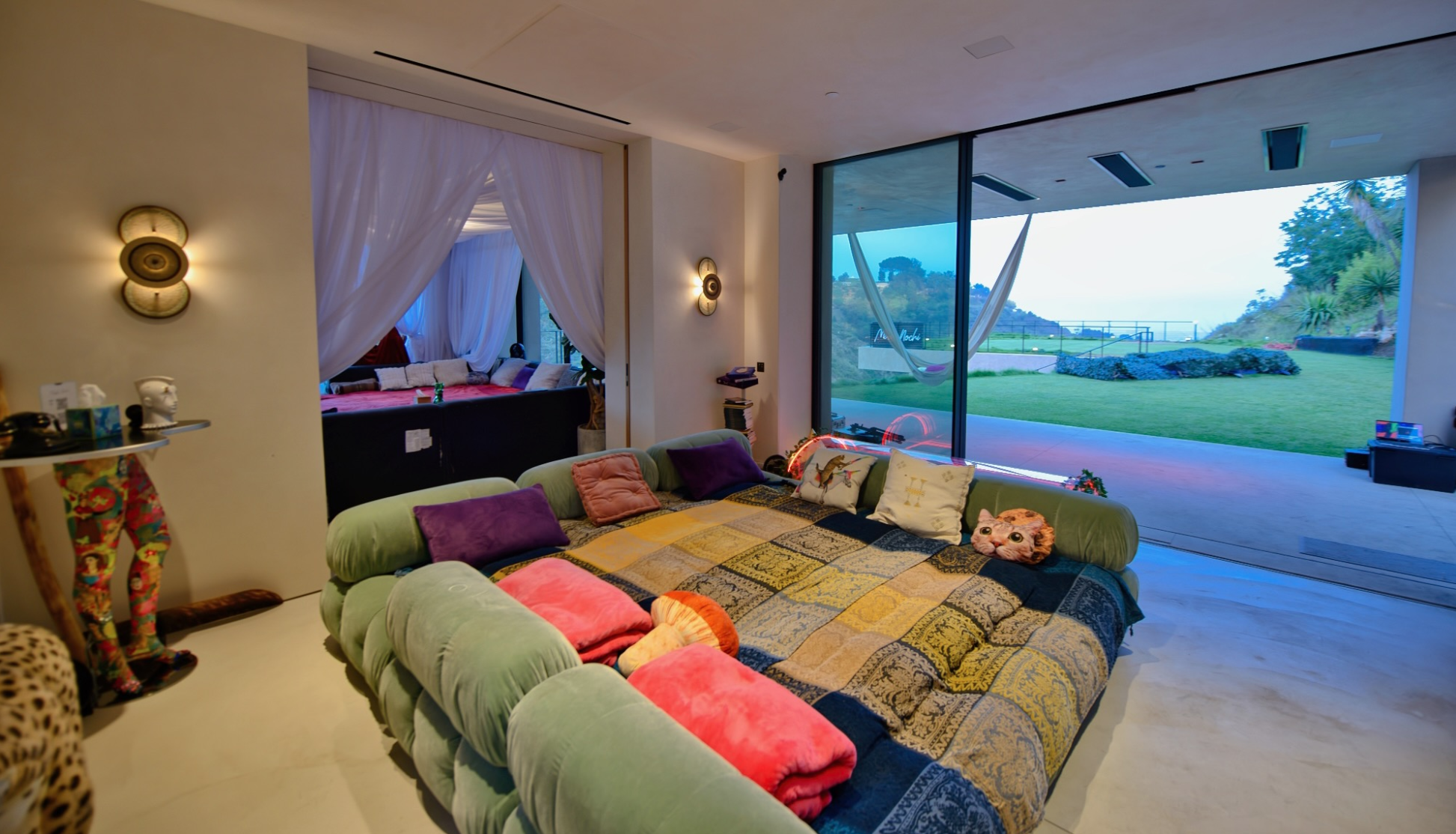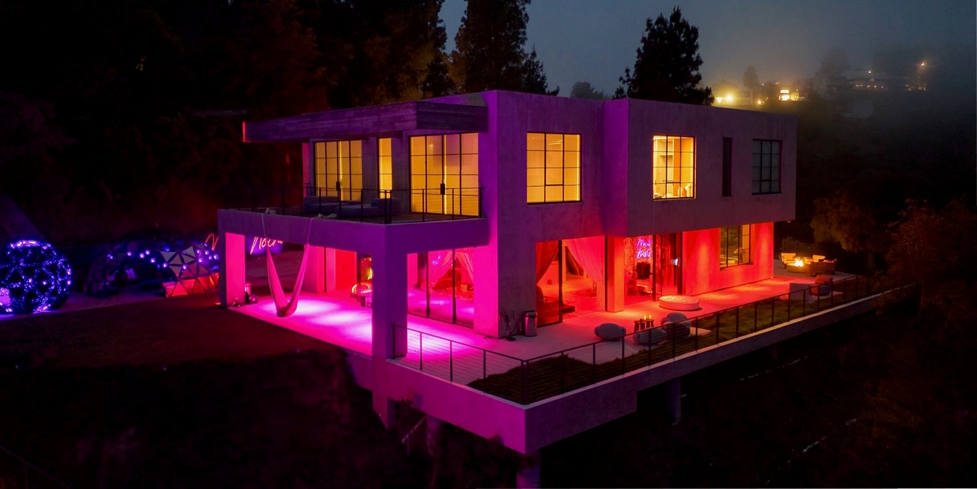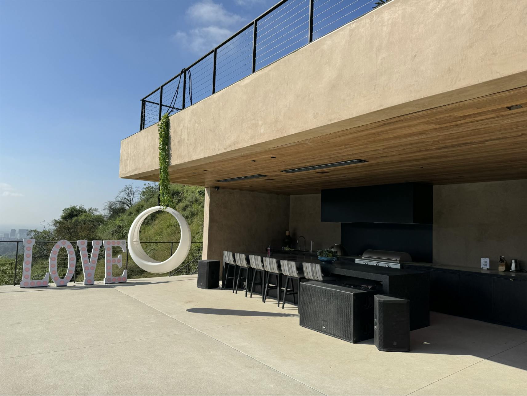 Perched high in the hills and surrounded by lush greenery, this modern architectural masterpiece blends luxury and nature for your special day. Clean lines and minimalist elegance frame panoramic canyon and city views. A manicured lawn, infinity-edge pool, and terraces set the stage for ceremonies, cocktails, and sunset toasts. By night, dramatic lighting transforms the home into a magical backdrop, making your celebration truly unforgettable.