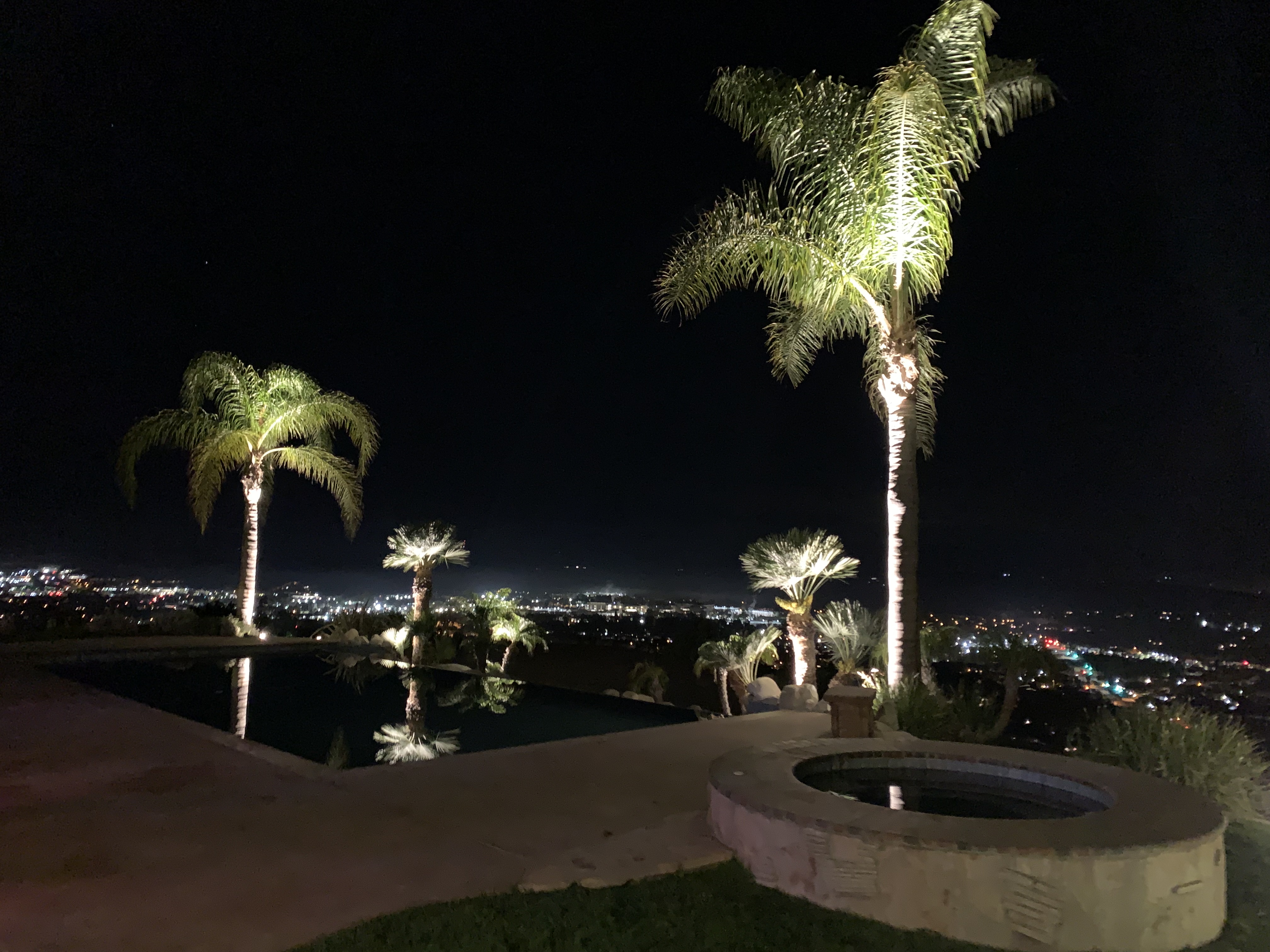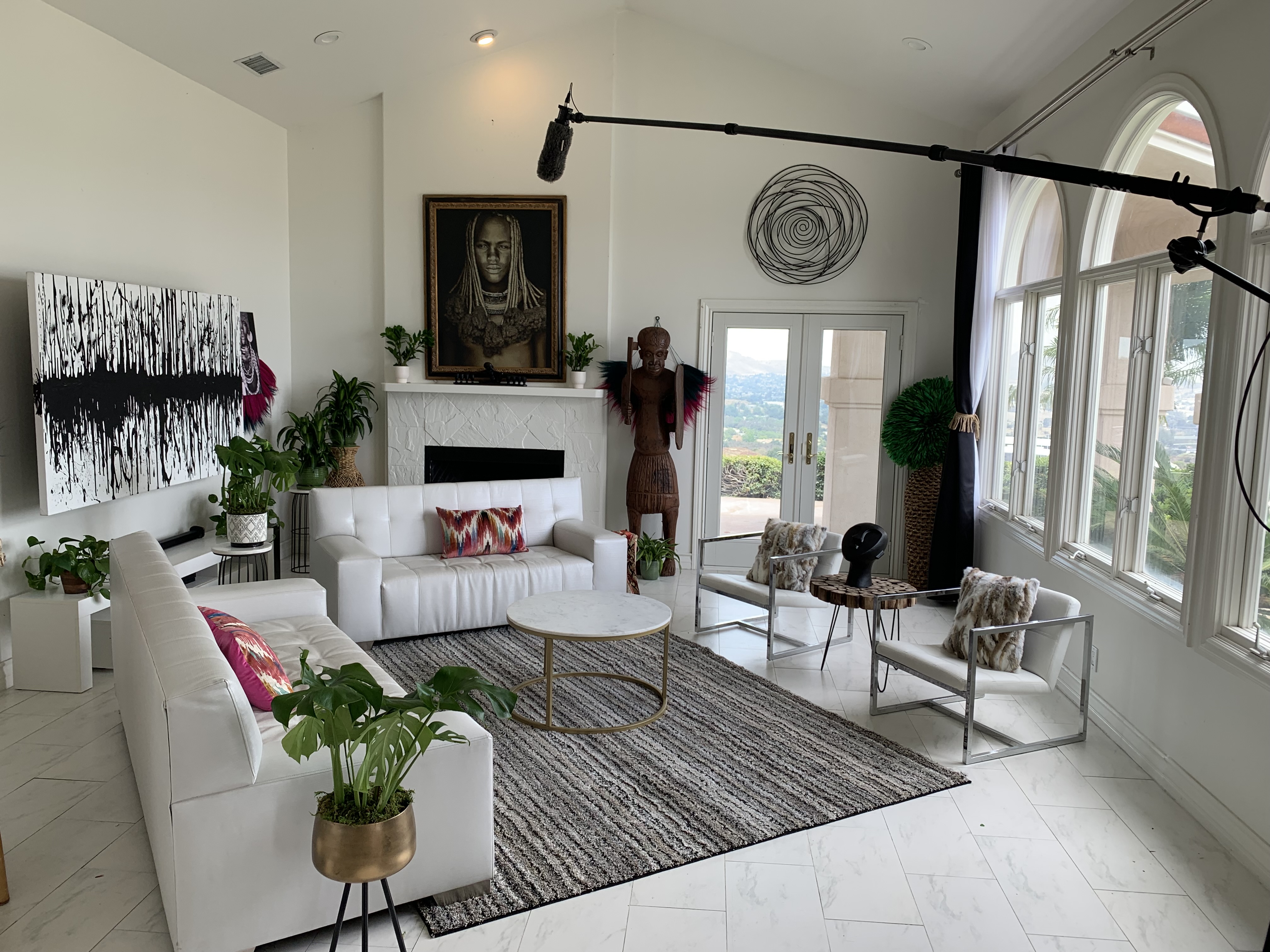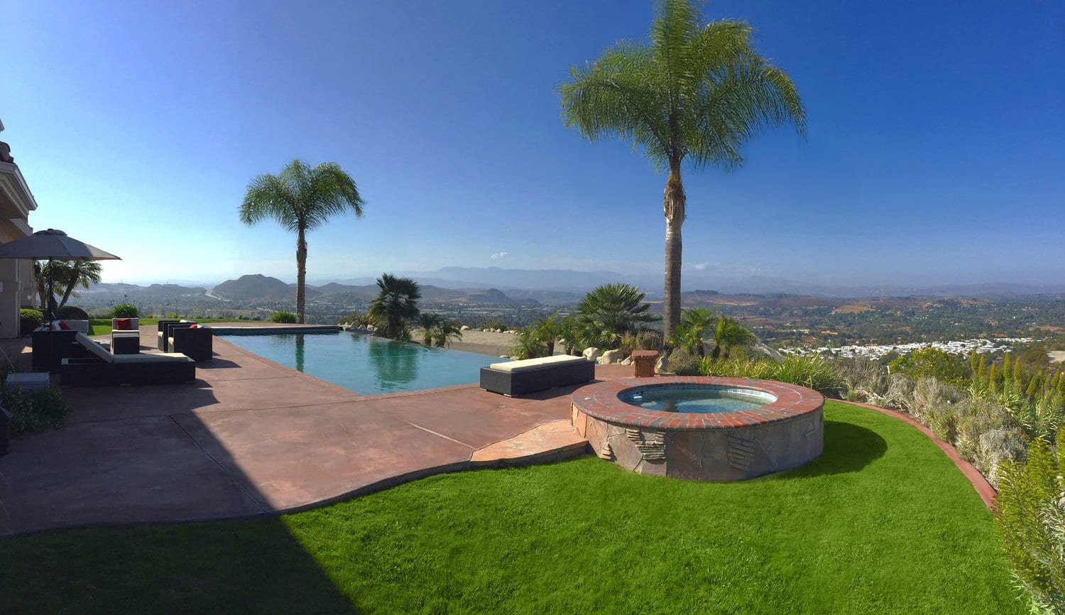 This Mediterranean estate sits on 1.46 acres of terraced hillside with stunning mountain and city views. The grounds feature a lush lawn, manicured landscaping, and an oversized patio with several sitting areas. The interior of the home offers four bedrooms, four bathrooms in multiple living areas, providing plenty of areas to shoot or stage.