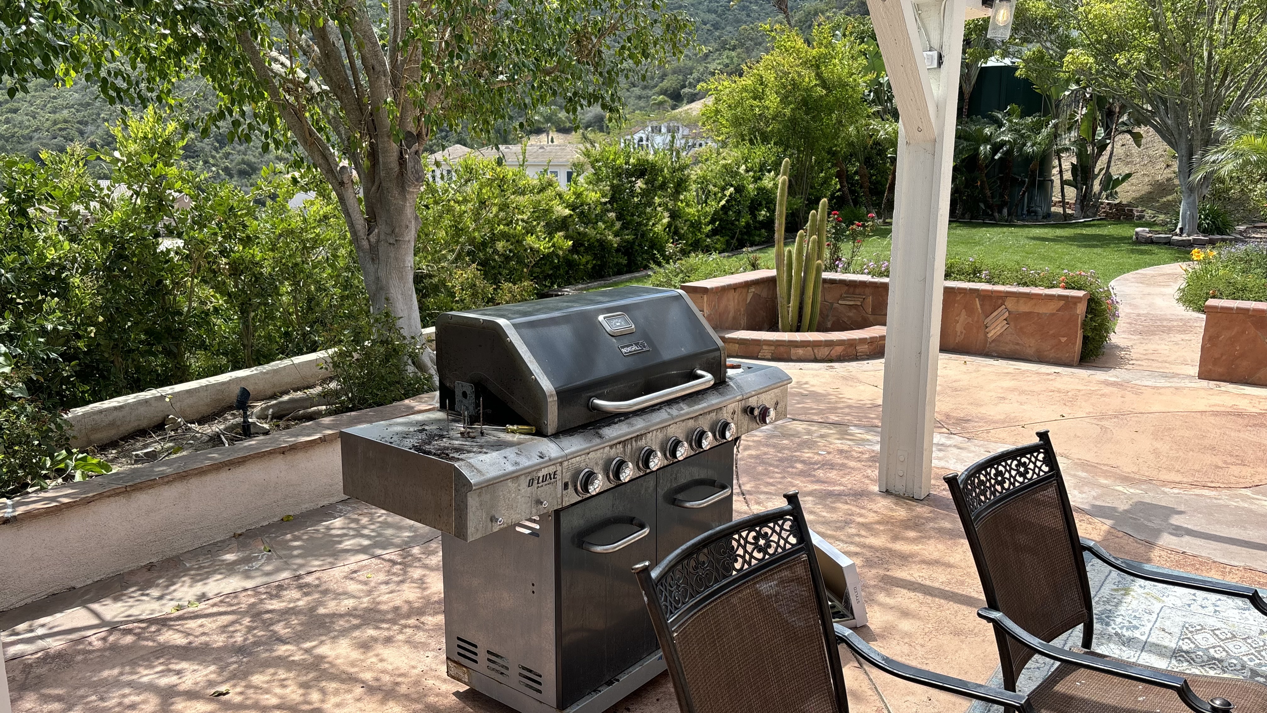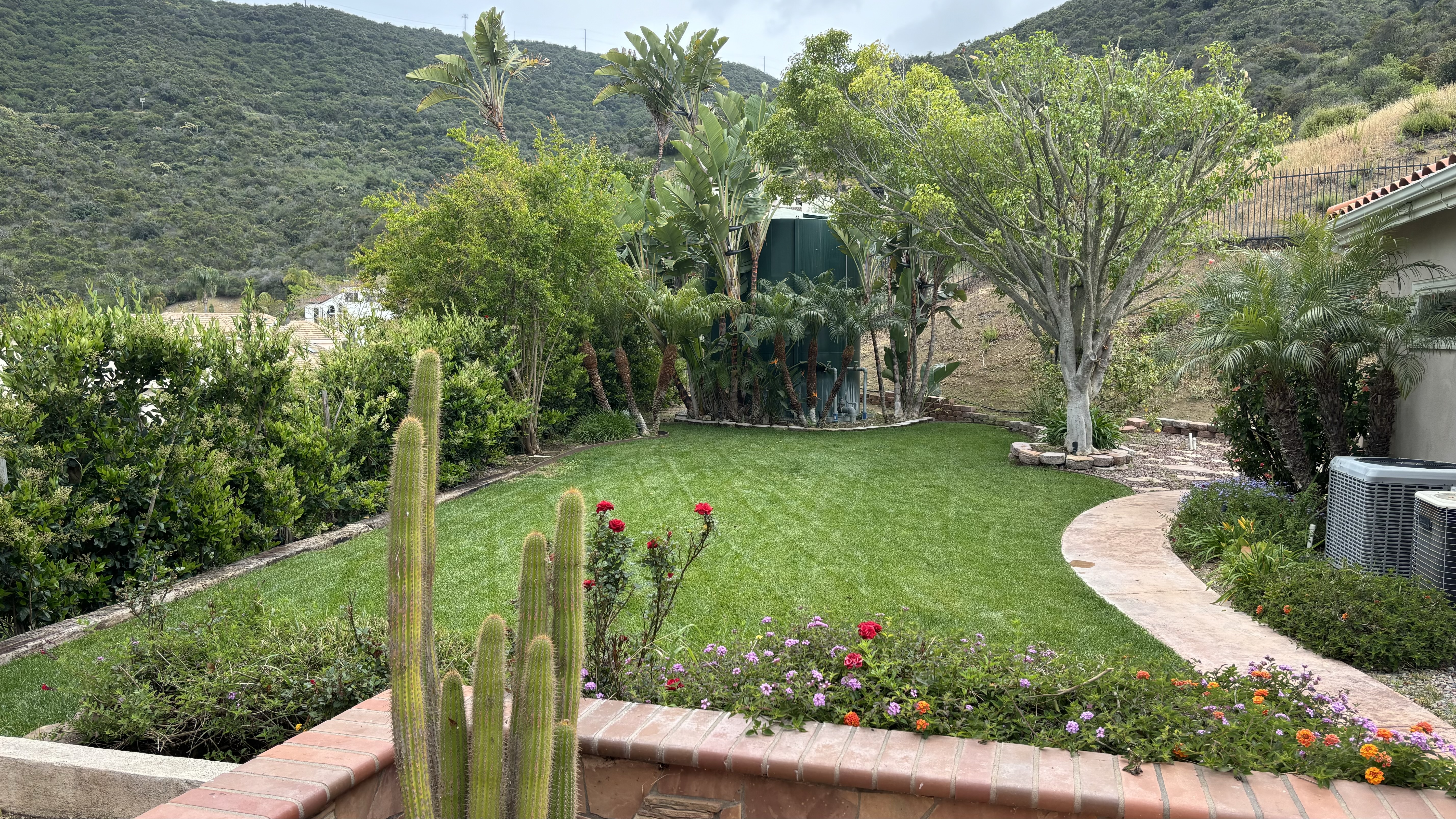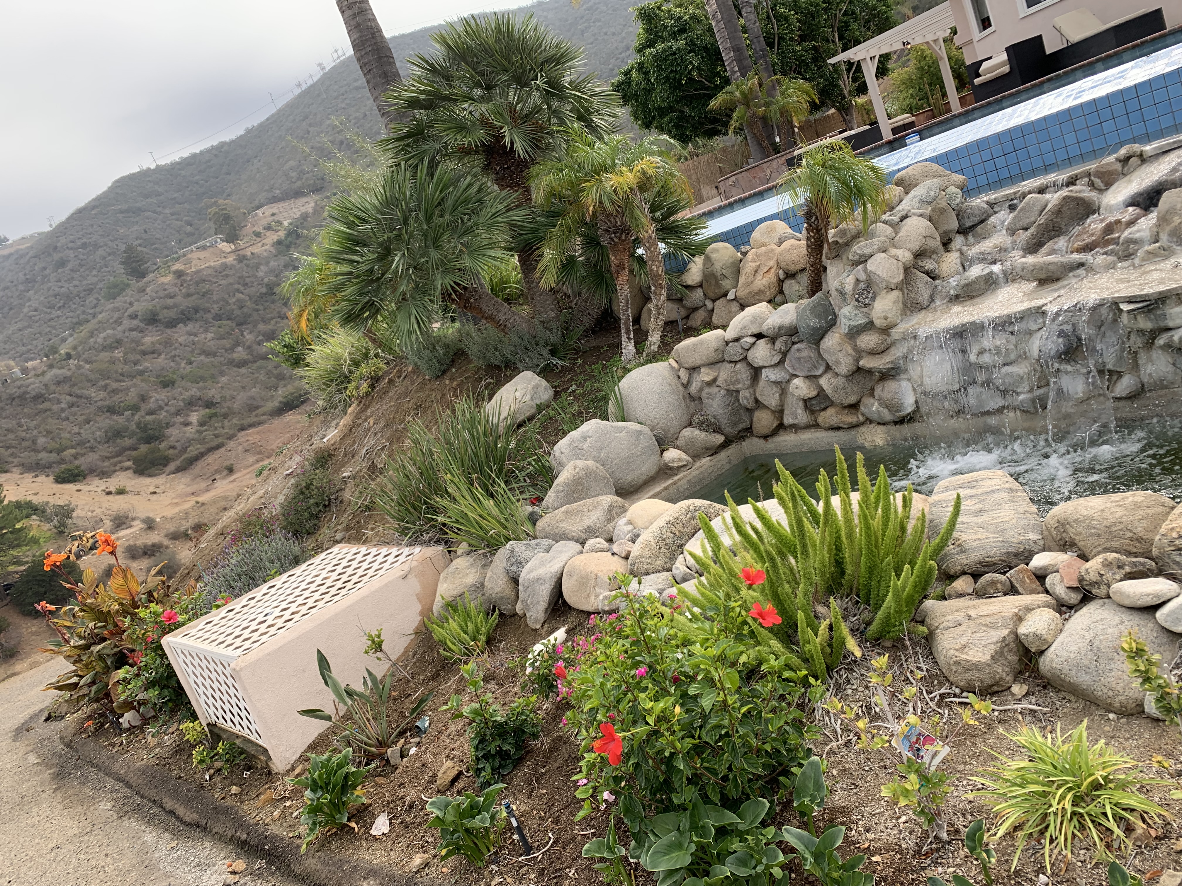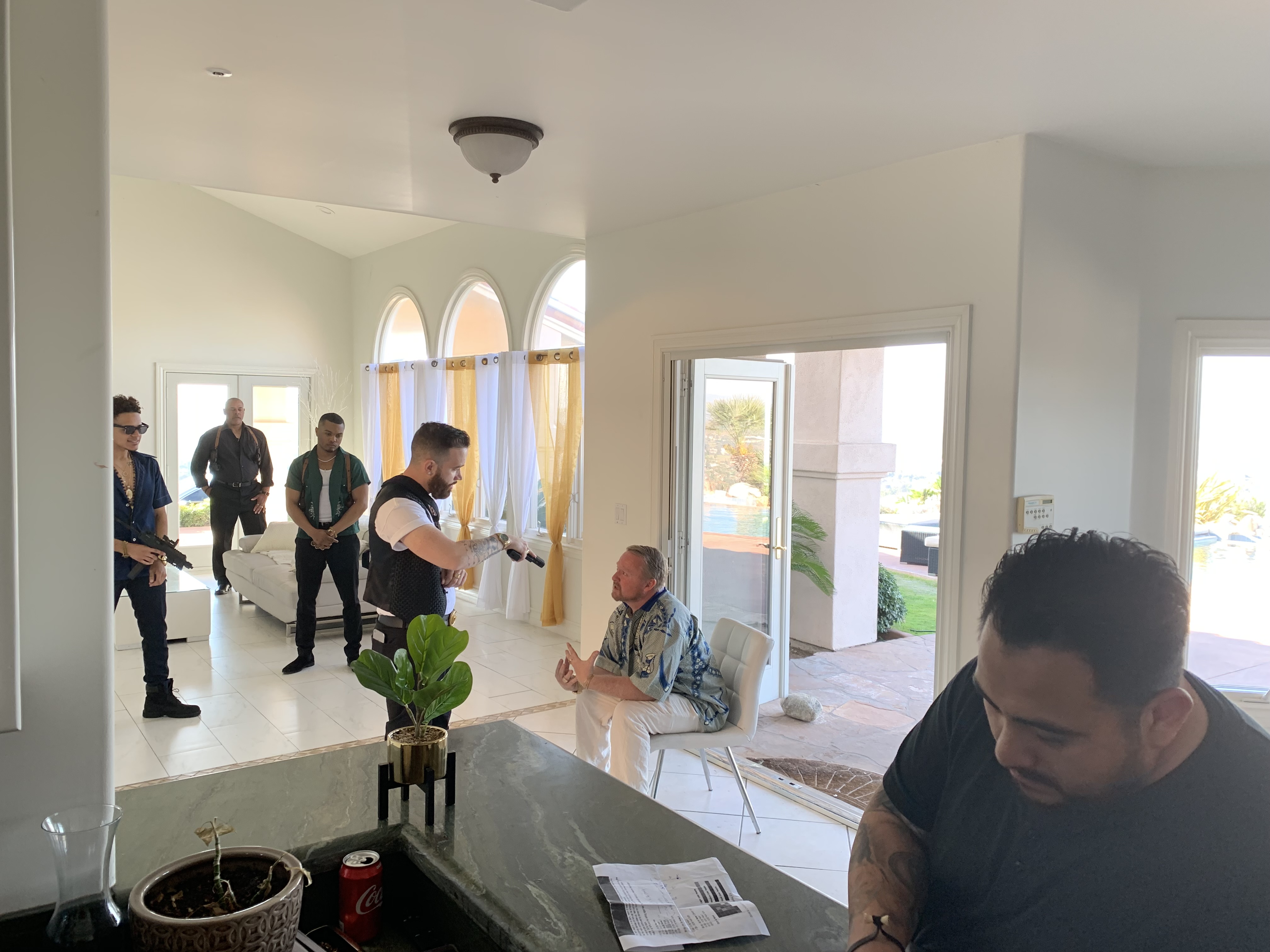 This Mediterranean estate sits on 1.46 acres of terraced hillside with stunning mountain and city views. The grounds feature a lush lawn, manicured landscaping, and an oversized patio with several sitting areas. The interior of the home offers four bedrooms, four bathrooms in multiple living areas, providing plenty of areas to shoot or stage.