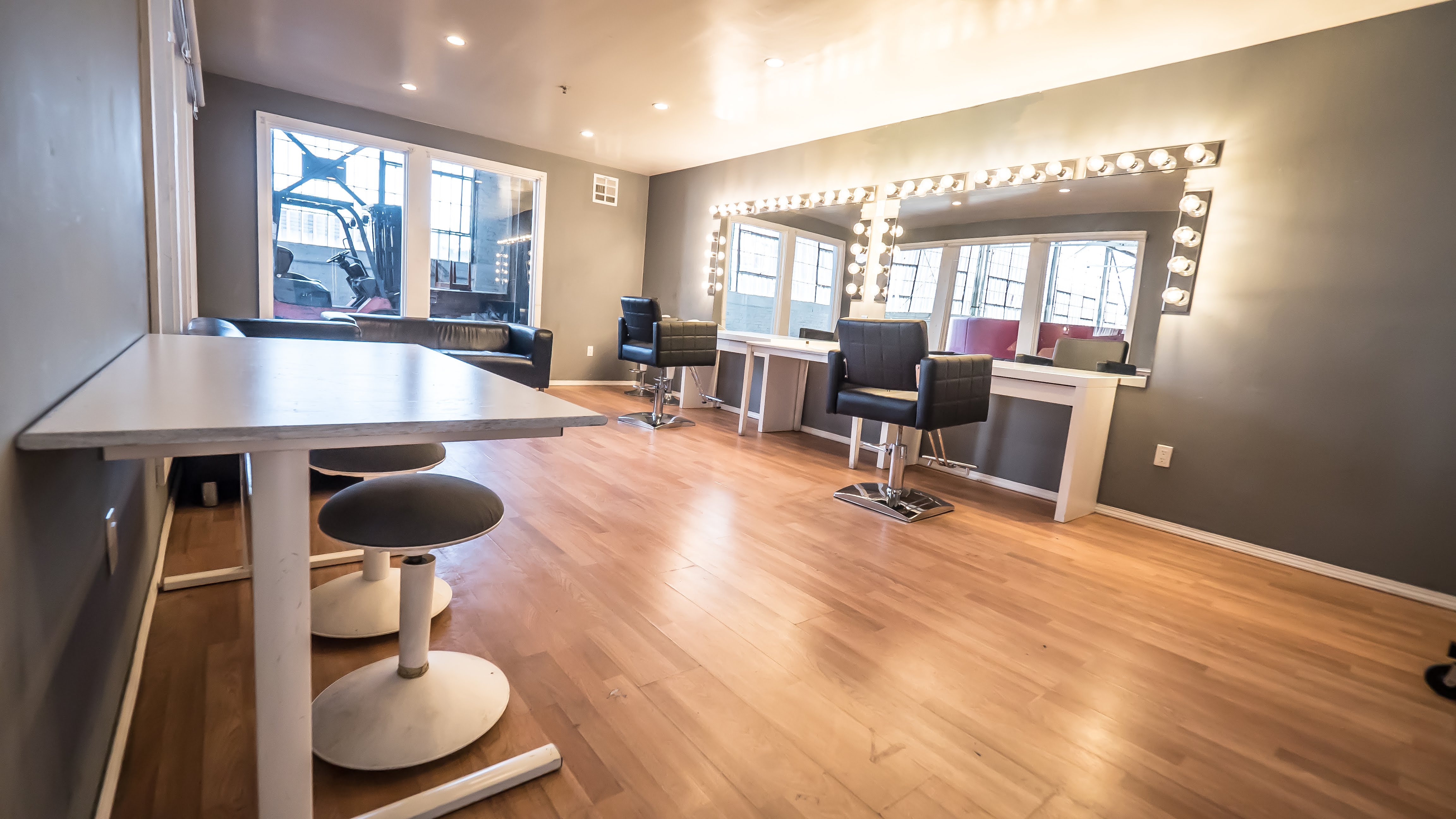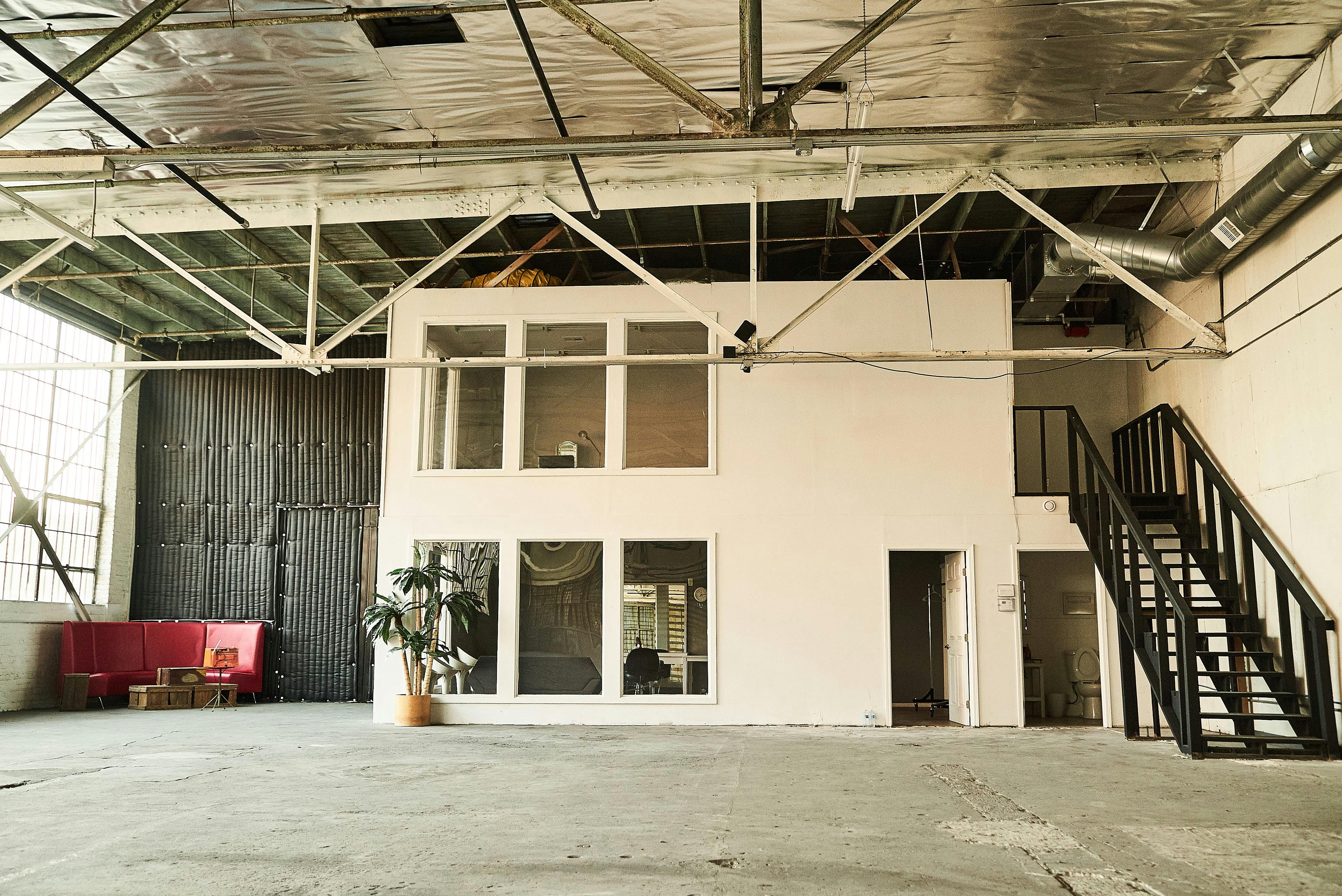 A large unobstructed open space that receives natural light throughout the day, the H2O Stage provides a beautiful creative space for your next film, photo, music video shoot or special event. Whether it’s the white brick; Concrete Walls, wall-to-wall, industrial windows; or a large, rustic barn door, the variety of textures allow for a range of aesthetics to be achieved within a single space. The stage is equipped with a 13' grid making it easy to rig lights