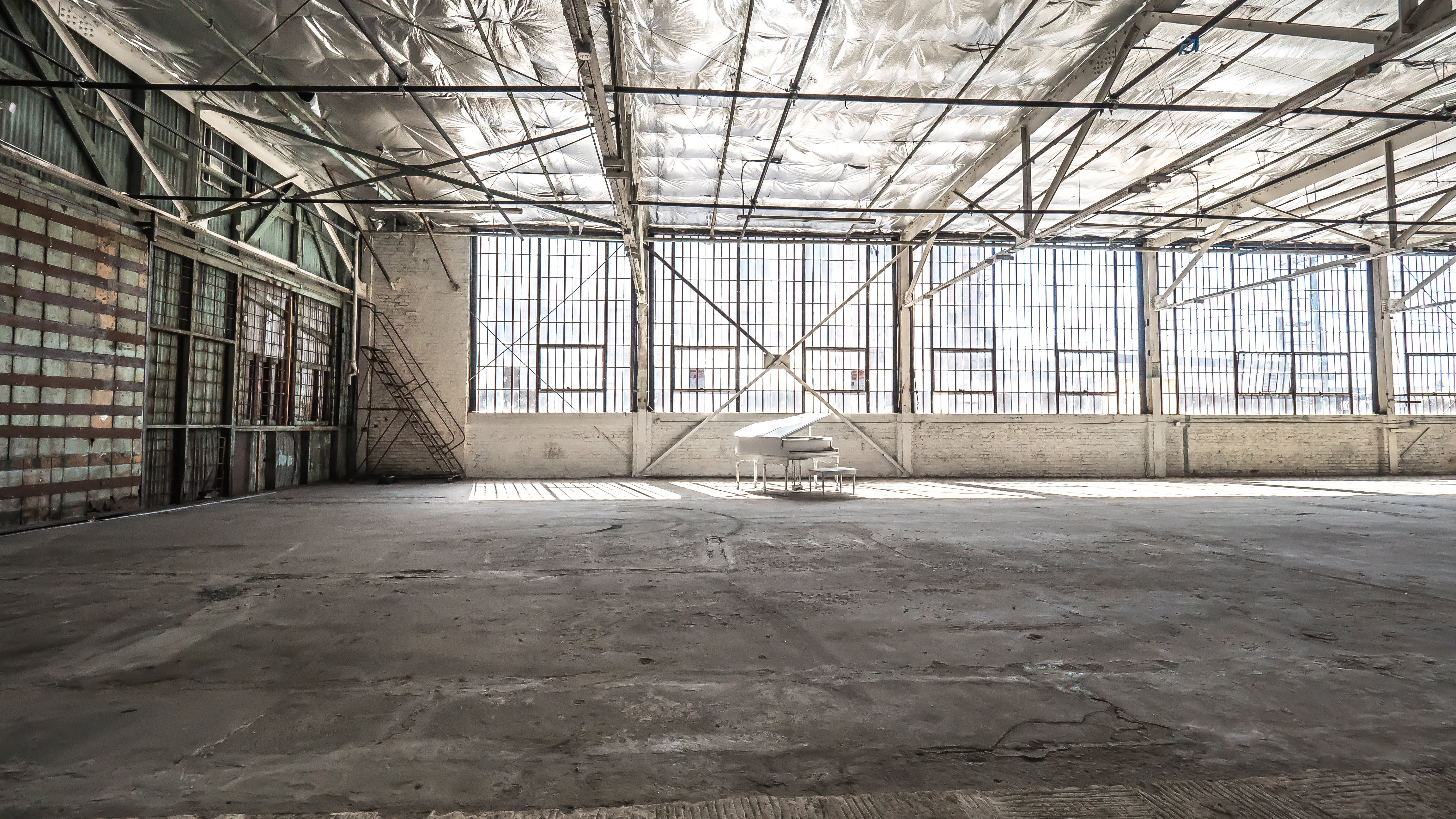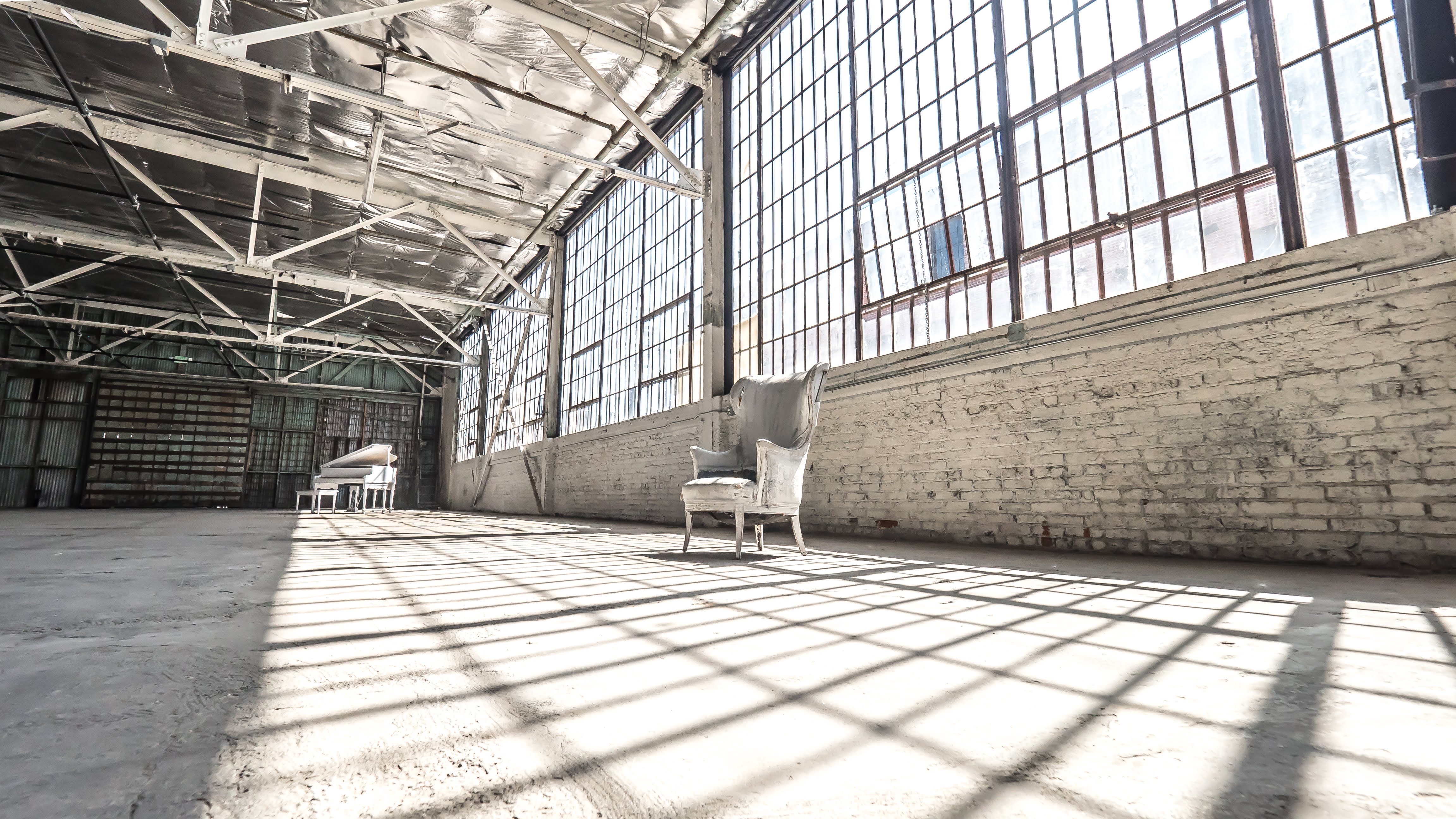 The H20 Stage is a 7,000 sqft unobstructed studio featuring white brick, concrete floors, expansive industrial windows, and great natural light. The space offers, great depth and symmetry, making it a perfect location to shoot interviews as well!