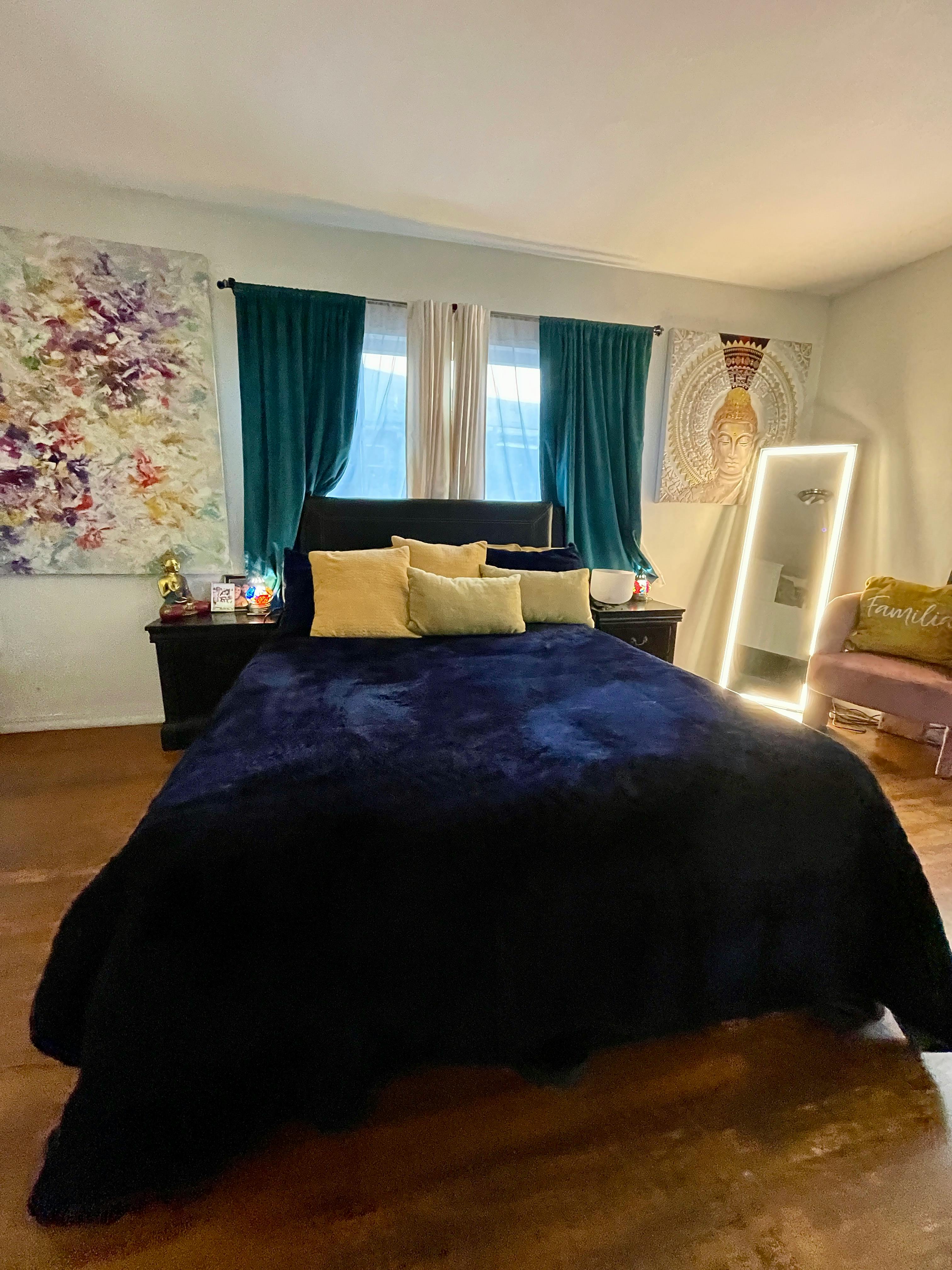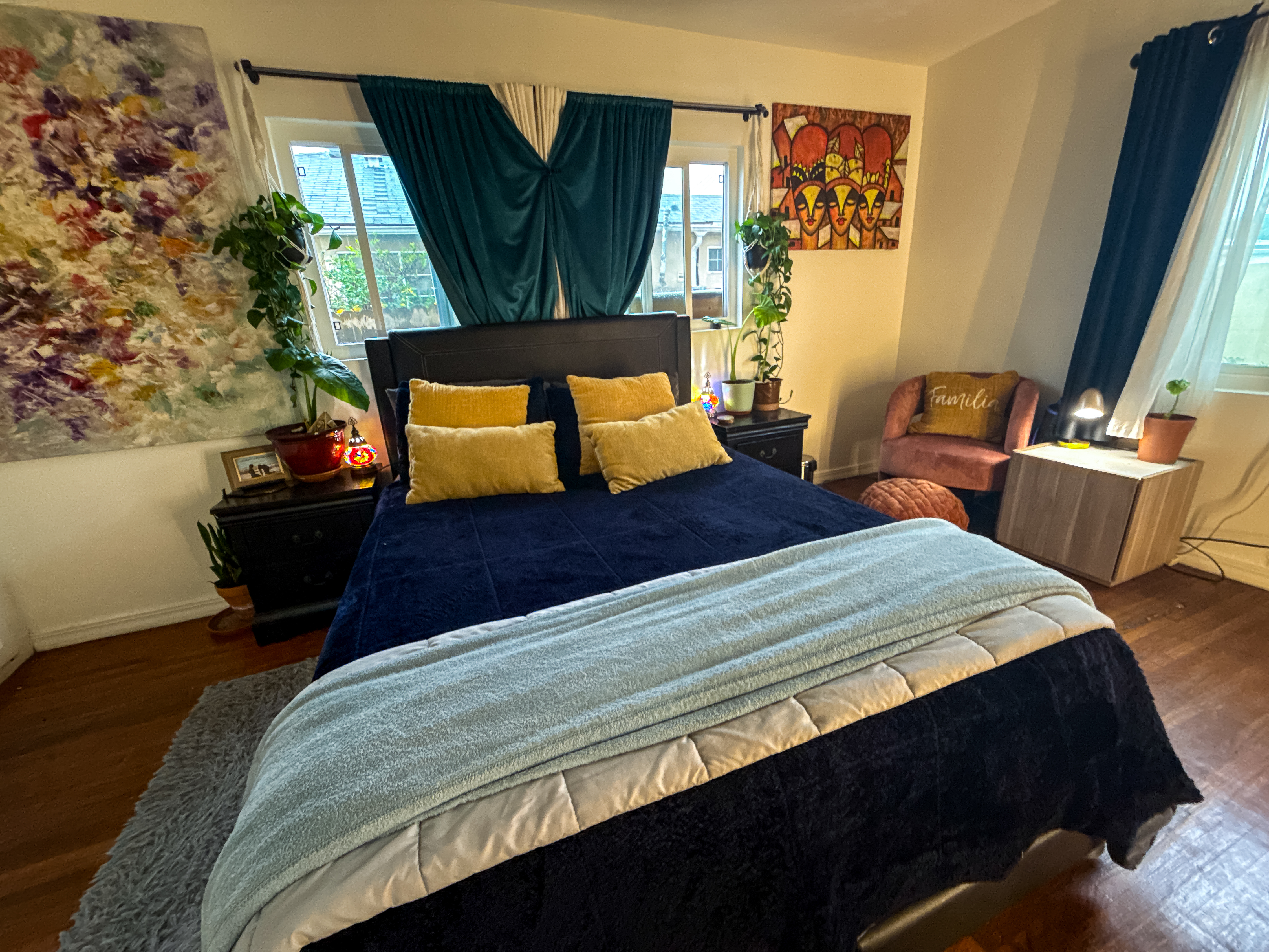 Located in Beverlywood, this 750 sqft apartment is eclectic and artsy, and offers multiple living/work areas, a large feminine bedroom and outdoor patio space that is perfect for staging extra gear.