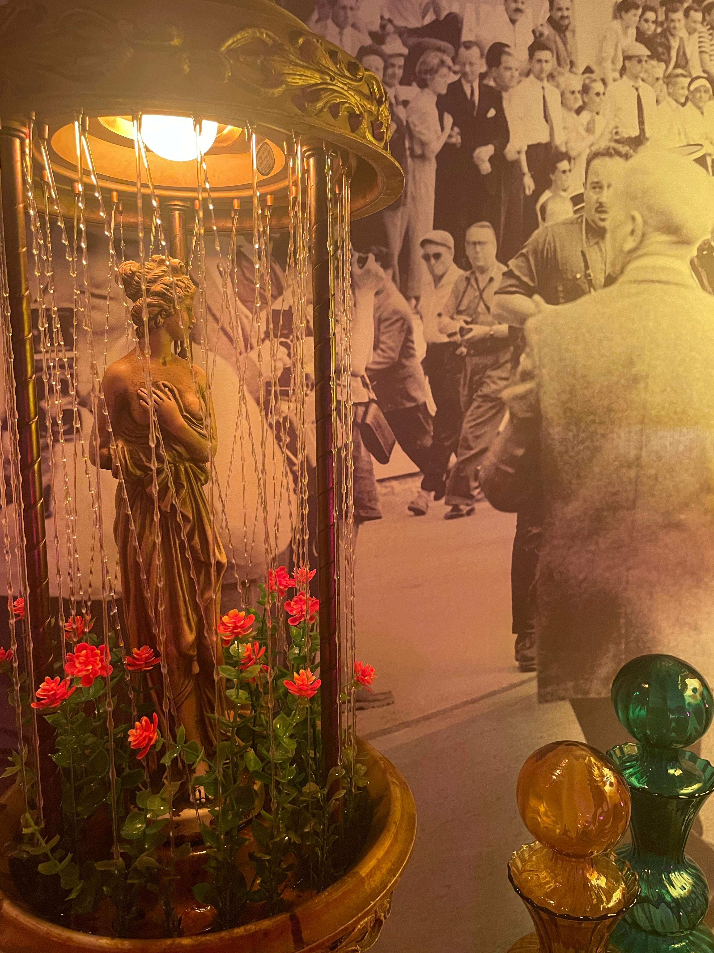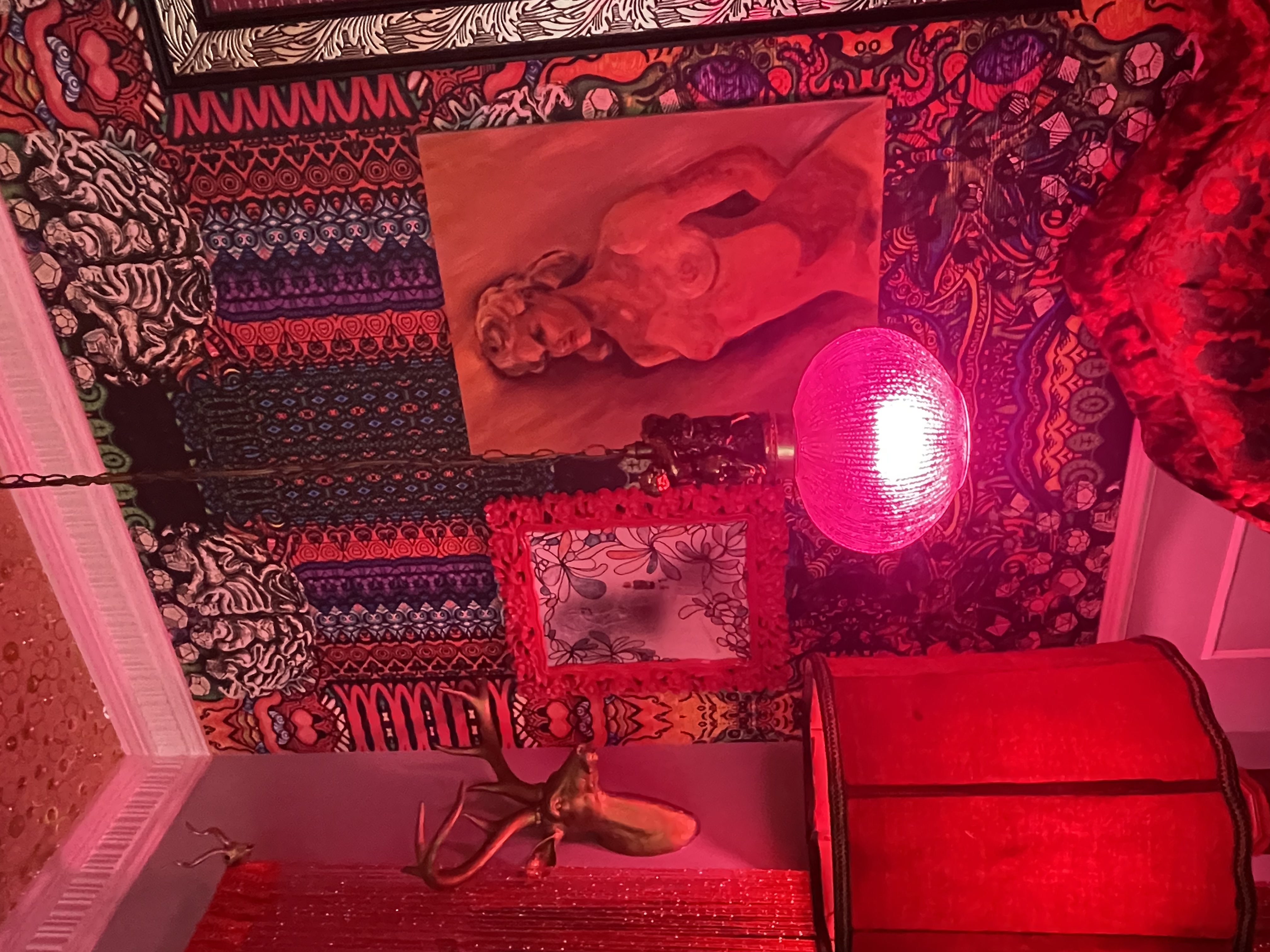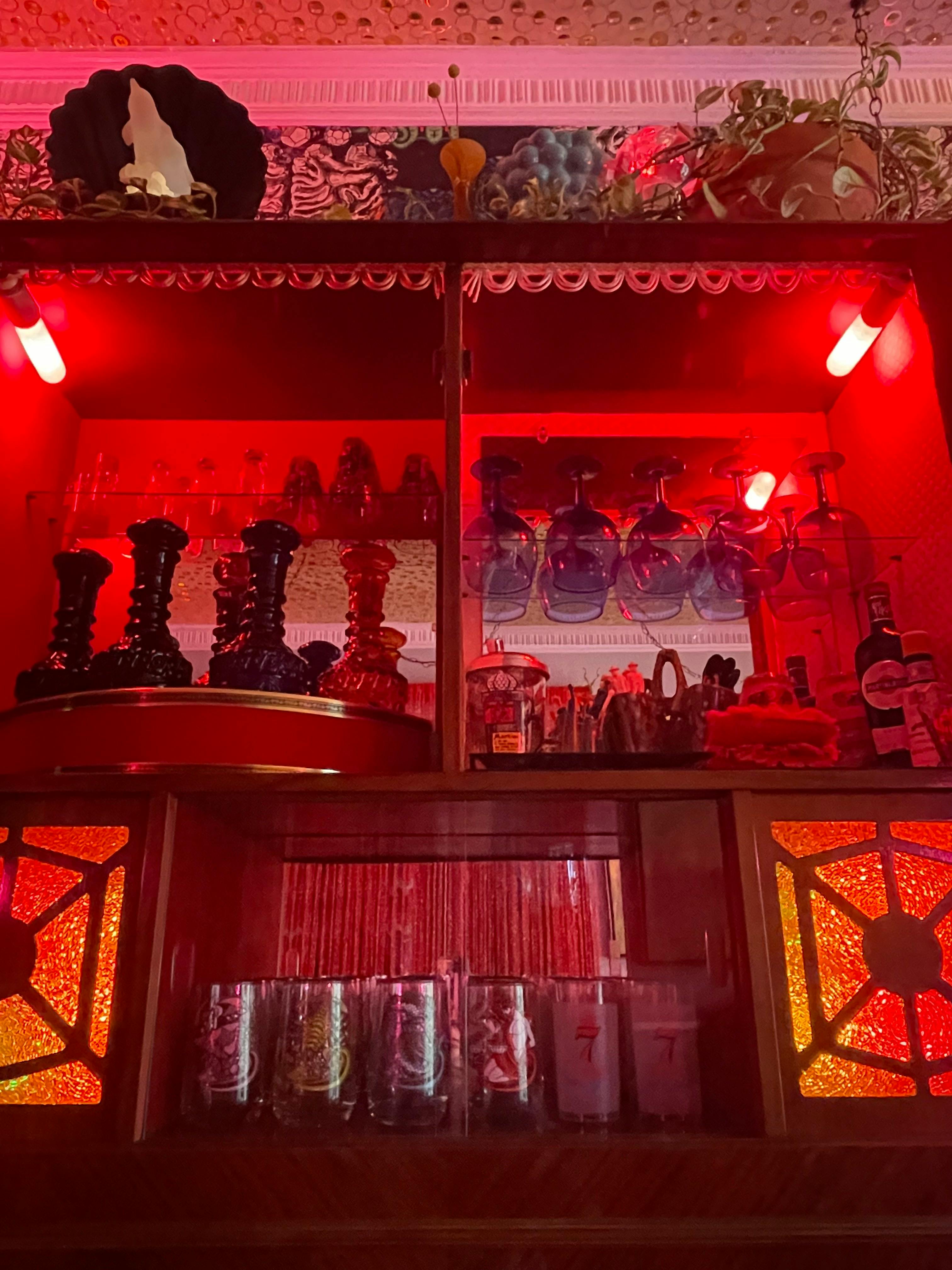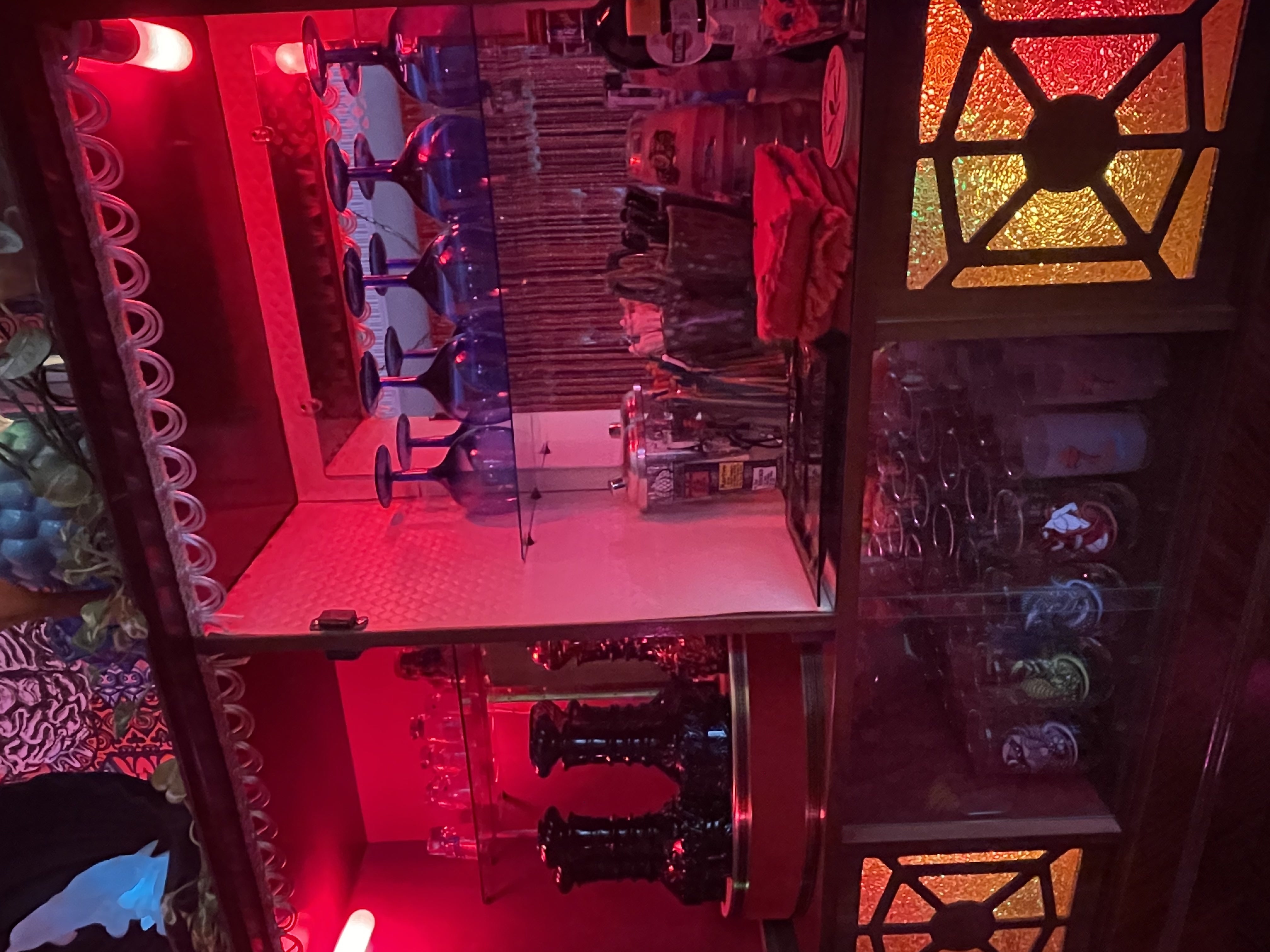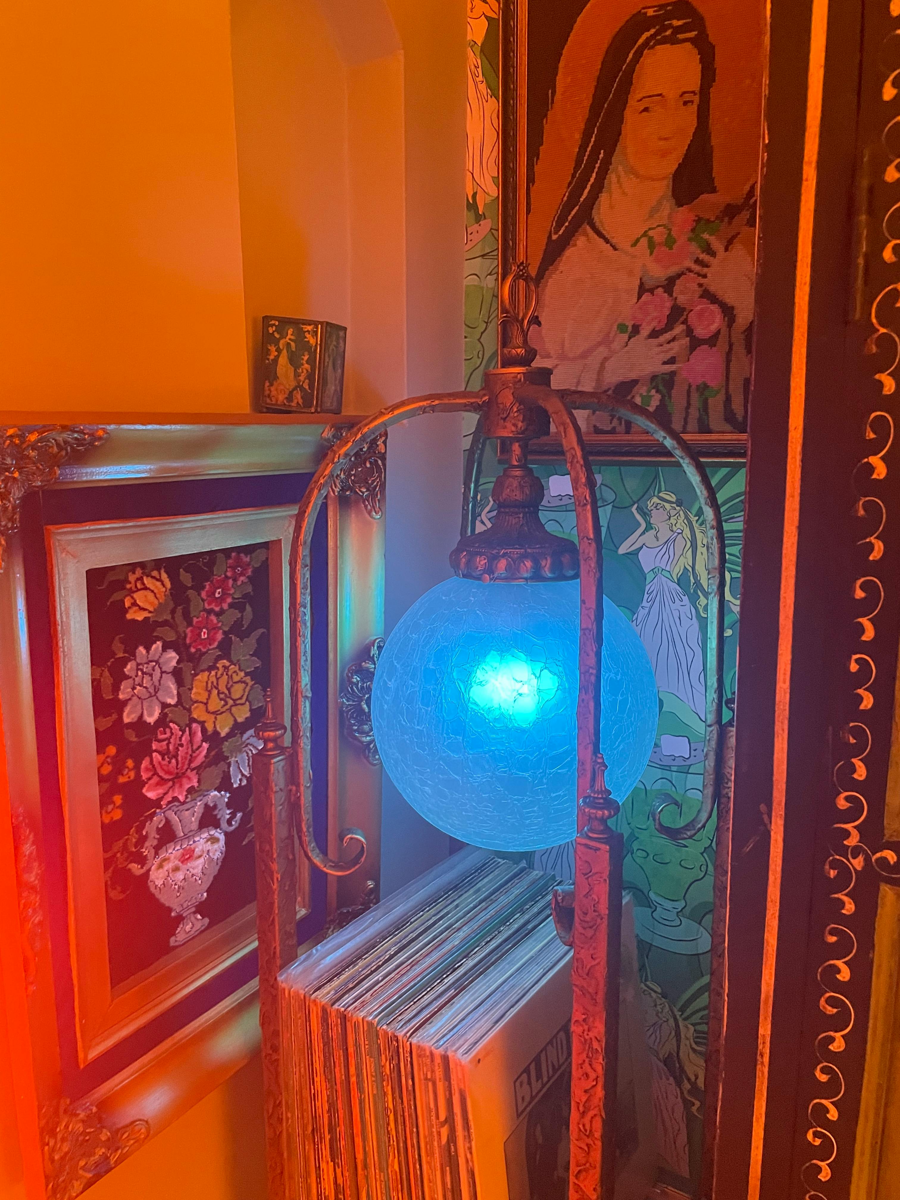 Take a trip to a far-out scene, a total mindblower where the vibes are cool and the karma's clean. A mellow den & way outta sight living space filled with 60s, 70s, icons of the Space Age, MCM, Hollywood Regency, Summer of Love vintage treasures. Photo ops appear at every angle, color-filled with oversized couch sets, lucite, fantasy lighting, erotic art, shagadelic rugs, stereo-bar stocked with a turntable, 8-track player, faux fireplace, blow-up pillows, disco ceiling, glitter & neon vibes.