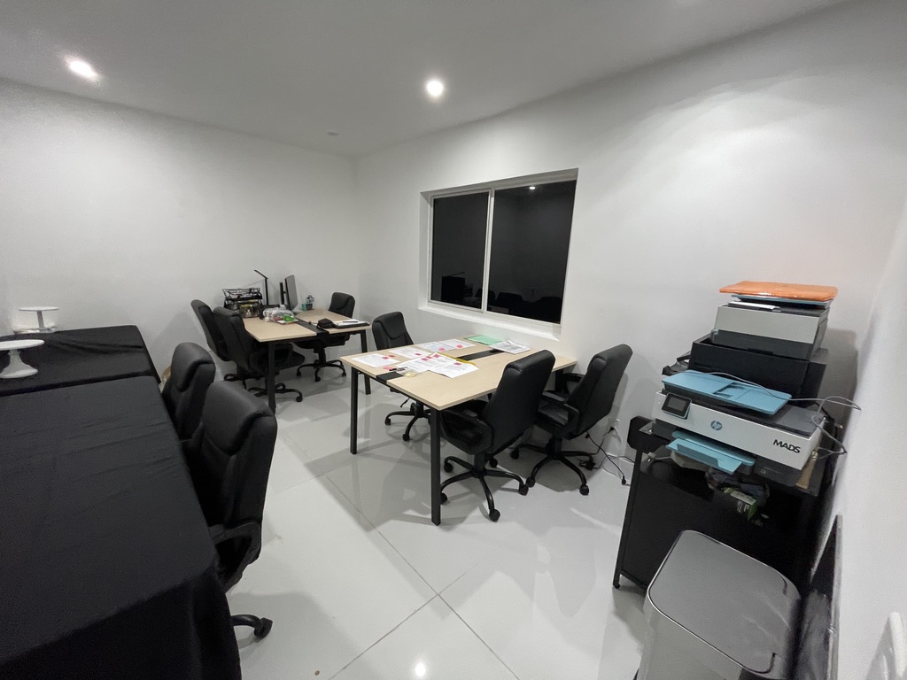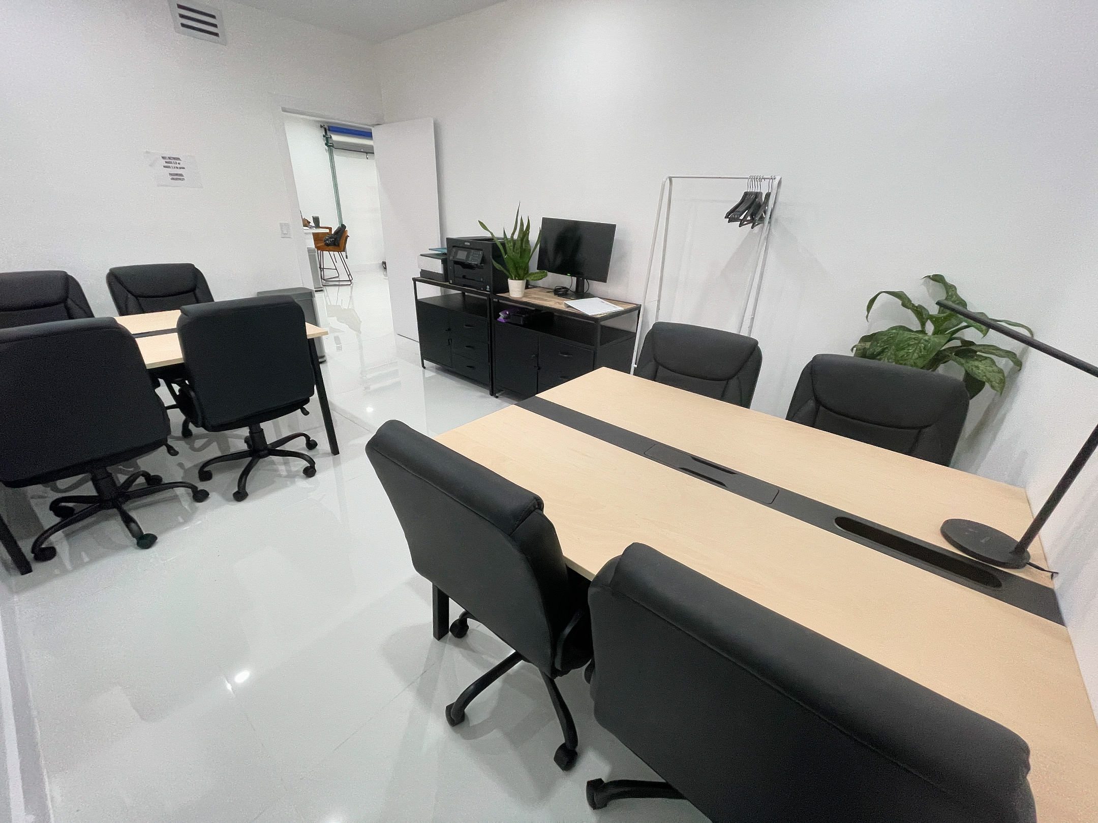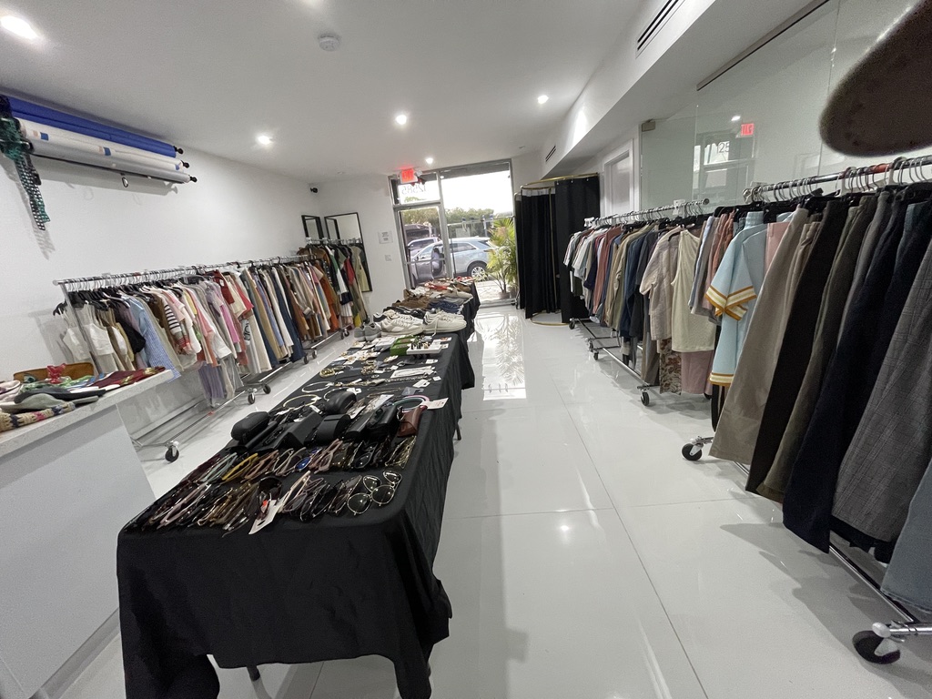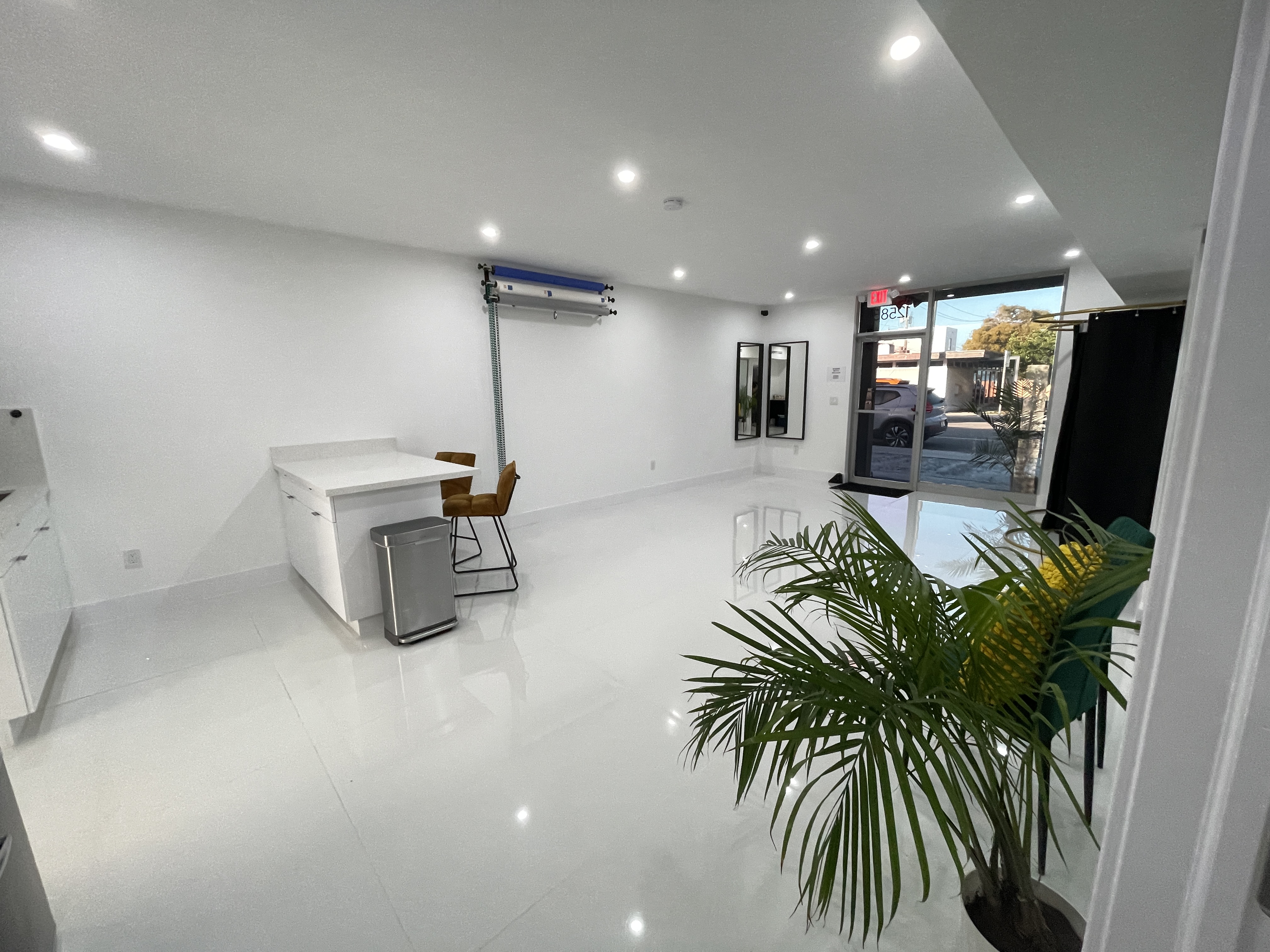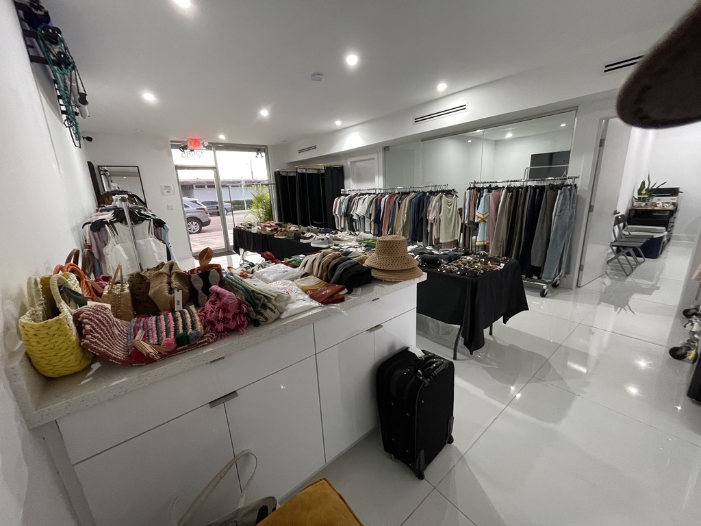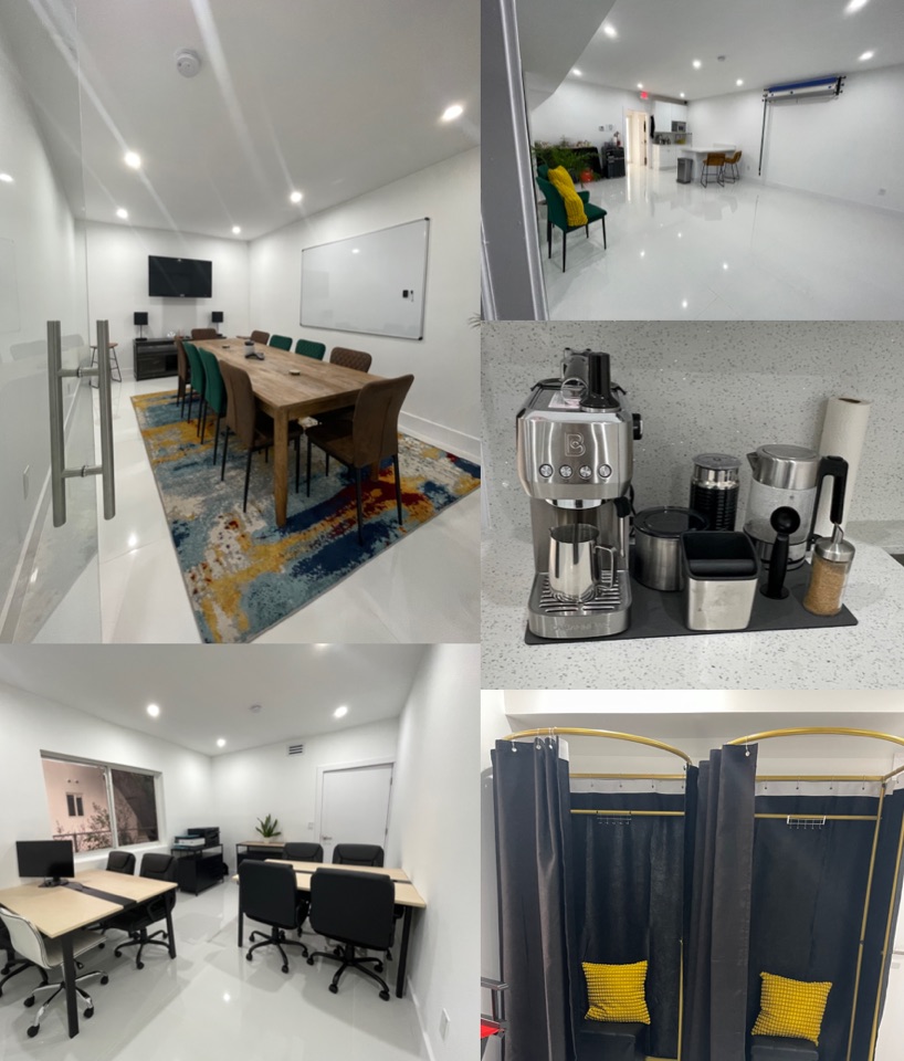 Located in central Miami, with 3 rooms: One large room for any storage/fitting needs, with two changing rooms as well as a kitchenette, then a conference room and another room with comfortable office chairs, tables and printers.