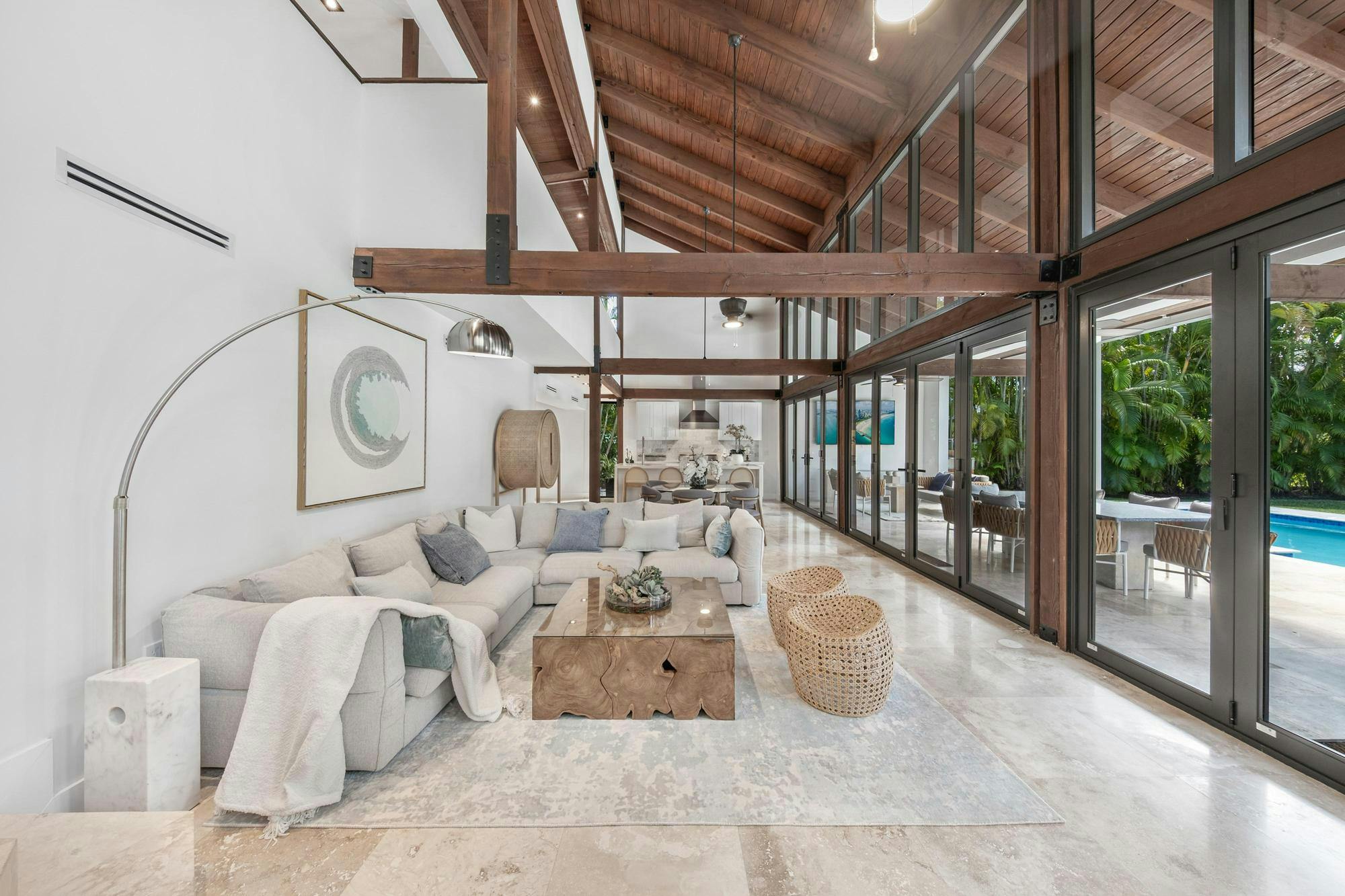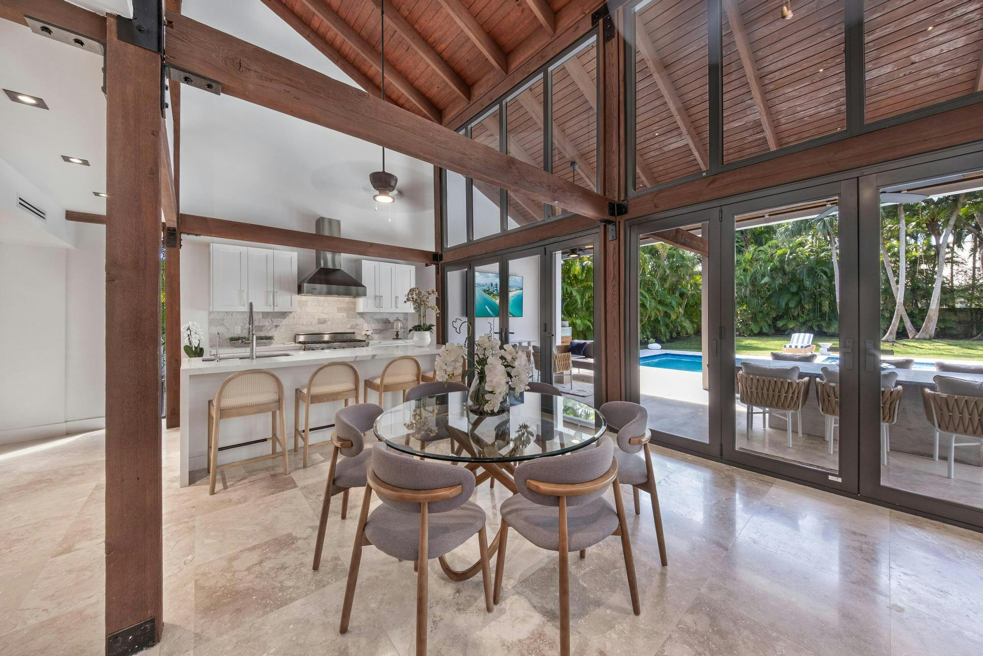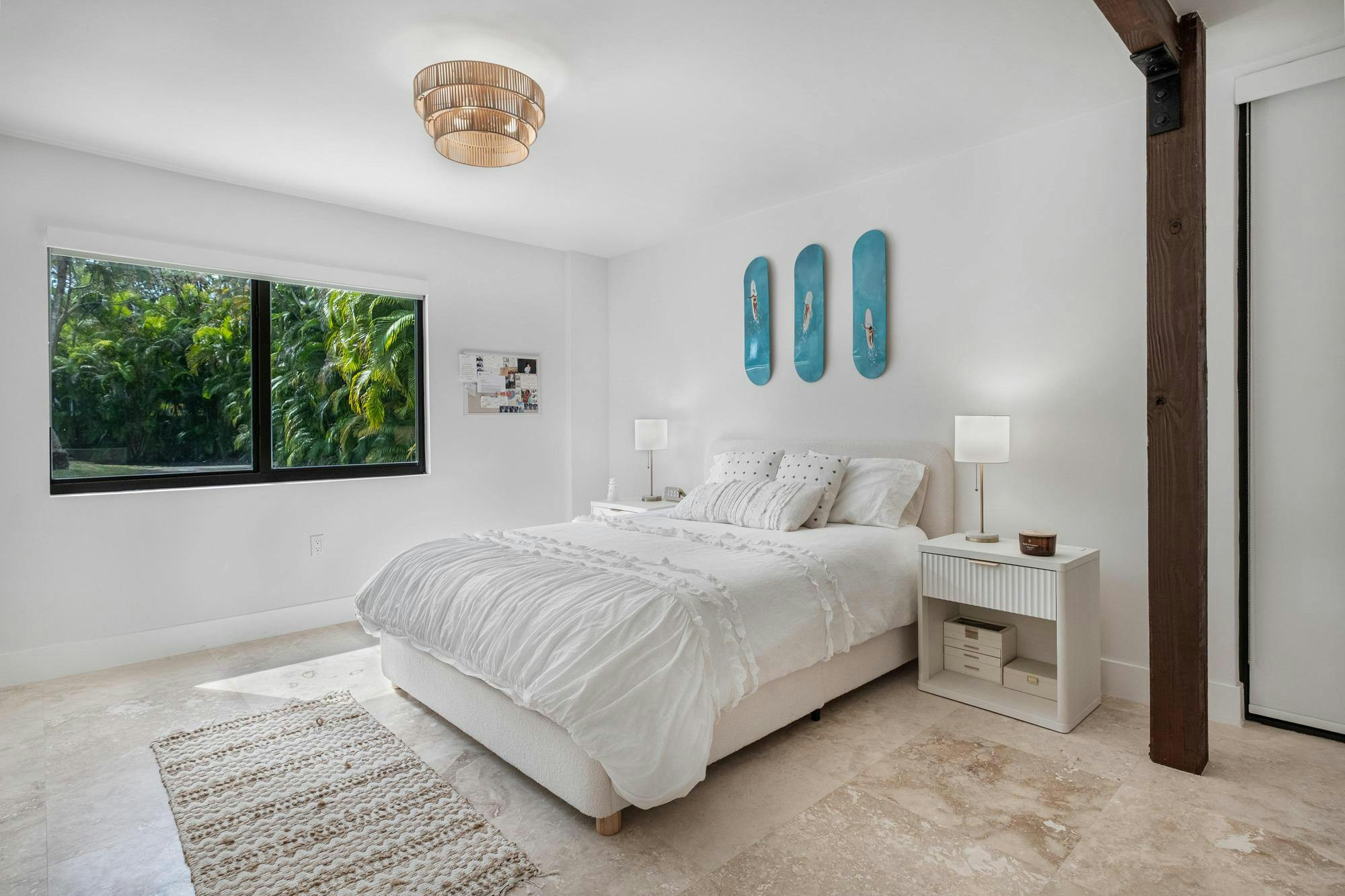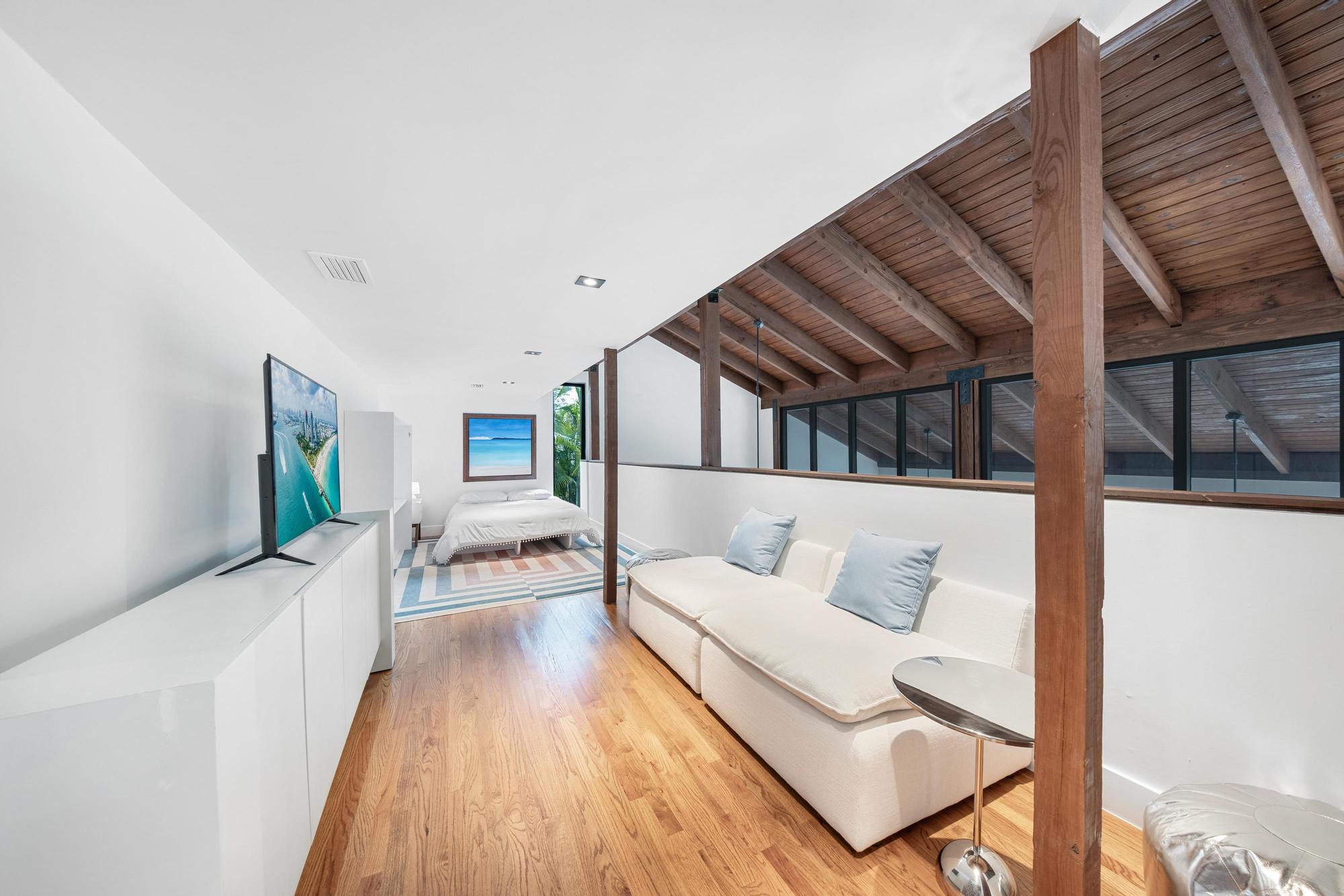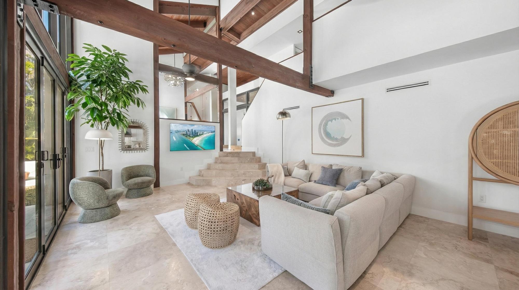 Las Palmas is one of Miami’s most photographable private residences, now available for productions. Set on half an acre of lush tropical landscape on a quiet dead-end street, this mid-century modern home offers privacy, natural light, and seamless indoor-outdoor flow. Soaring ceilings, glass walls, and an open living area overlook a resort-style pool framed by palms. With three bedrooms, a loft, den, and a spa-like primary suite, it’s a serene, cinematic retreat for modern productions.