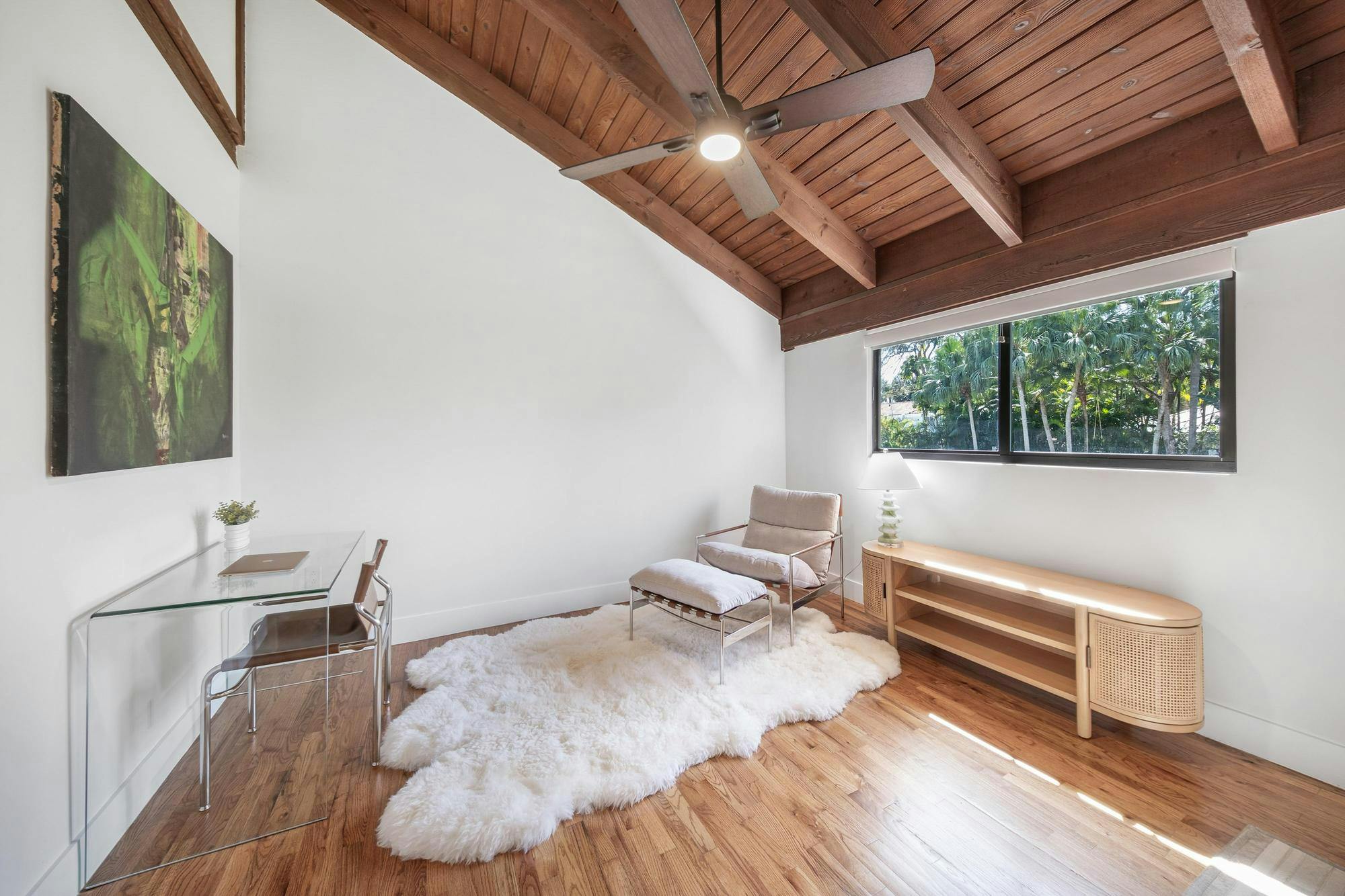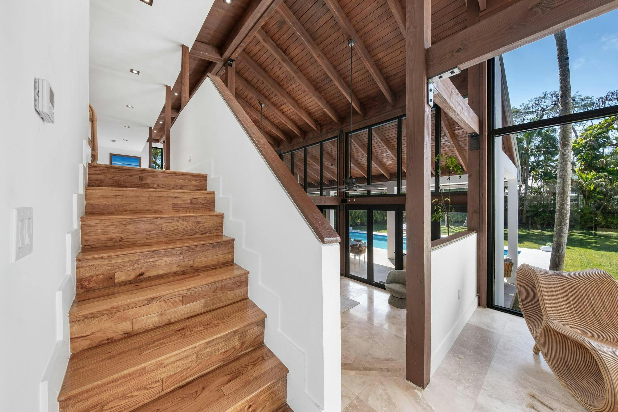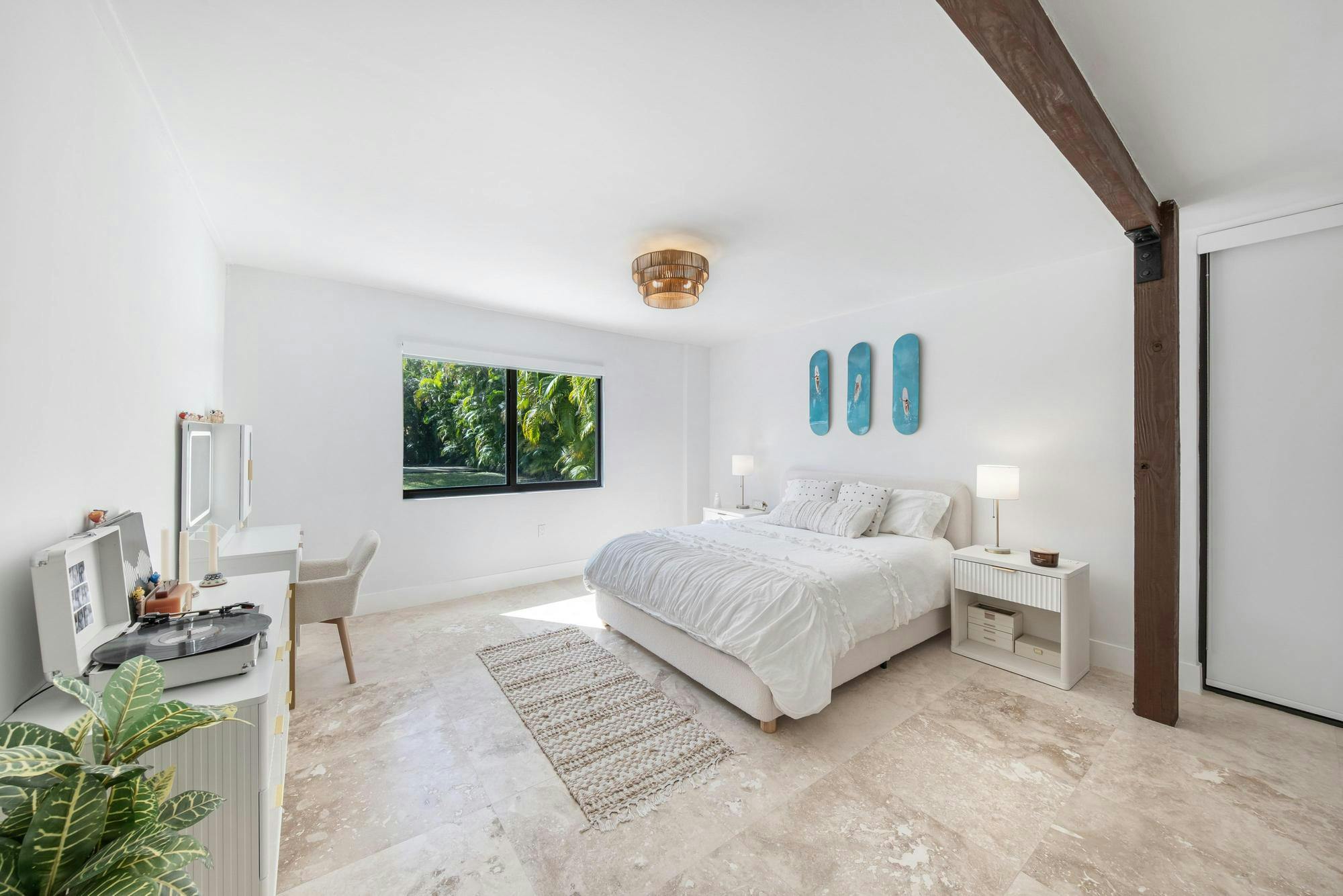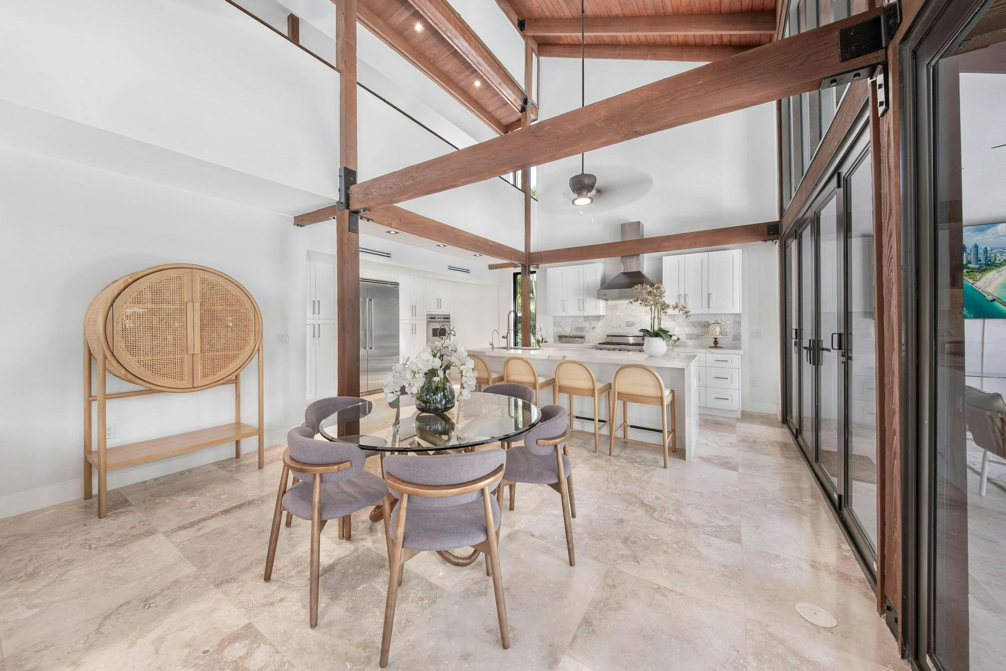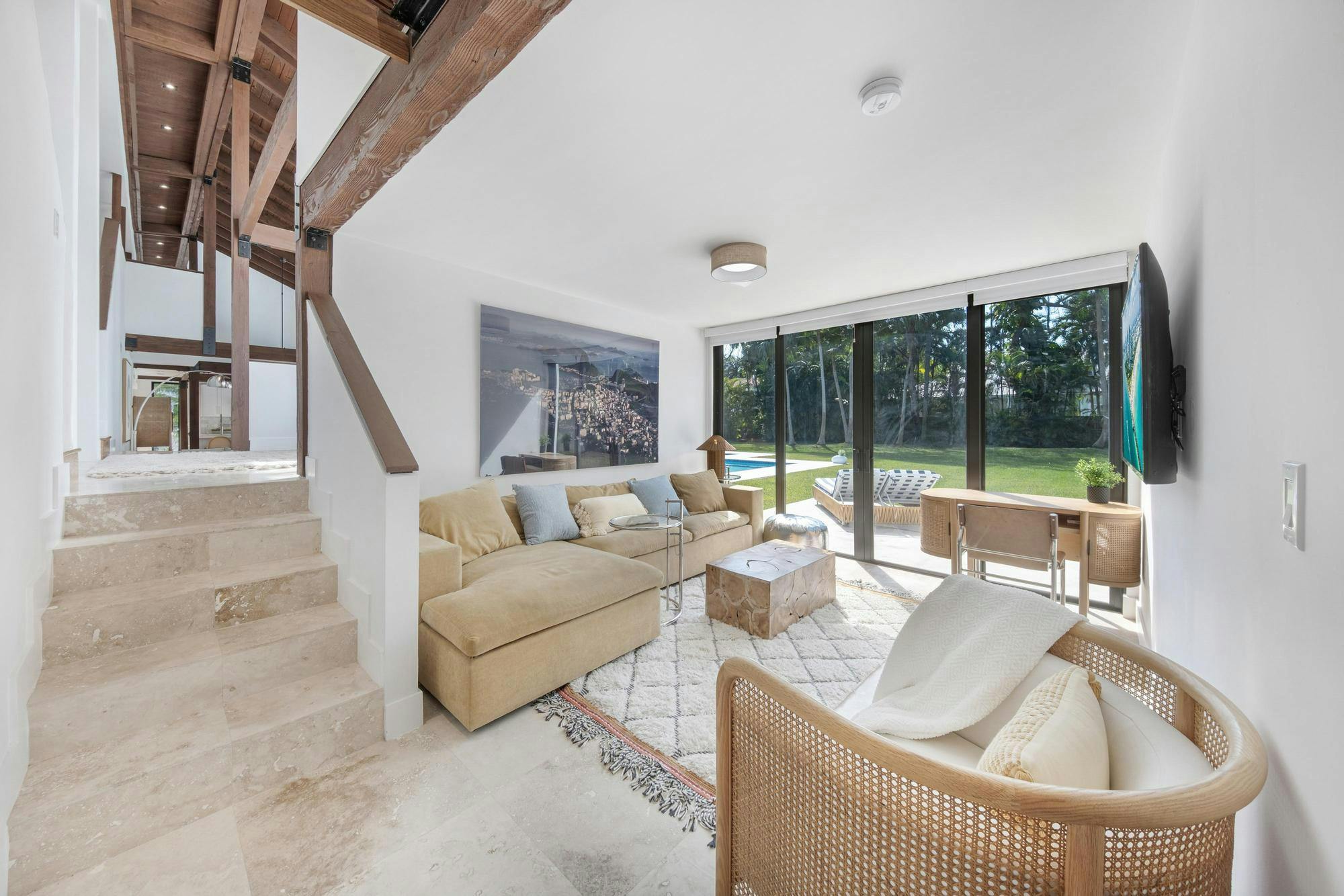 Las Palmas is one of Miami’s most photographable private residences, now available for productions. Set on half an acre of lush tropical landscape on a quiet dead-end street, this mid-century modern home offers privacy, natural light, and seamless indoor-outdoor flow. Soaring ceilings, glass walls, and an open living area overlook a resort-style pool framed by palms. With three bedrooms, a loft, den, and a spa-like primary suite, it’s a serene, cinematic retreat for modern productions.