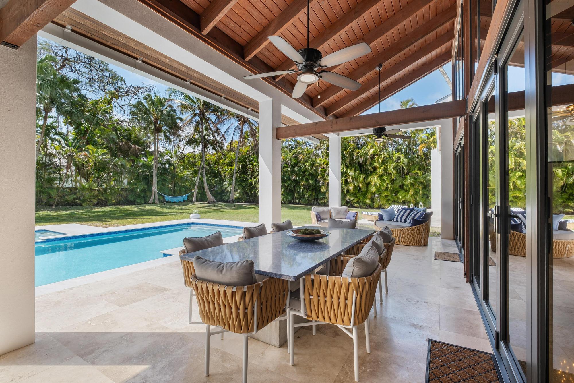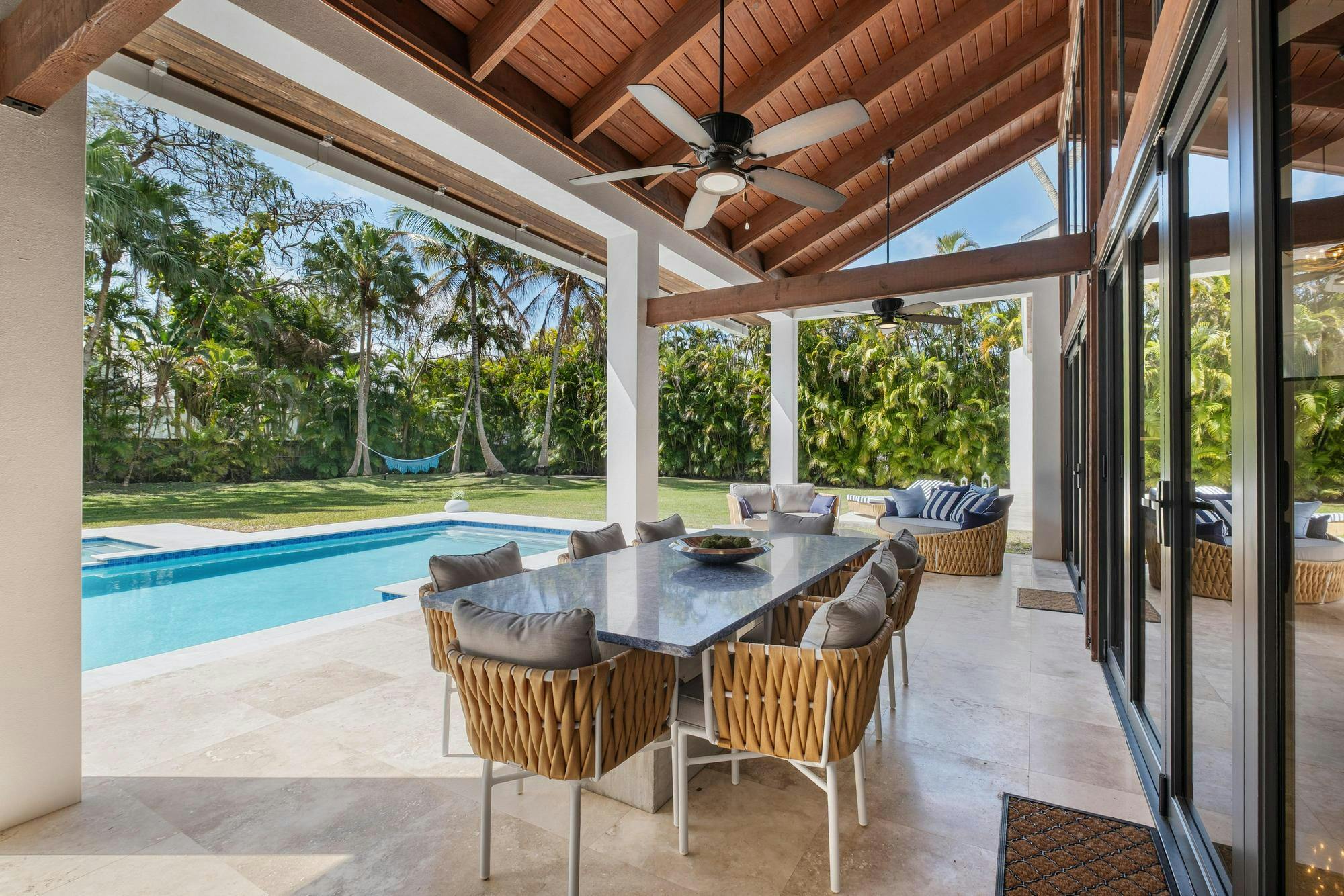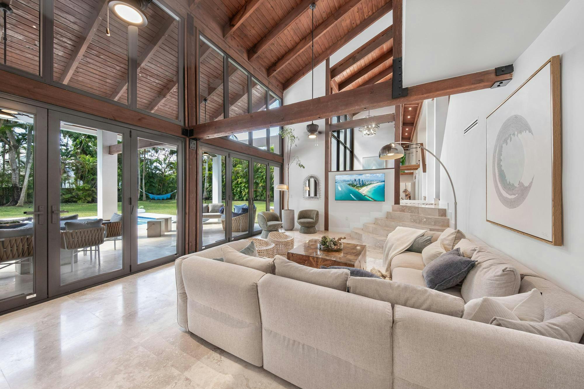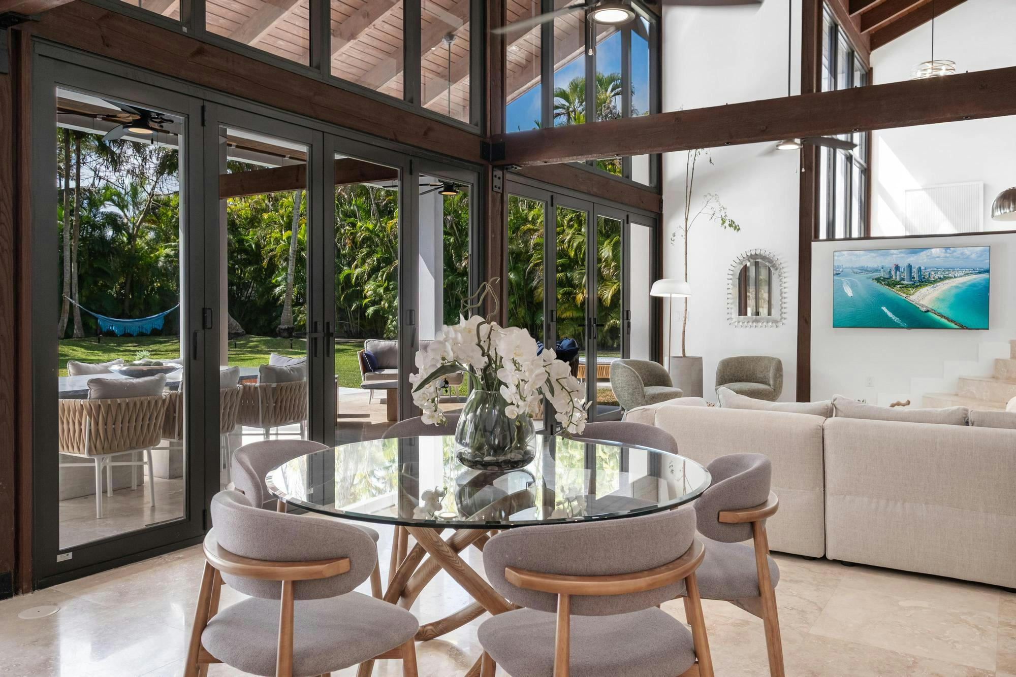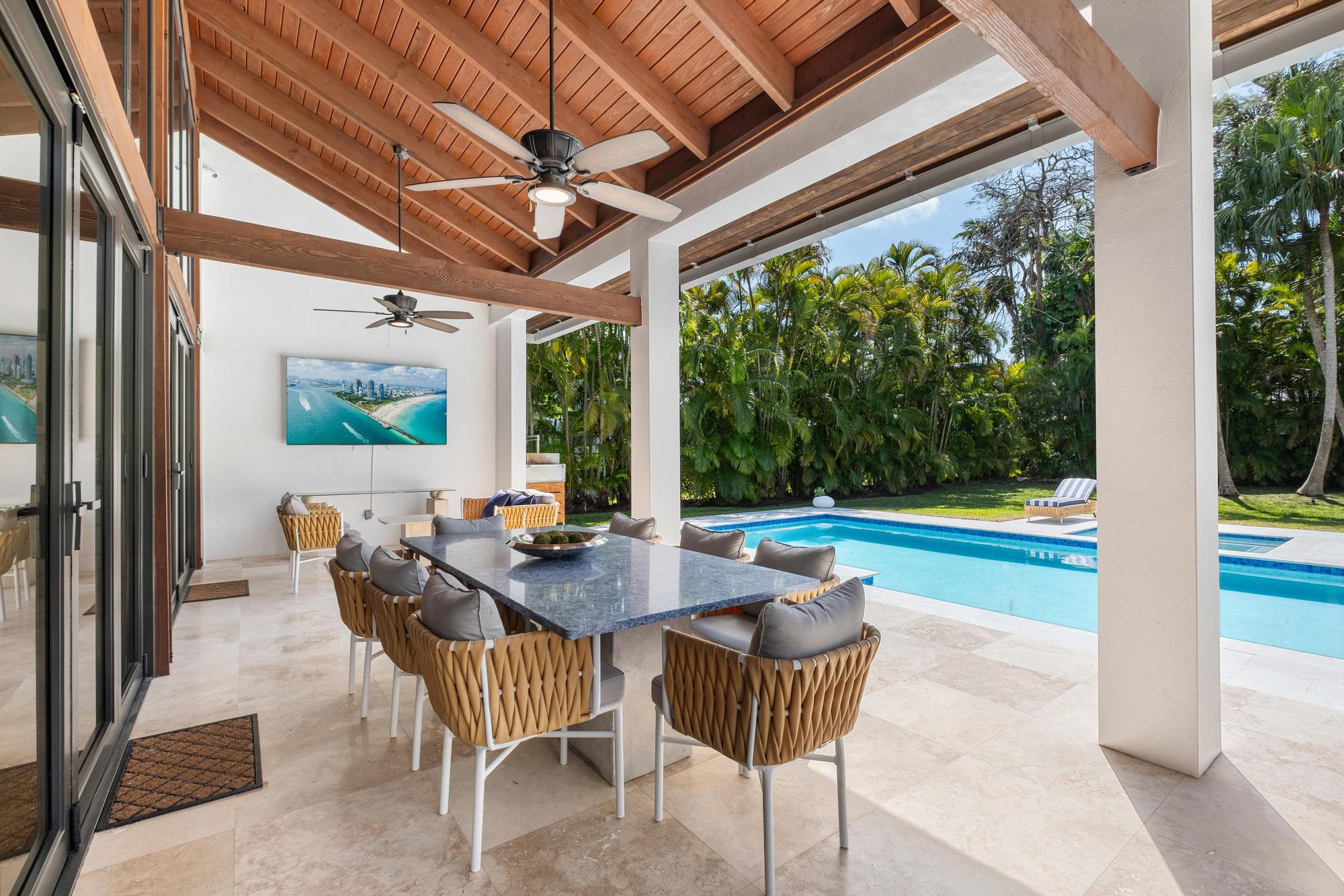 This Miami villa is a tropical showpiece designed for high-end productions. With soaring ceilings, expansive indoor-outdoor flow, a dramatic resort-style pool with waterfall features, and lush landscaping throughout, the property delivers cinematic luxury at every turn. Ideal for fashion editorials, music videos, lifestyle shoots, and upscale narrative scenes.