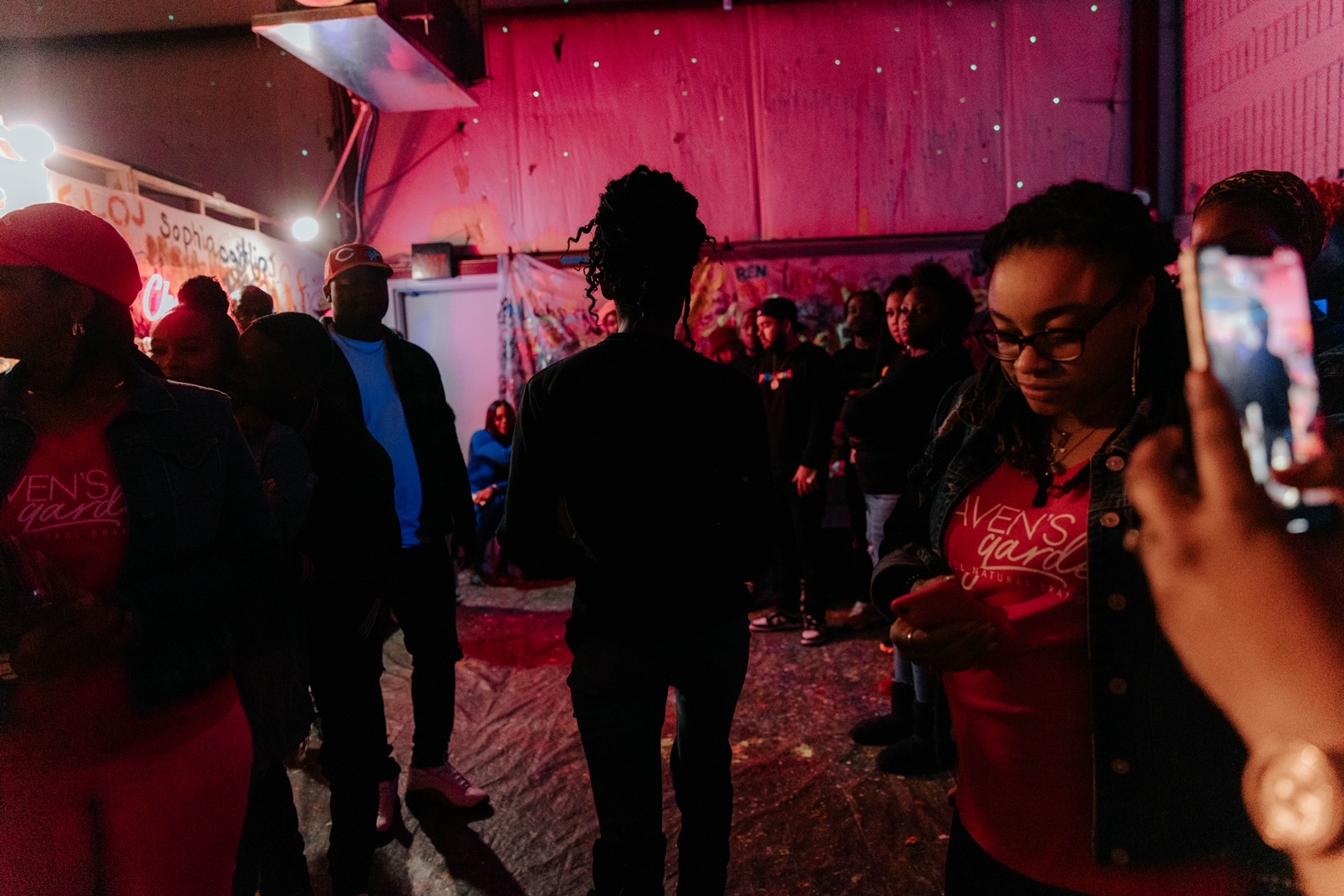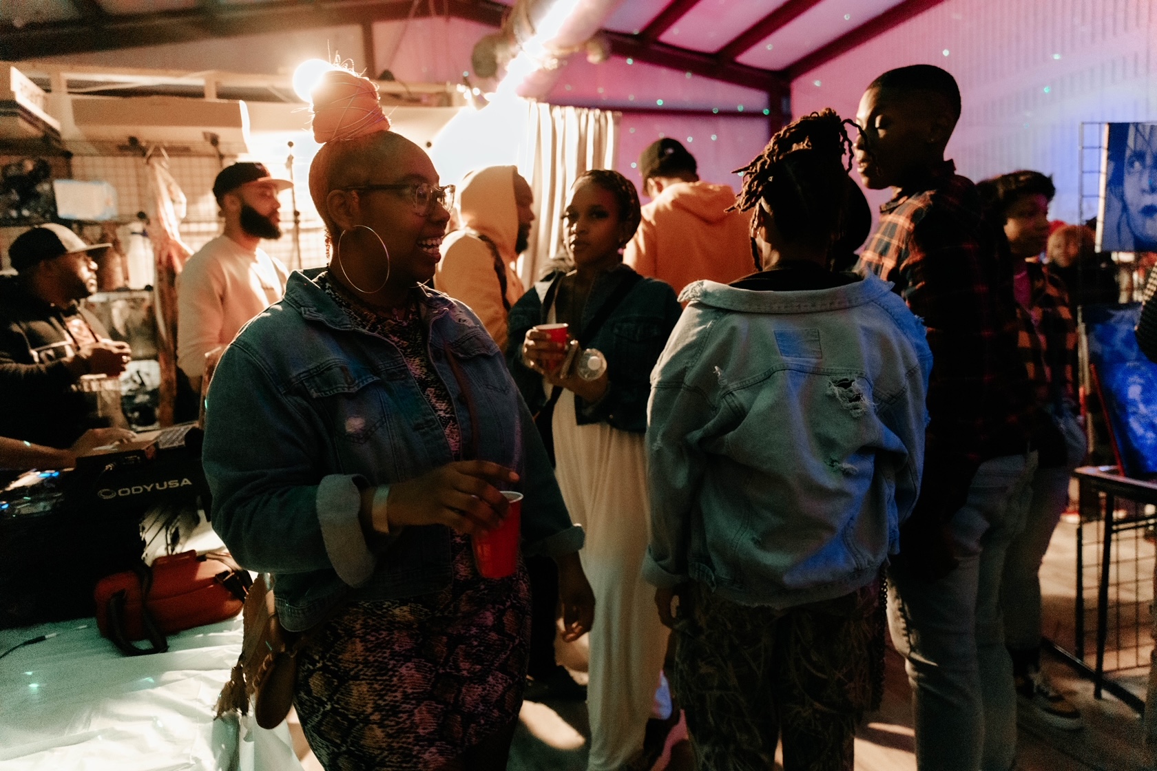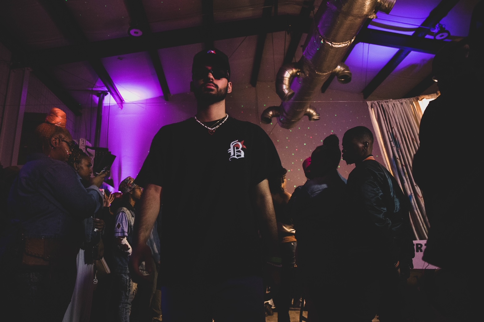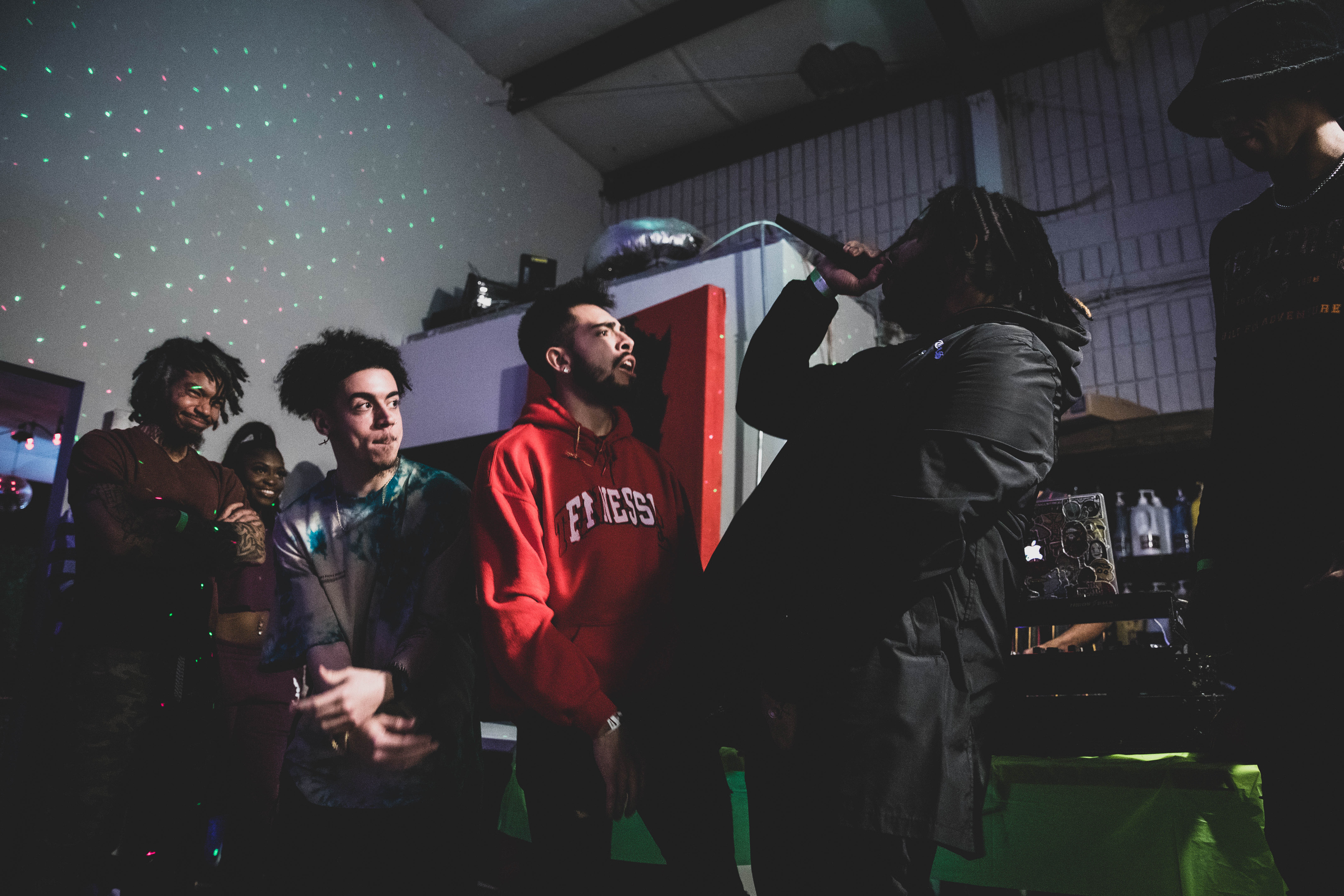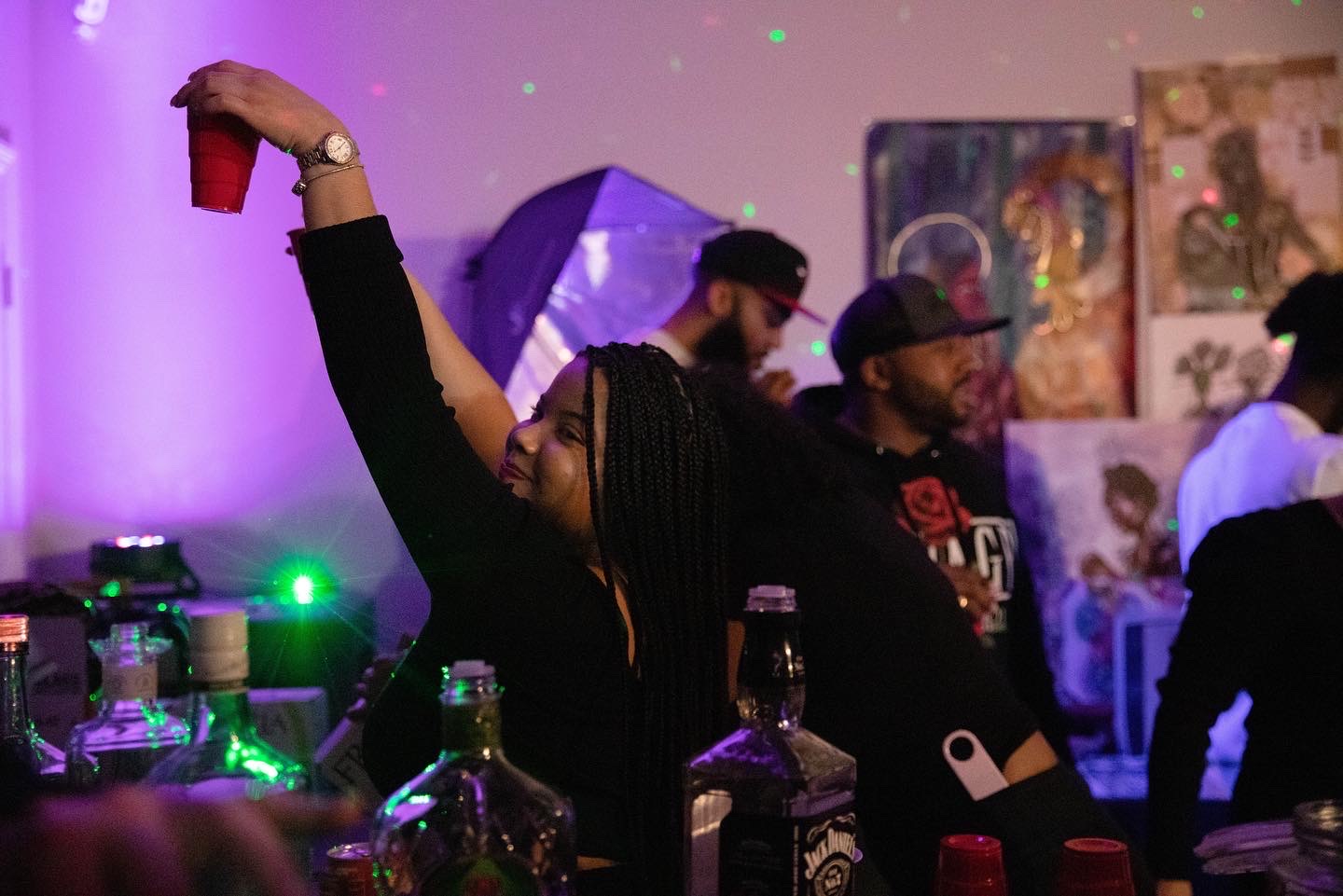 LEDs throughout the space, RGB Up Lights, Strobe Lights, Laser Lights, Black Lights Mounted Throughout Space