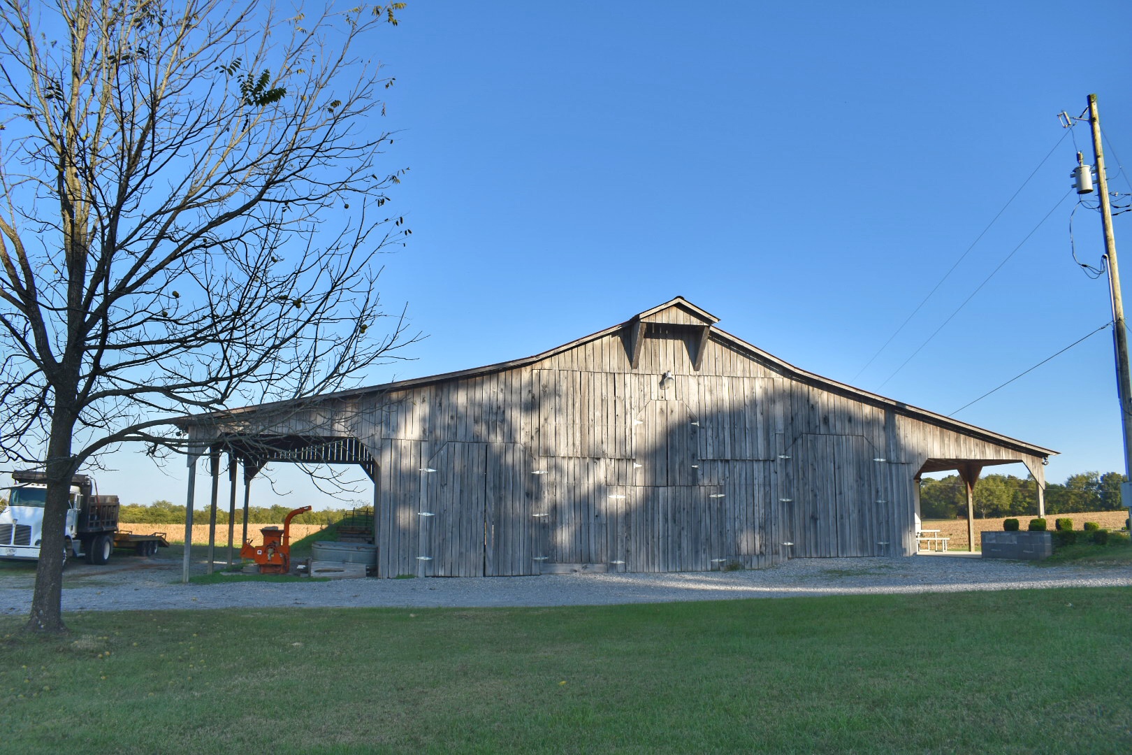 Numerous barns, log house, creek flowing through bottoms, trails, ponds & more. Wildlife roam and trees galore! Beautiful tree-lined entry on one side, dirt, gravel and paved roads. This is a working farm and various crops can be seen. The natural backdrops are endless and is the perfect blank canvas for your next project! Only a few clicks away!