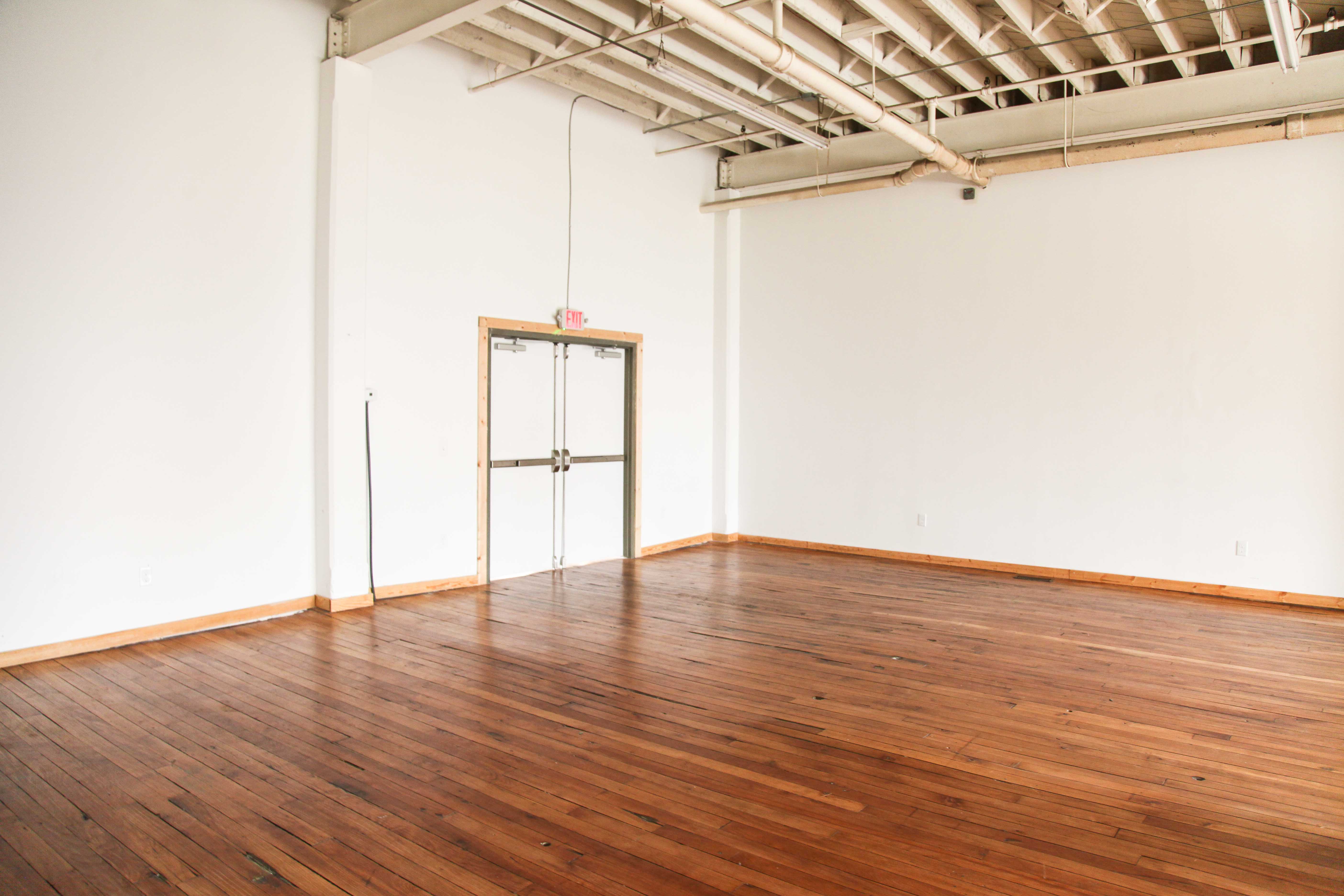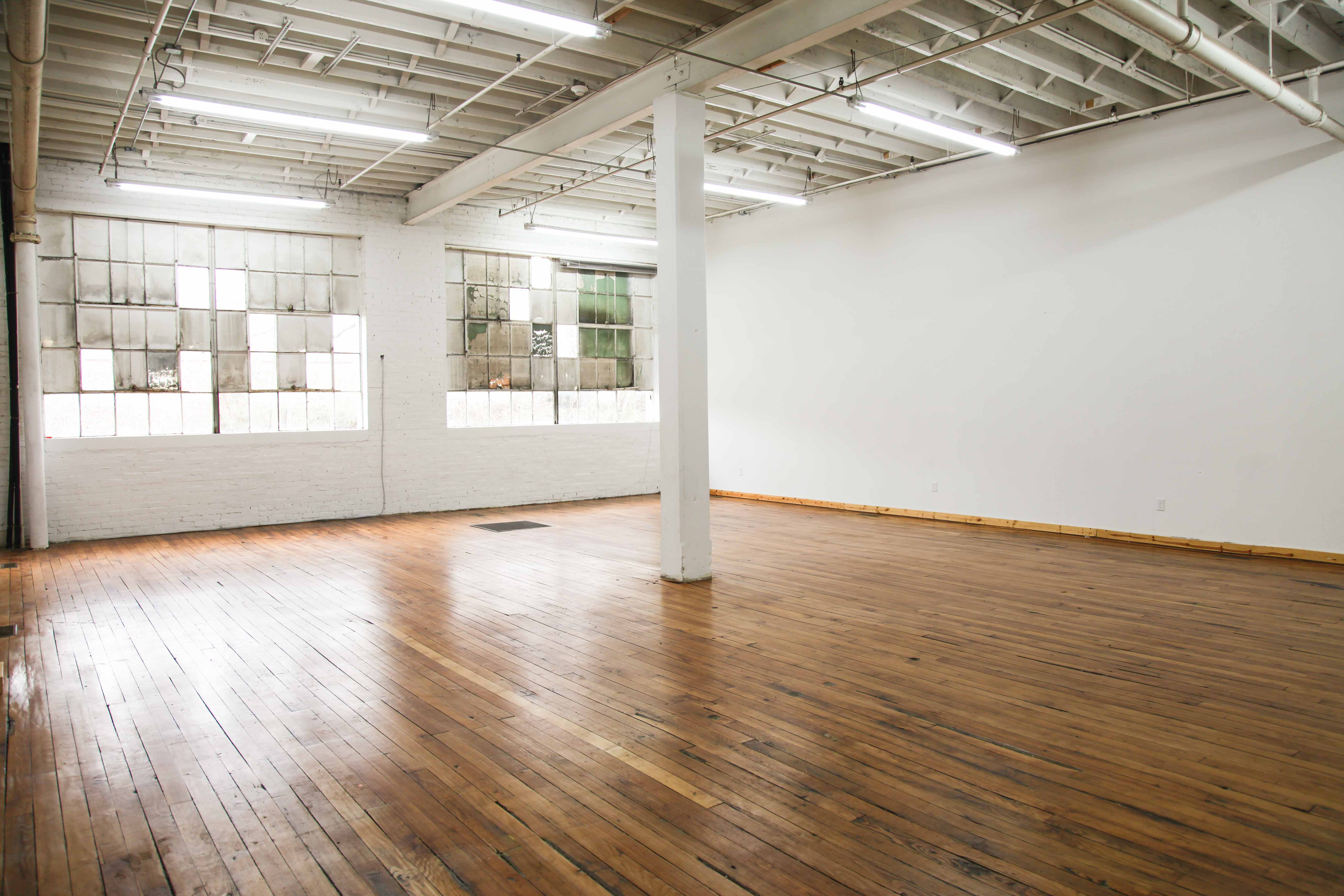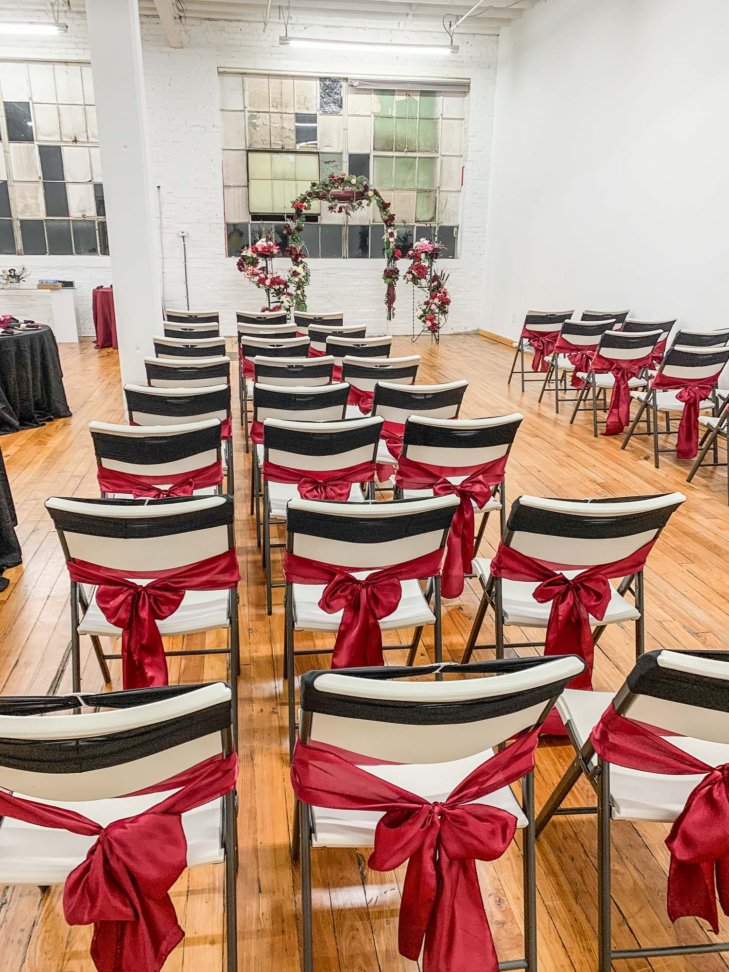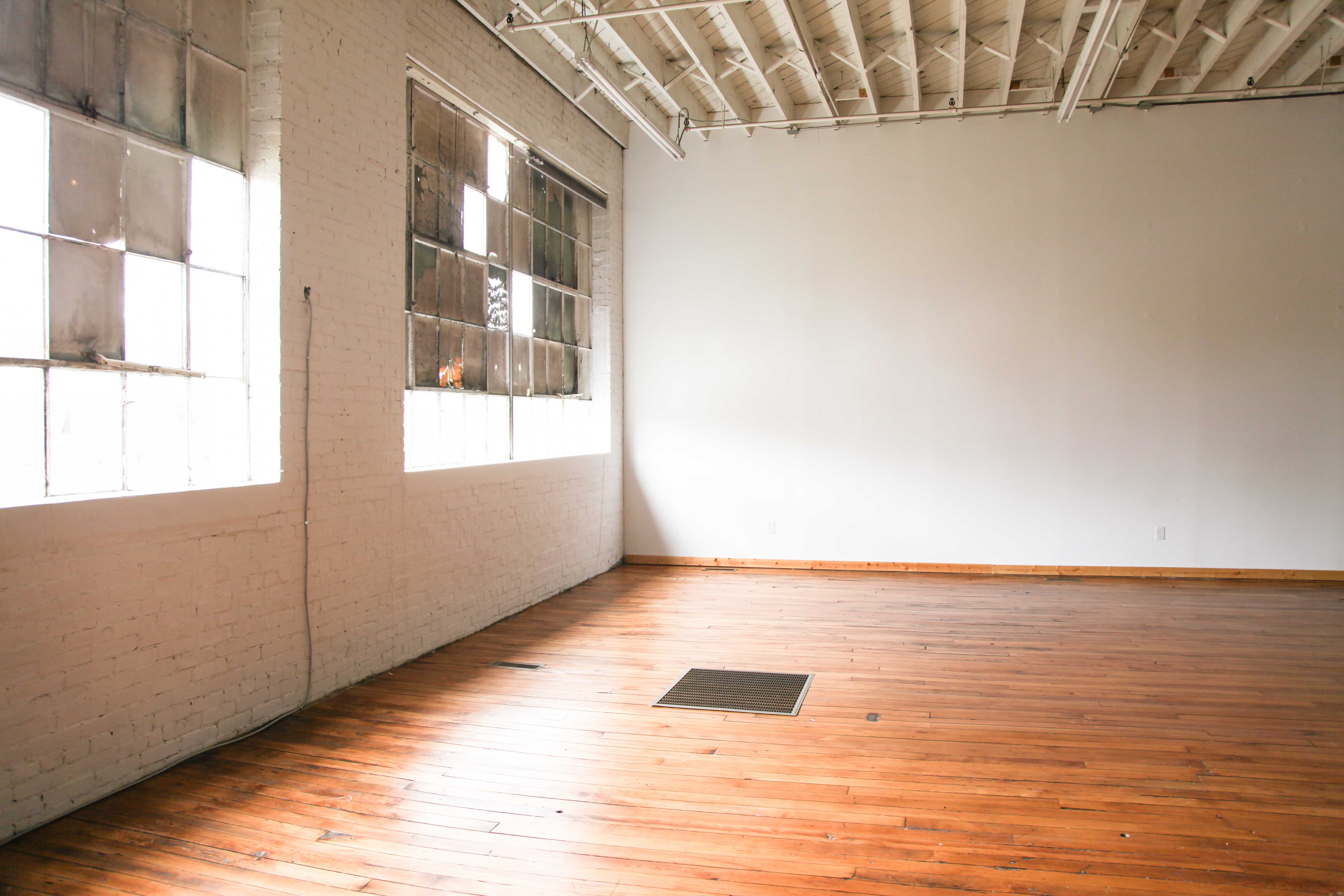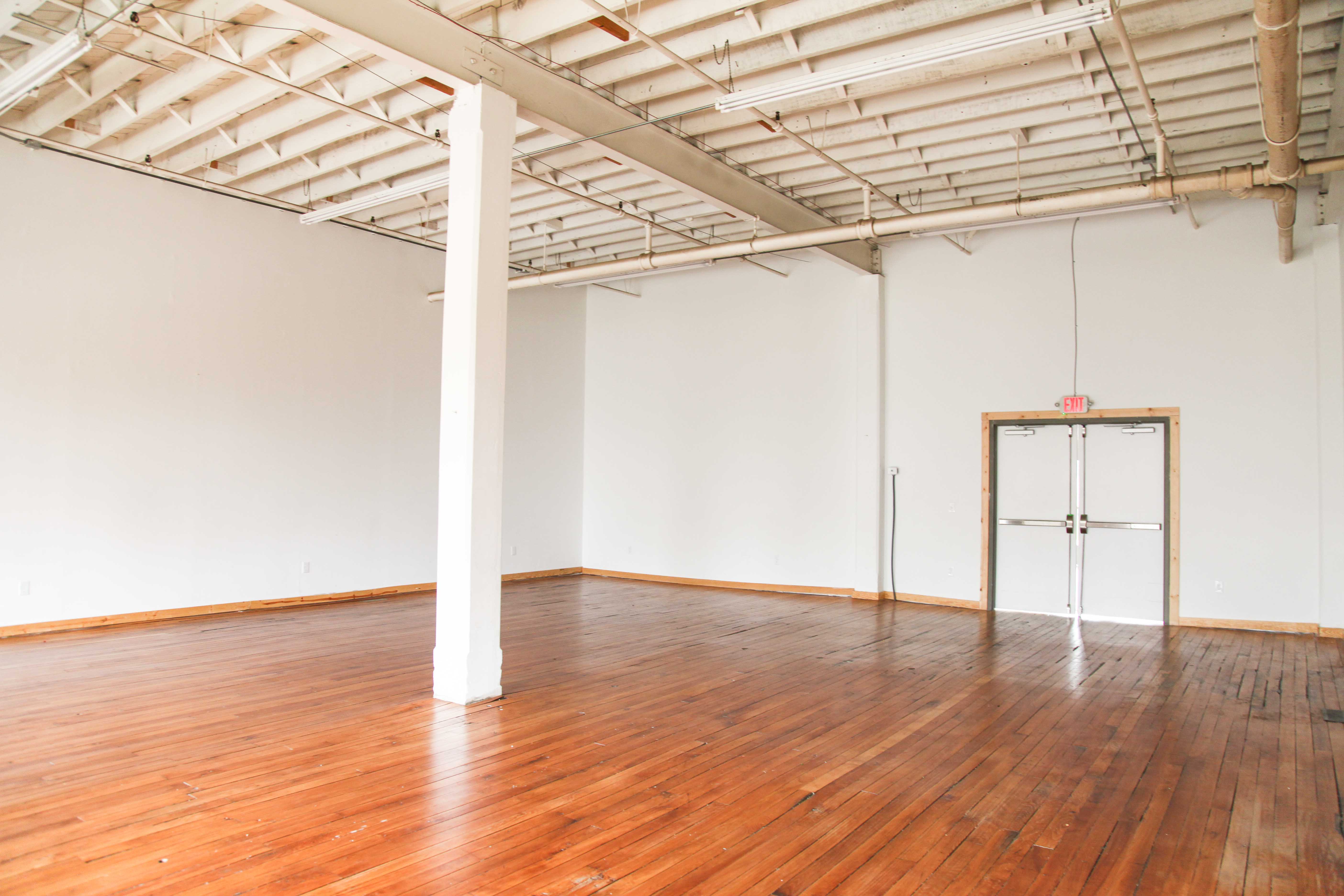 This bright and beautiful event space features rustic industrial elements, gorgeous wood floors, white brick, high ceilings, and large windows letting in tons of natural light!